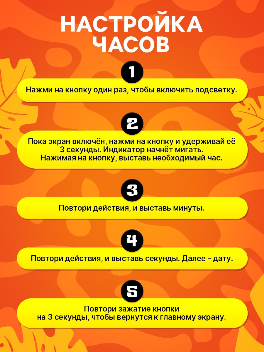 Изготовлены из лёгкого и прочного пластика, что делает их удобными для ежедневного ношения.Электронный дисплей отображает точное время и дату.Круглый корпус и ремешок голубого цвета создают яркий и стильный дизайн.Подходят для мальчиков и девочек благодаря универсальному дизайну.Часы станут отличным помощником в развитии у ребёнка навыка ориентирования во времени. Благодаря компактному размеру и мягкому ремешку часы удобно сидят на руке, не вызывая дискомфорта.
