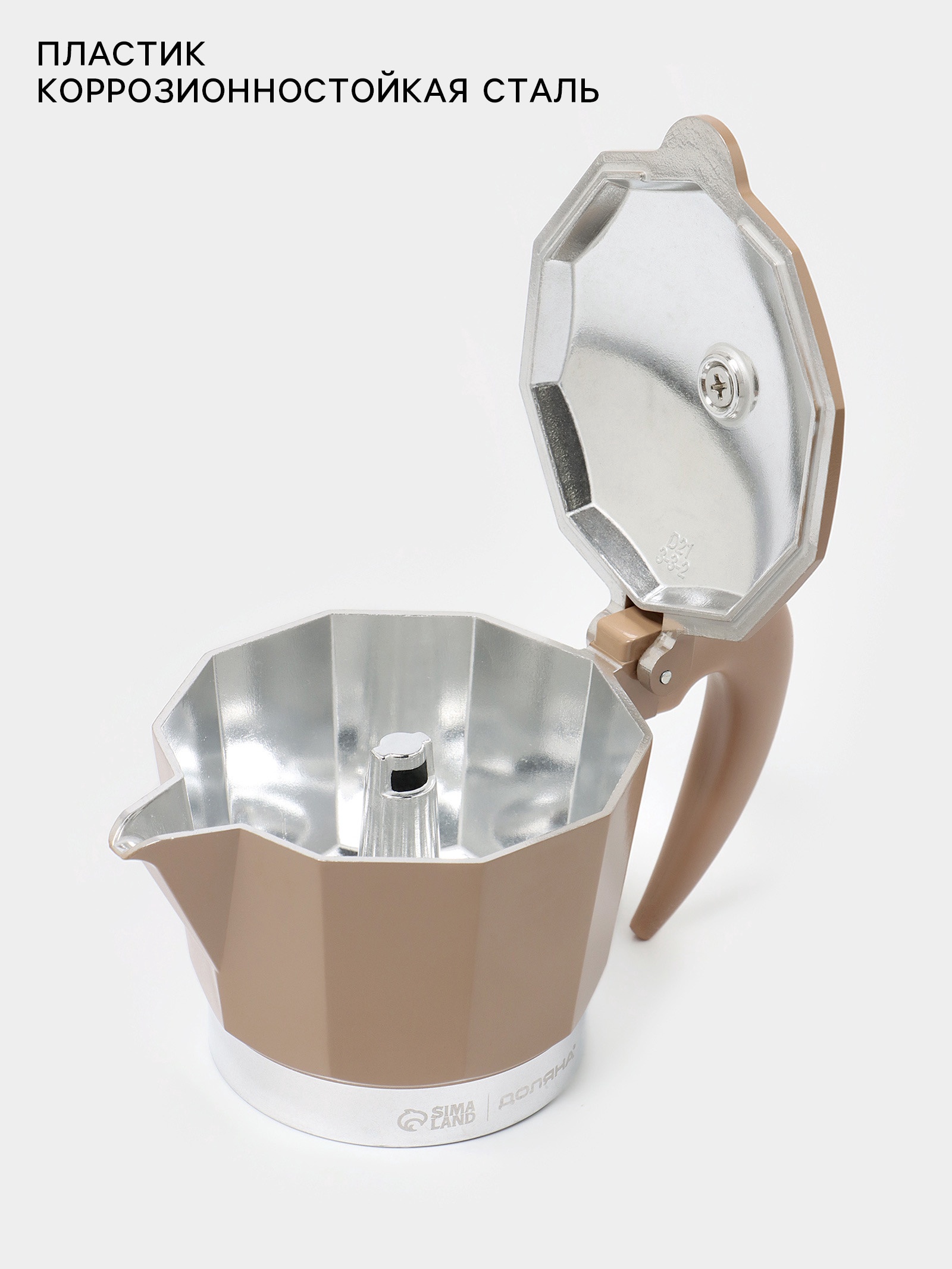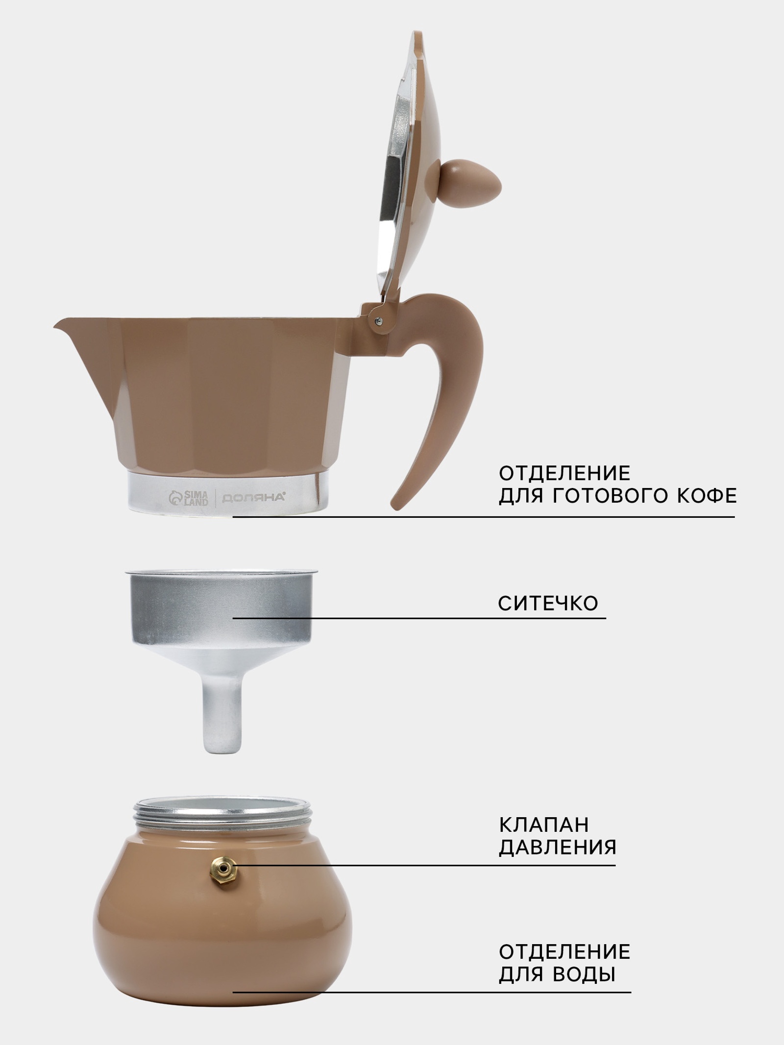 Кофеварка гейзерная доляна «мокко», 150 мл, на 3 чашки, нержавеющая сталь, коричневая. Гейзерная Кофеварка Мокко для 3 Чашек Любите насыщенный вкус настоящего кофе, но не хотите тратить много времени на его приготовлениеx Эта гейзерная кофеварка, выполненная из нержавеющей стали, станет вашим верным помощником. Наслаждайтесь ароматным кофе Мокко всего за несколько минут. Коричневый цвет кофеварки добавит тепла и уюта вашей кухне. Преимущества Кофеварки Приготовление 3 чашек кофе одновременно – идеальный вариант для небольшой семьи или компании.Нержавеющая сталь обеспечивает долговечность и гигиеничность.Подходит для всех типов плит, включая электрические, газовые, галогенные и стеклокерамические.Простой и удобный в использовании механизм.Компактный размер – не занимает много места на кухне.Утренний Ритуал с Настоящим Кофе Эта гейзерная кофеварка – это не просто кухонный прибор, а ключ к вашему идеальному утру. Почувствуйте себя настоящим бариста, создавая ароматный и насыщенный кофе Мокко дома. Выбирайте скорость, удобство и настоящий кофейный вкус! Цвет:Коричневый|Количество чашек:3|Объём, мл:150|Материал:Нержавеющая сталь|Тип плиты:Для стеклокерамической плиты|Тип плиты:Для электрической плиты|Тип плиты:Для газовой плиты|Тип плиты:Для галогенной плиты|Страна:Китай  развернуть описание ▼