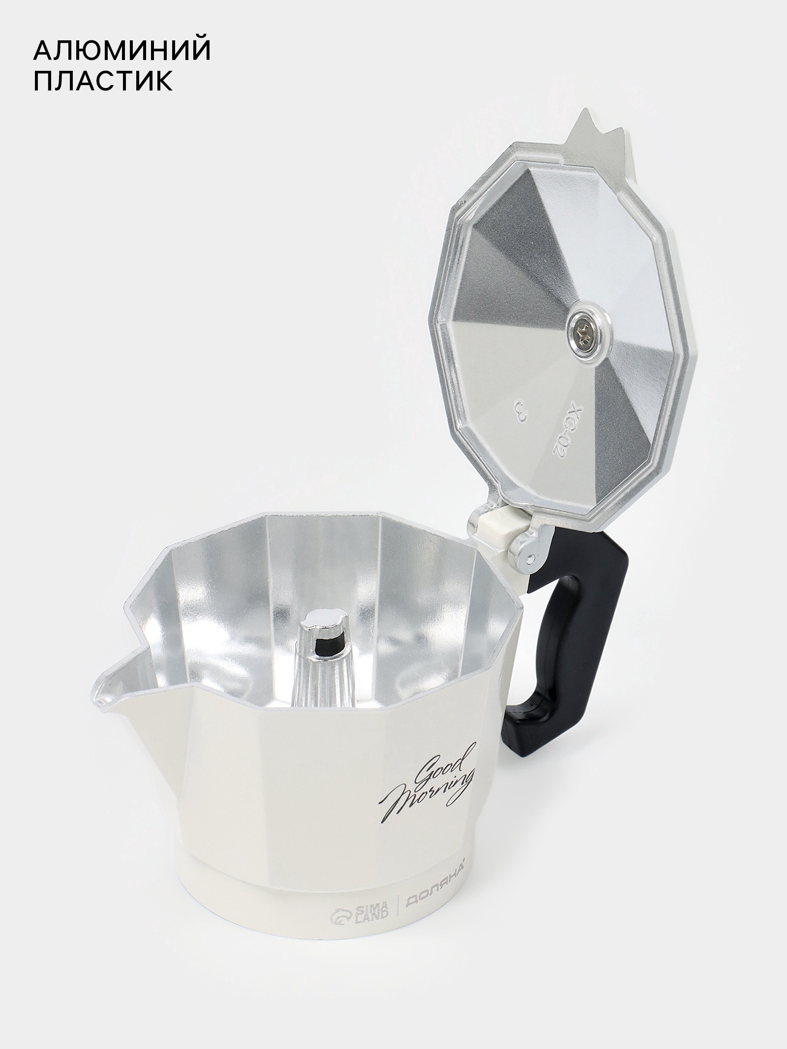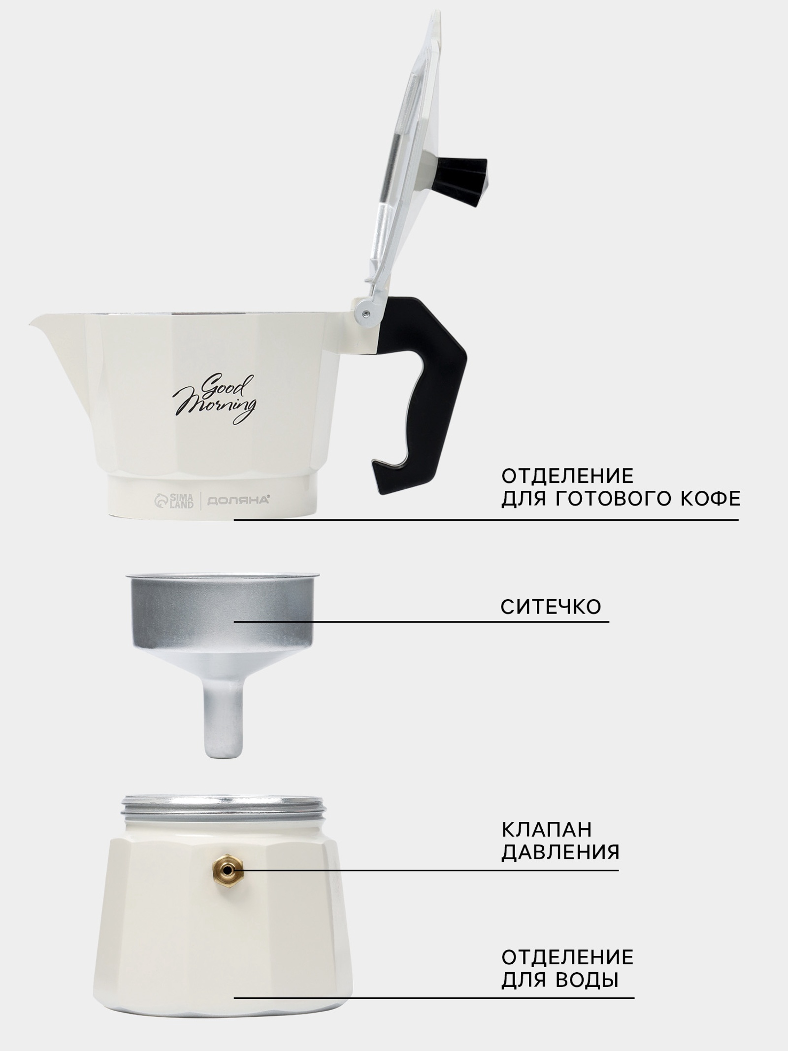 Кофеварка гейзерная доляна good morning, 150 мл, на 3 чашки, алюминий, белая.