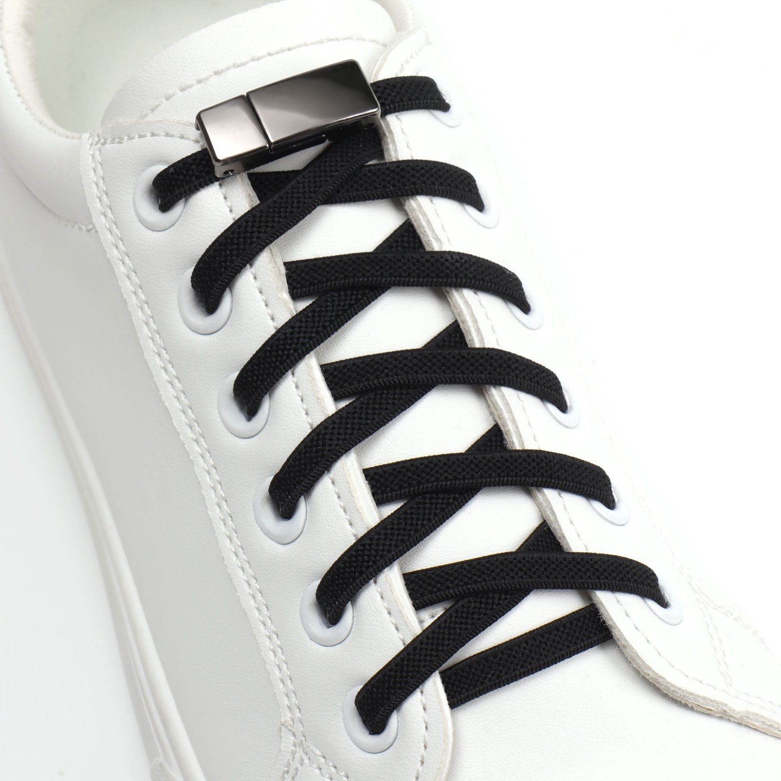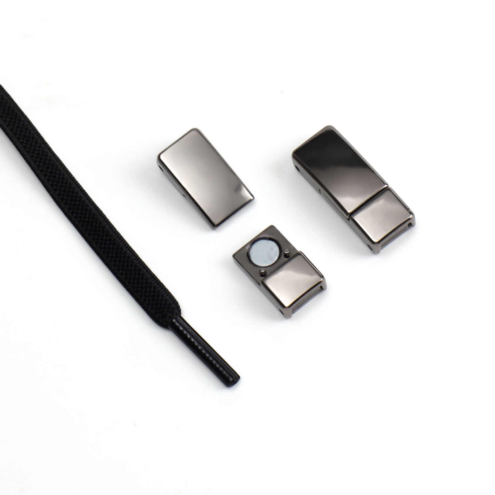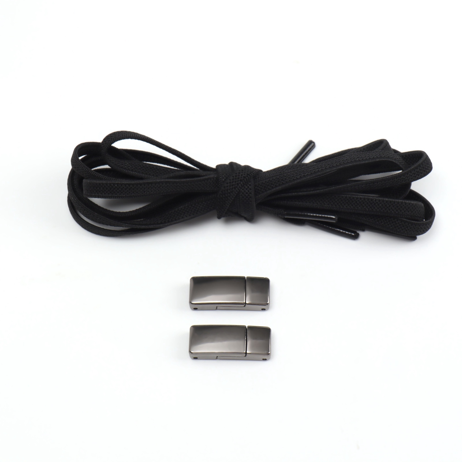 Шнурки для обуви, пара, с плоским сечением и фиксатором на магнитах, 100 см, цвет чёрный
