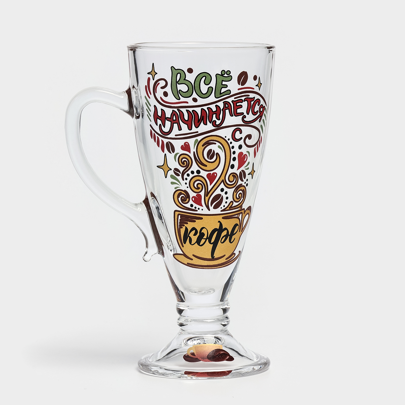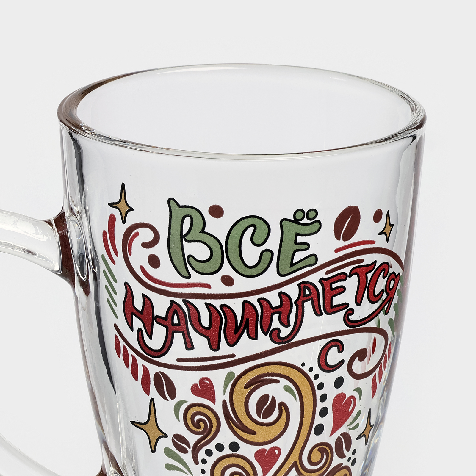Кружка стеклянная для чая/кофе «кофе-бар», 250 мл
