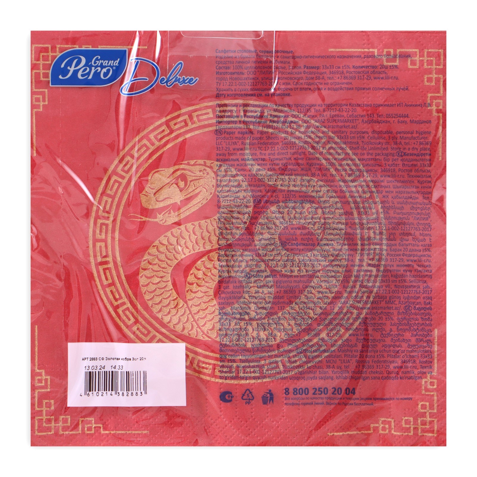 Салфетки бумажные Grandpero Deluxe «золотая кобра», 3 слоя, 33х33, 20 шт