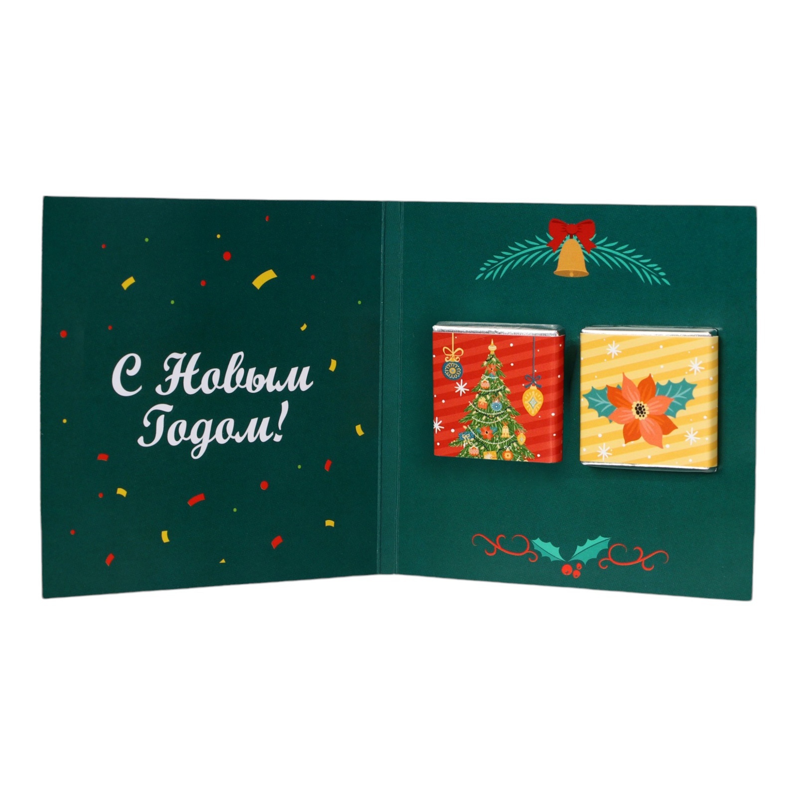 Шоколад молочный новогодний «с новым годом!», 2 шт. по 5 г. Шоколадная открытка С Новым Годом! Дед Мороз и Кролик — это идеальный способ удивить и порадовать близкого человека! Эта оригинальная открытка выглядит так, будто это просто милый подарок, но стоит открыть её, как вас ждёт сладкое волшебство. Внутри вы найдёте мини-шоколадки, каждая из которых порадует вас своим вкусом. Уникальный дизайн открытки, украшенный яркими иллюстрациями и позитивными надписями, создаёт удивительную атмосферу радости и ожидания праздника. Это не просто сладость, это целая эмоция, которая дарит тепло и счастье! Каждая шоколадка — это маленькое угощение, которое можно разделить с друзьями или оставить для себя, заполняя день сладкими моментами. Подарите шоколадную открытку С Новым Годом! Дед Мороз и Кролик близким и любимым, и дайте им возможность насладиться вкусным шоколадом! Эта открытка станет отличным дополнением к подарку или самостоятельным презентом. Белки, г:5.5|Вес нетто, г:10|Жиры, г:35|Углеводы, г:53|Энергетическая ценность, ккал:560|Тематика:Новогодняя|Символ года:Нет|Тематика праздника:Рождество|Тематика праздника:Новый год|Форма:Мини-плитка|Вид шоколада:Молочный|Добавки:С ванилью|Страна:Россия  развернуть описание ▼