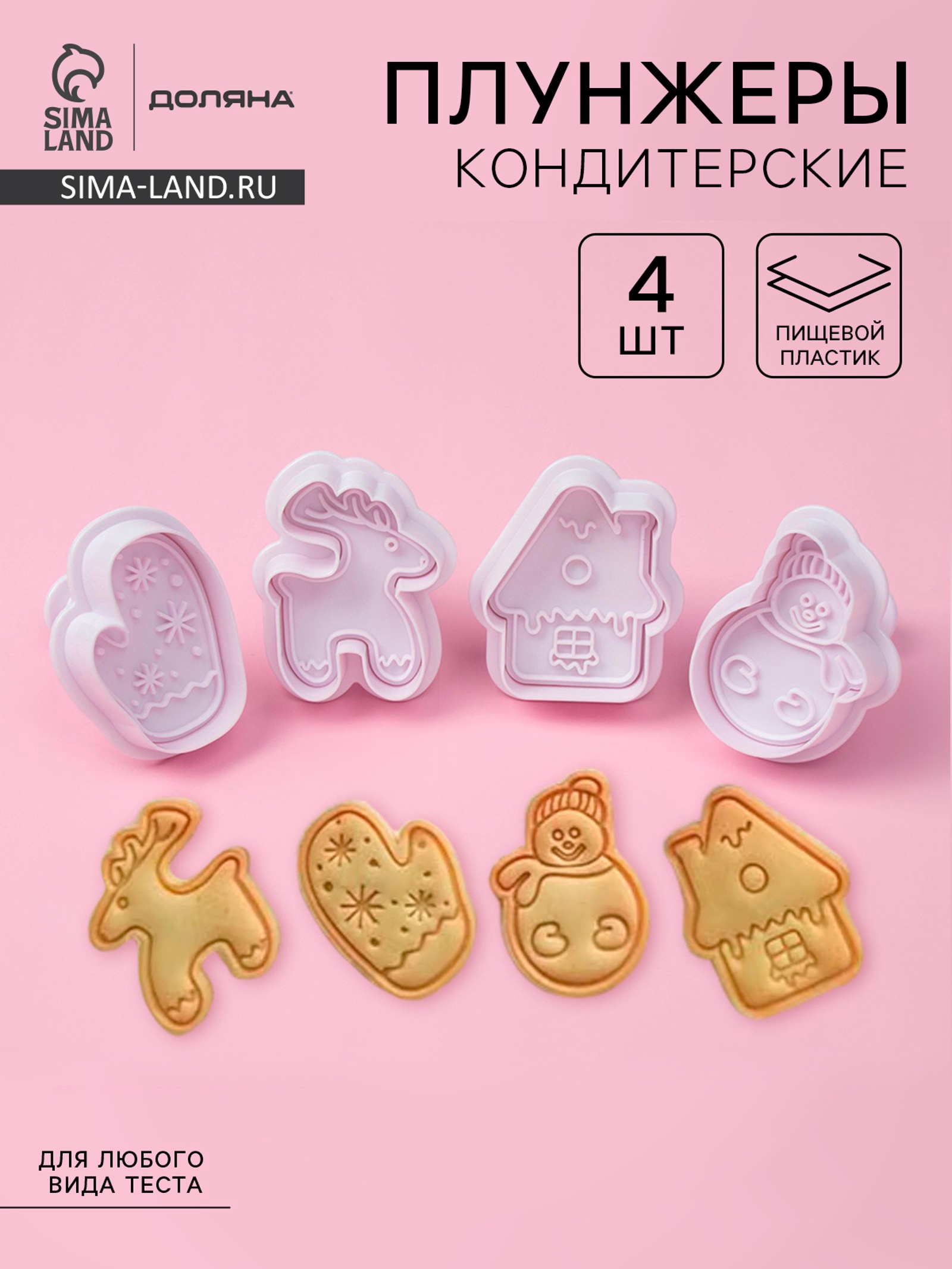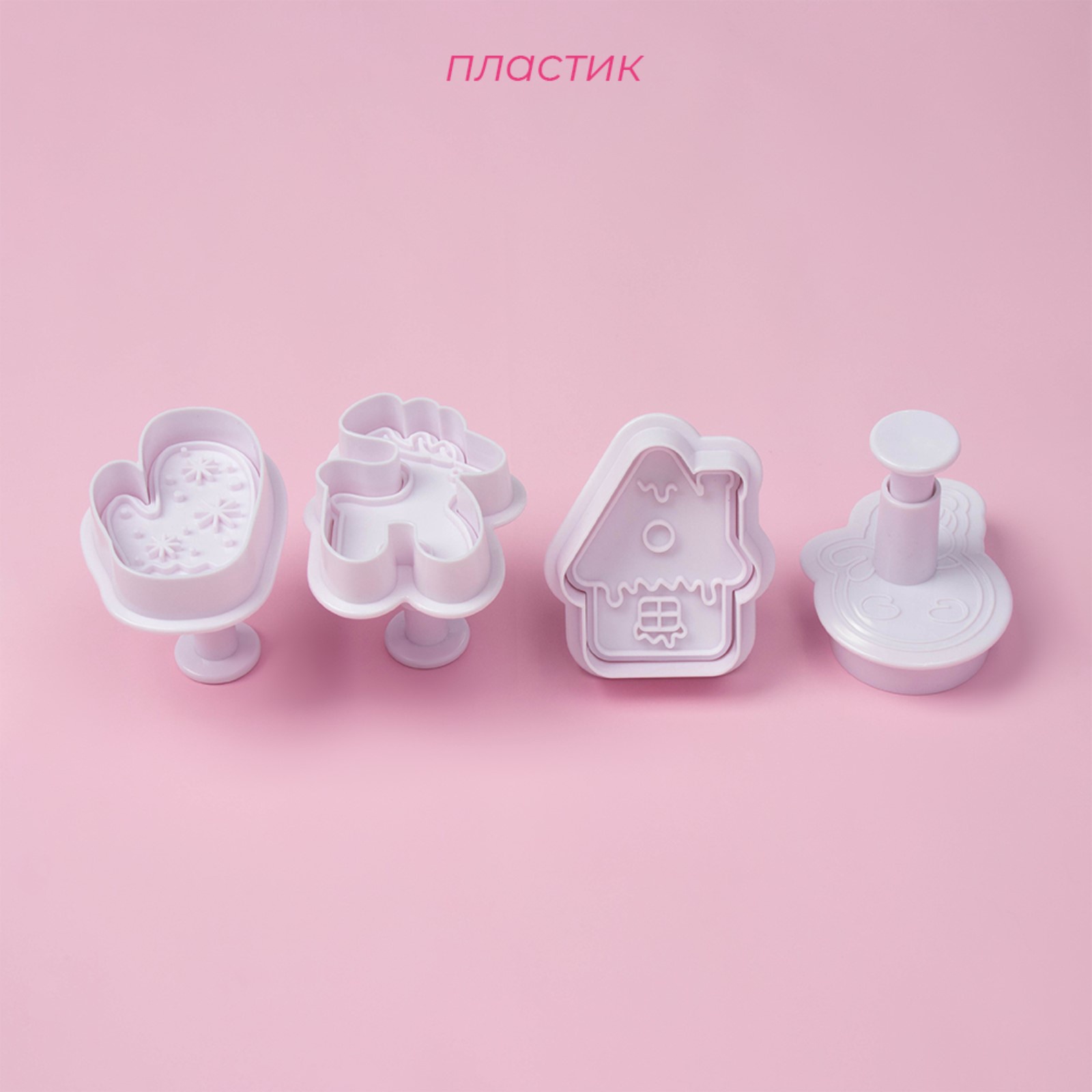 Плунжеры кондитерские доляна «зимняя сказка», набор 4 шт., новогодние, пластик, белые. Создайте волшебную “Зимнюю сказку” на своей кухне! С набором выемок Доляна “Зимняя сказка” вы сможете превратить обычные печенья и пряники в настоящие новогодние шедевры! 4 чарующие формы: олень, домик, снеговик и варежка - чтобы создать настоящую зимнюю сказку на каждом блюде! Удобство и доступность: инструменты легко моются и не требуют особого ухода.Прочность и долговечность: изготовлены из качественного пластика, который выдерживает постоянное использование и не деформируется.Стильный дизайн: инструменты имеют новогоднюю тематику, что придаст вашим кулинарным изделиям особенный праздничный вид** Пластик белого цвета - гармонично сочетается с любыми цветами теста. ** Отлично подходит для подарка любителям печь и создавать новогоднее настроение! Сделайте этот Новый год особенным с набором плунжеров Доляна “Зимняя сказка”! Набор:Да|В наборе, шт.:4|Символ года:Нет|Тематика праздника:Новый год|Материал:Пластик|Тематика:Новый год|Можно мыть в посудомоечной машине:Нет|Страна:Китай  развернуть описание ▼