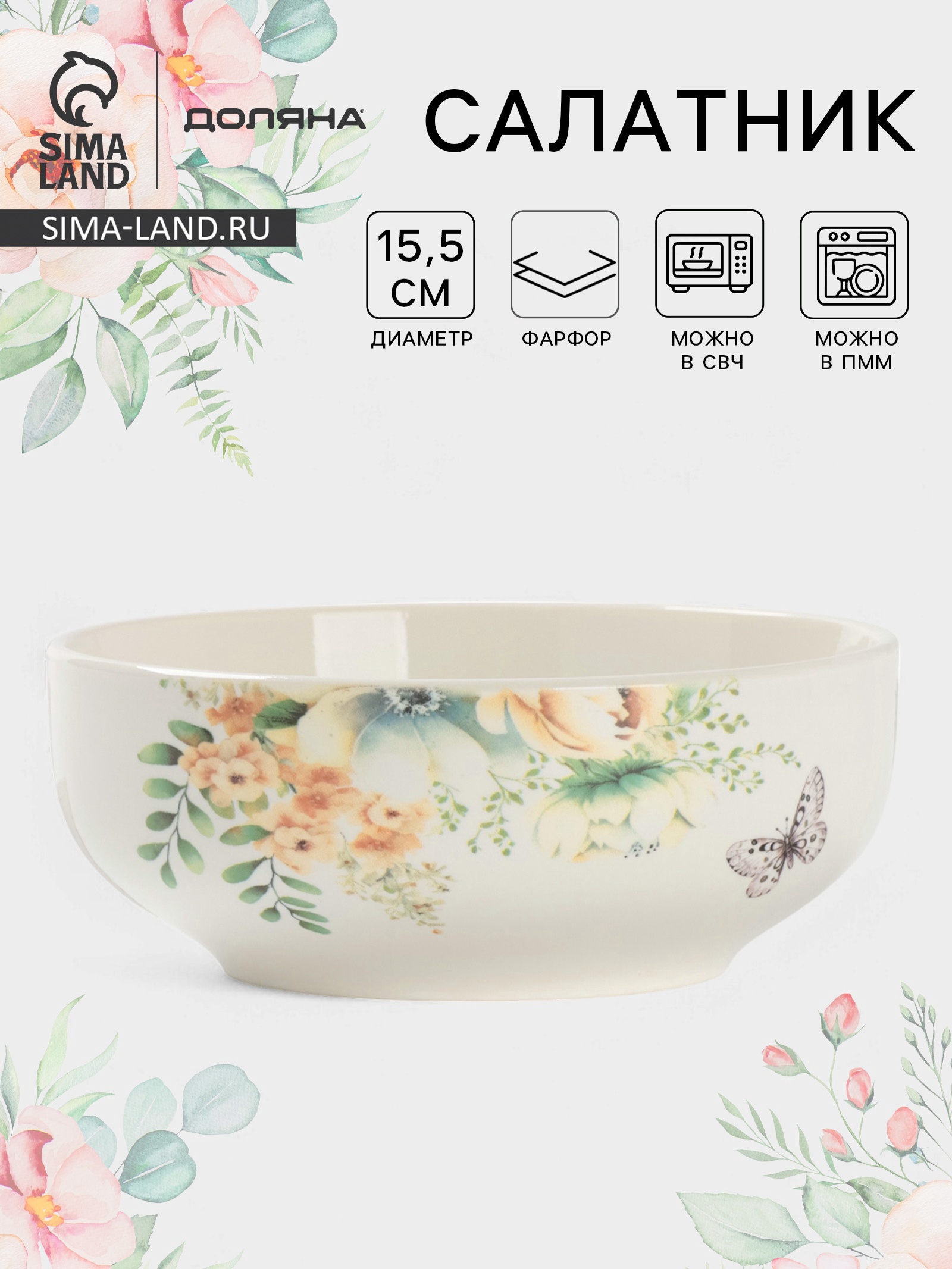 Салатник доляна «цветы», фарфор, 600 мл, 15.5 6 см, белый