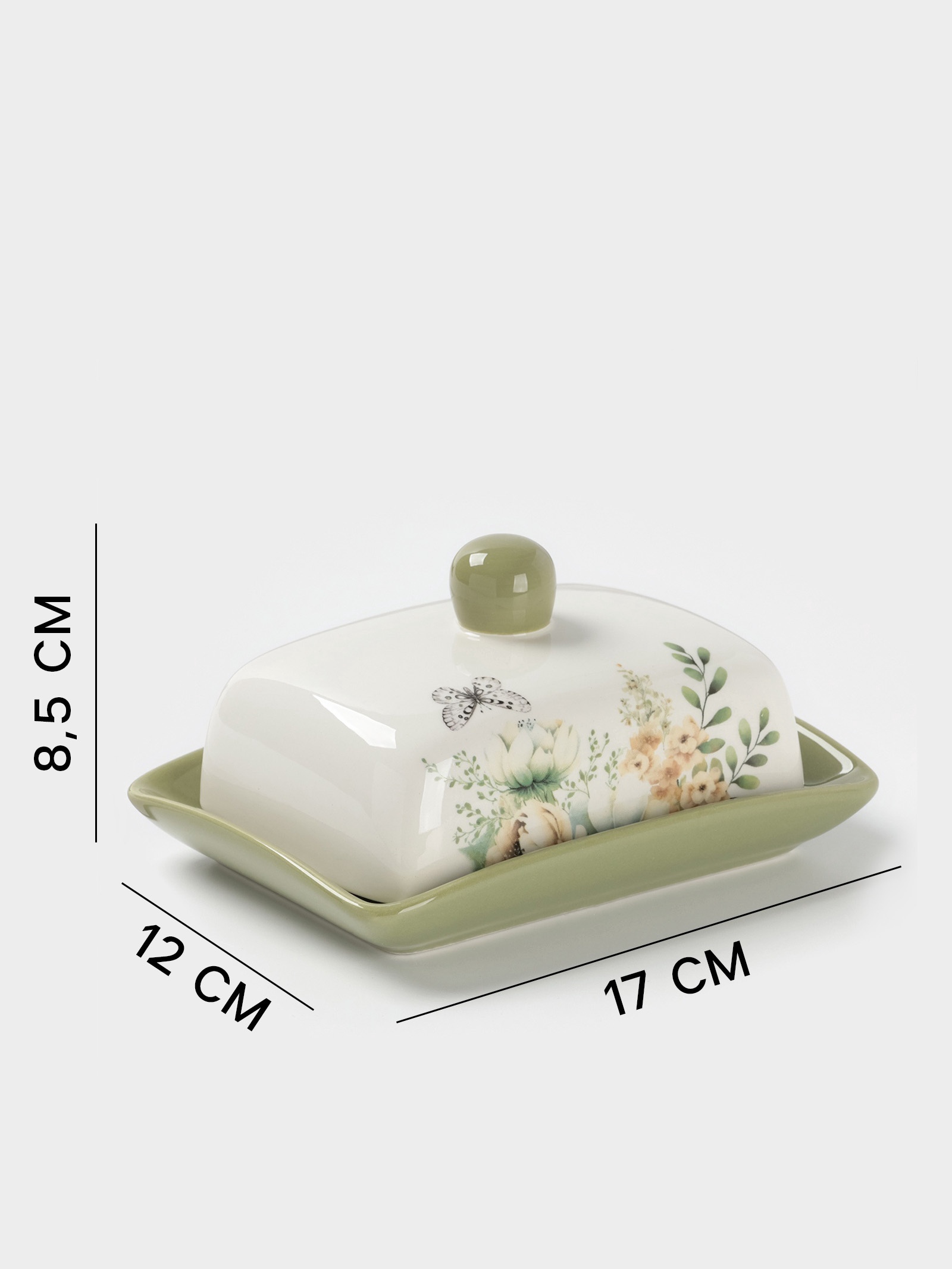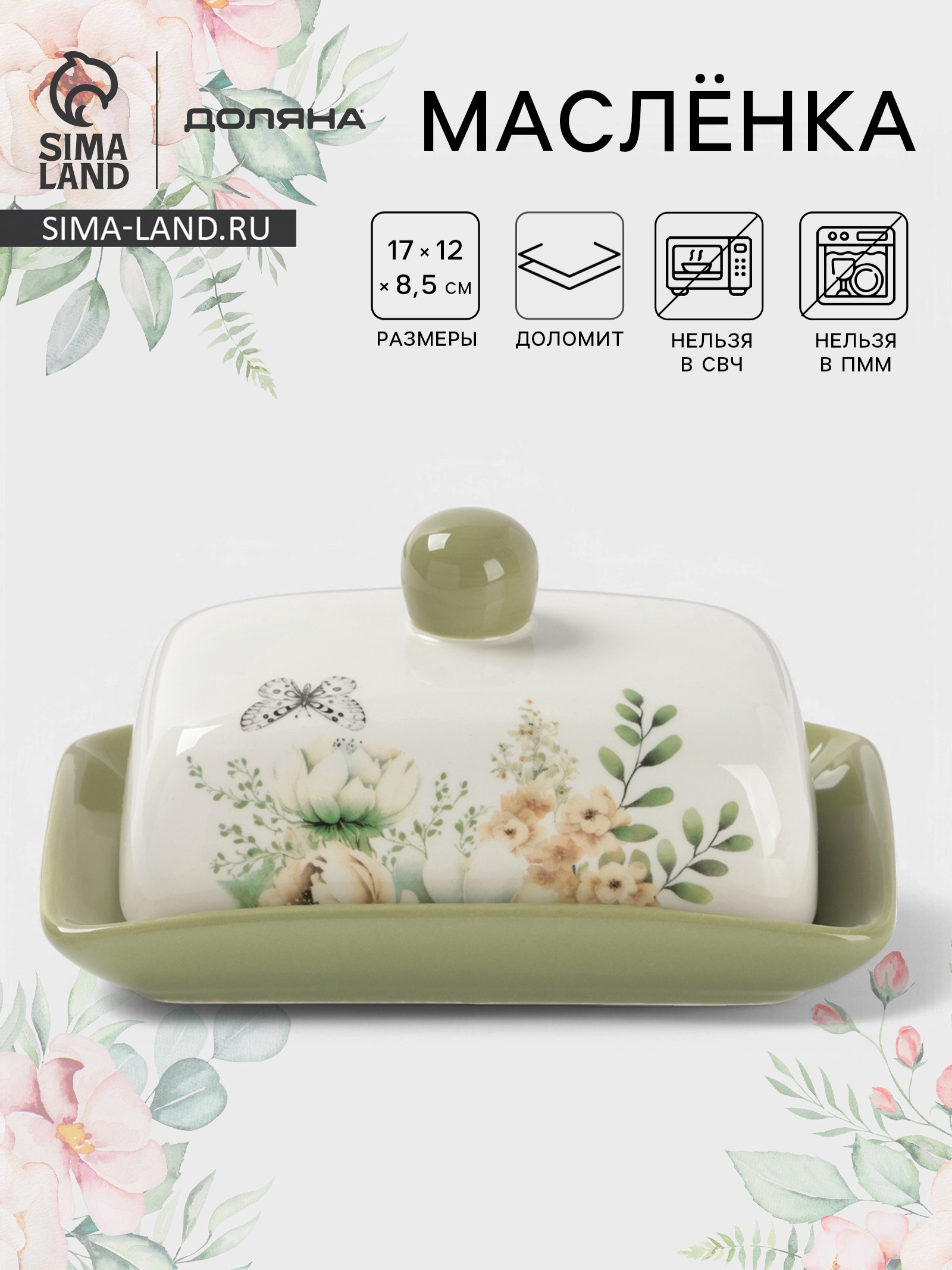 Маслёнка доляна «цветы», 17 12 8.5 см, доломит, белая