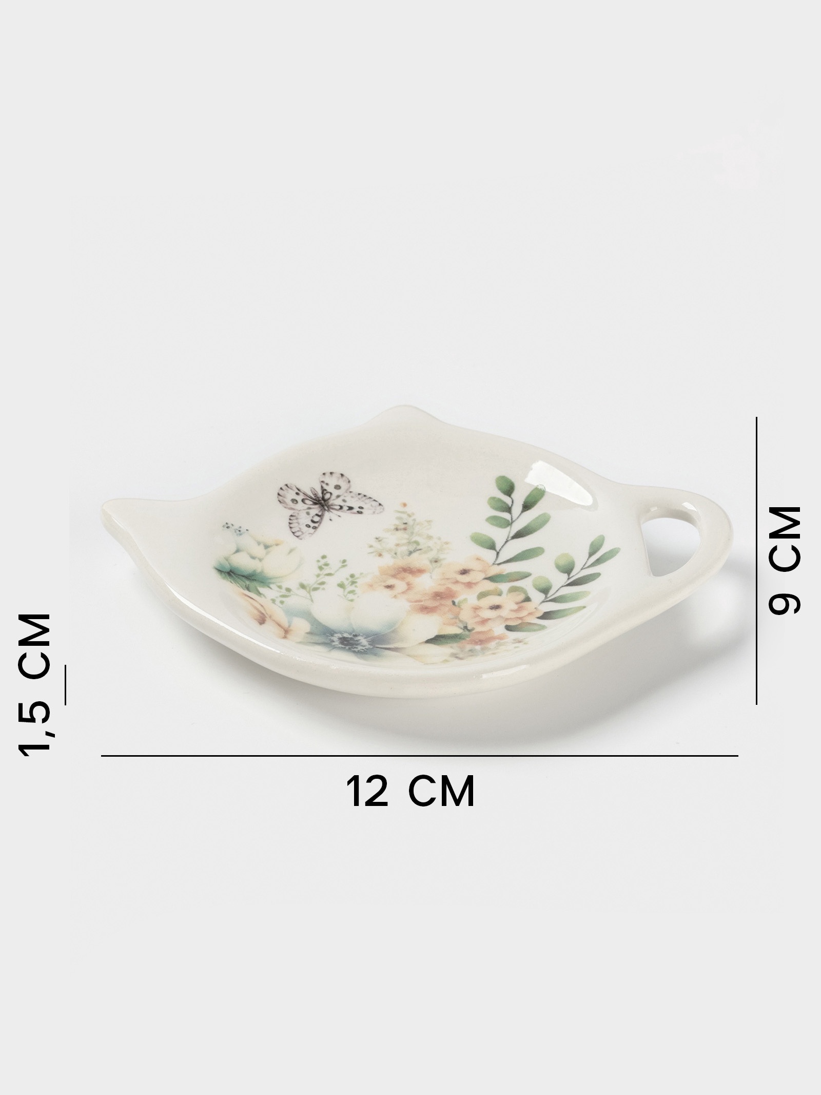 Подставка под чайный пакетик доляна «цветы», доломит, 12 9 1.5 см, белая. Очаровательная подставка под чайный пакетик, выполненная из доломита с нежным цветочным рисунком. Размеры: 12x9x1.5 см. Защитит вашу столешницу от пятен и создаст весеннее настроение во время чаепития. Добавьте весеннего настроения в ваше чаепитие! Эта подставка под чайный пакетик станет прекрасным подарком для любителей чая. Керамическая подставка под чайный пакетик с цветами привнесет в ваш дом атмосферу тепла и уюта. Подставка под чайный пакетик «Цветы» Доляна – отличный подарок на 8 марта и просто для тех, кто ценит красоту в мелочах. Особенности Материал - доломит: Экологически чистый и безопасный материал.Белый цвет: Универсальный, подходит для любого стиля сервировки.Рисунок «Цветы»: Нежный и изящный, создает весеннее настроение.Удобный размер: Подходит для большинства чайных пакетиков.Предотвращает загрязнение: Защитит стол от пятен от чайного пакетика.Наслаждайтесь каждым глотком чая без забот! Эта подставка – это не просто аксессуар, а способ привнести в вашу жизнь немного красоты и комфорта. Позвольте себе окружить себя вещами, которые радуют глаз и делают чаепитие более приятным. Набор:Нет|Цвет:Белый|Тематика:Цветочно-растительная|Рисунок:Да|Тематика праздника:8 Марта|Материал:Керамика (Доломит)|Можно мыть в посудомоечной машине:Нет|Можно использовать в СВЧ-печи:Нет|Особенности:Деколь|Матовая поверхность:Нет|Страна:Китай  развернуть описание ▼