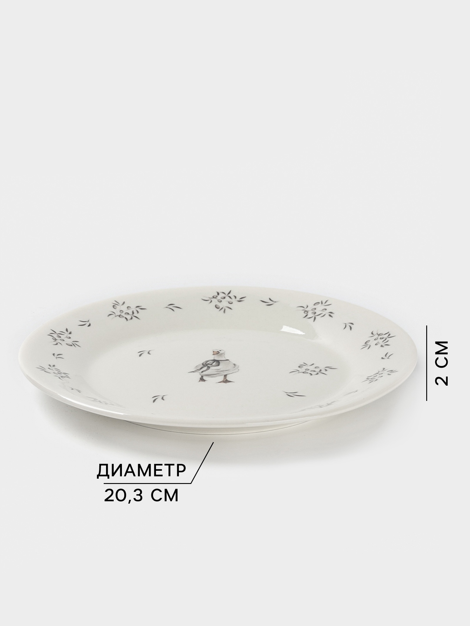 Тарелка десертная доляна гуси , d 20.3 см, фарфор, белая.