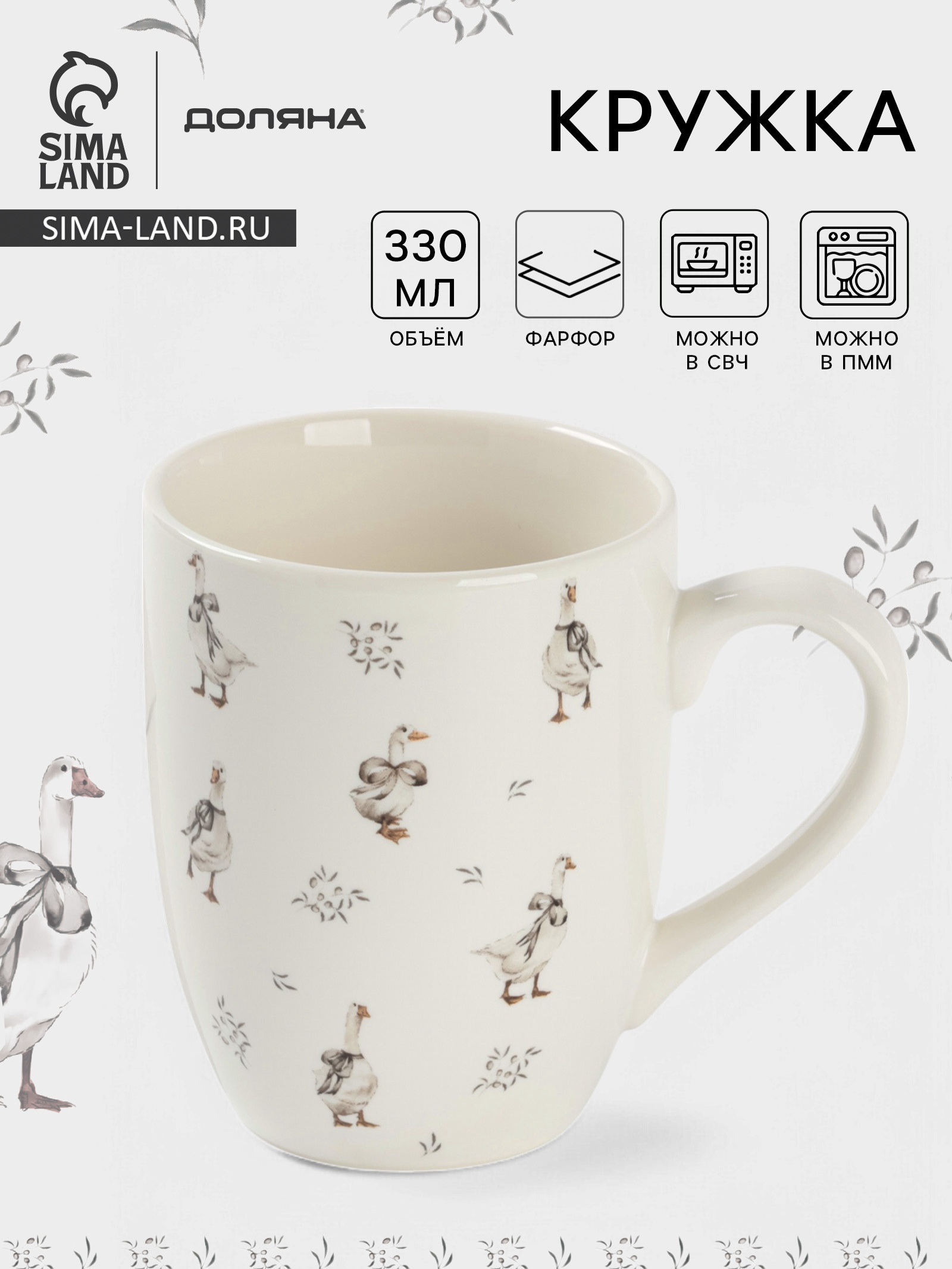 Кружка доляна «гуси», 330 мл, фарфор, белая