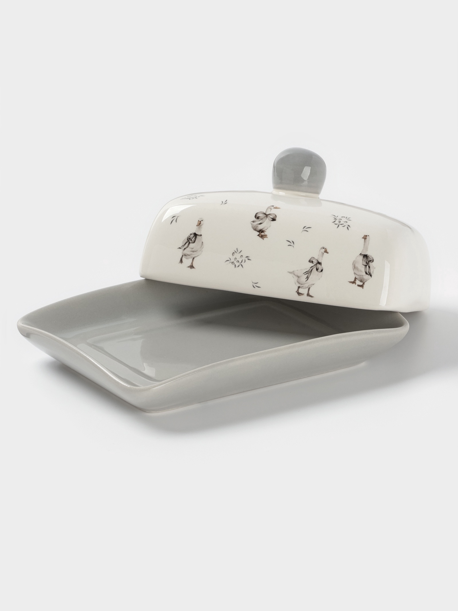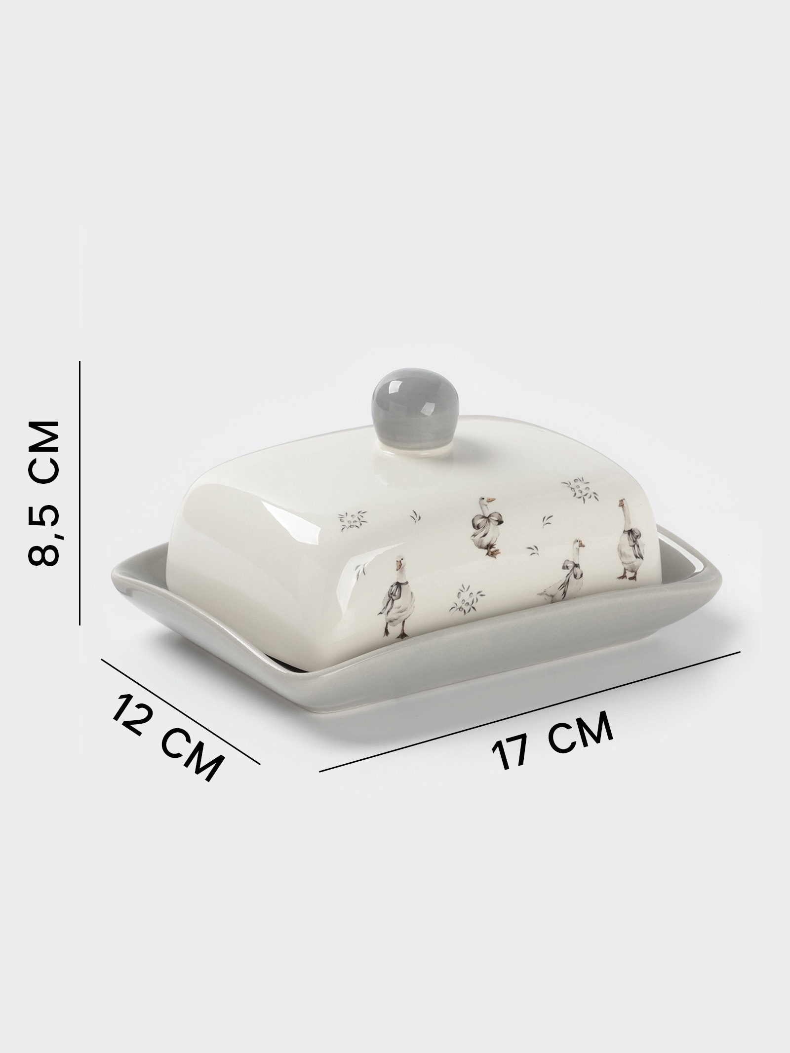 Масленка для сливочного масла доляна гуси, размер 17х12х8.5 см, цвет белый, керамика