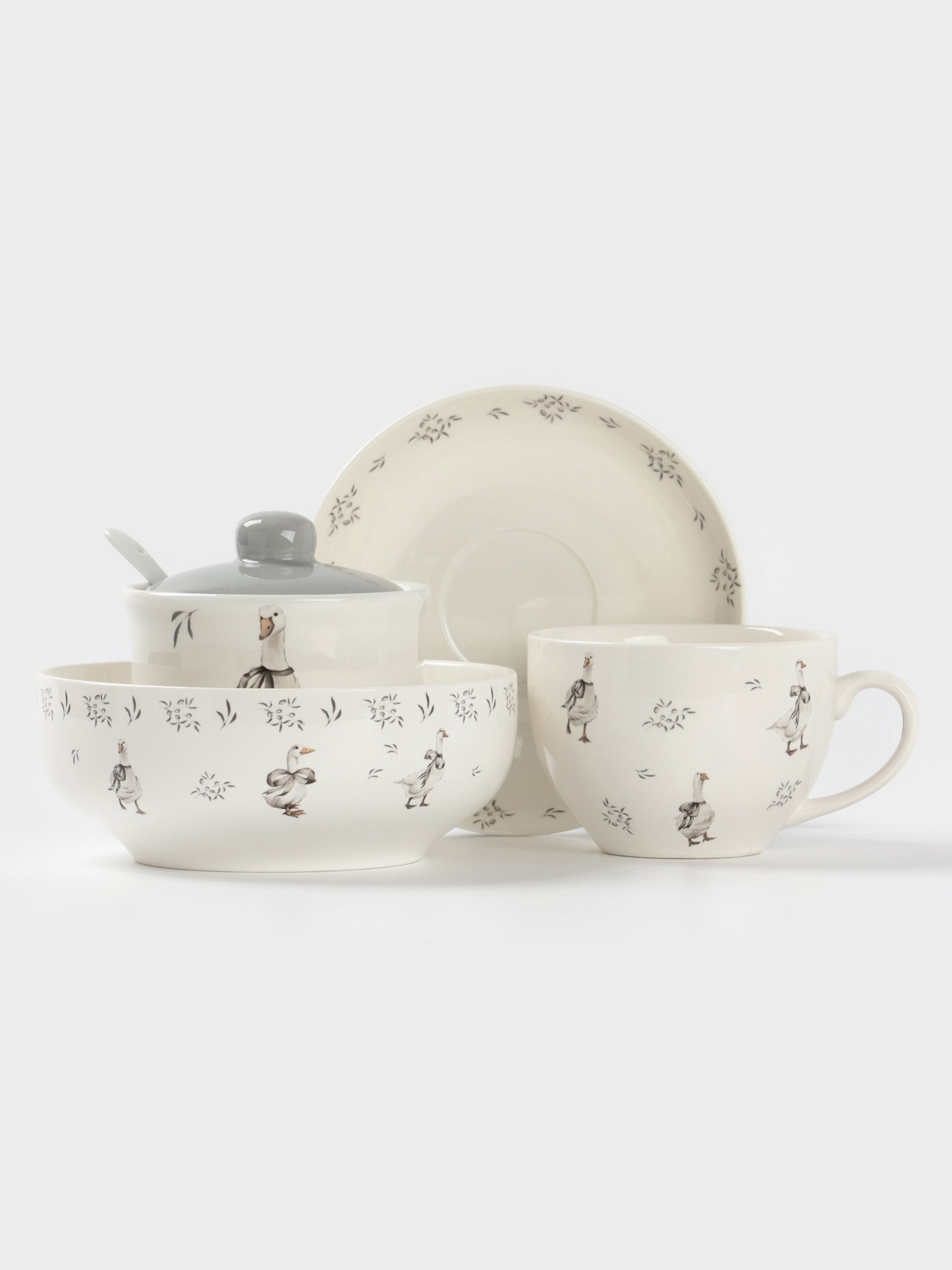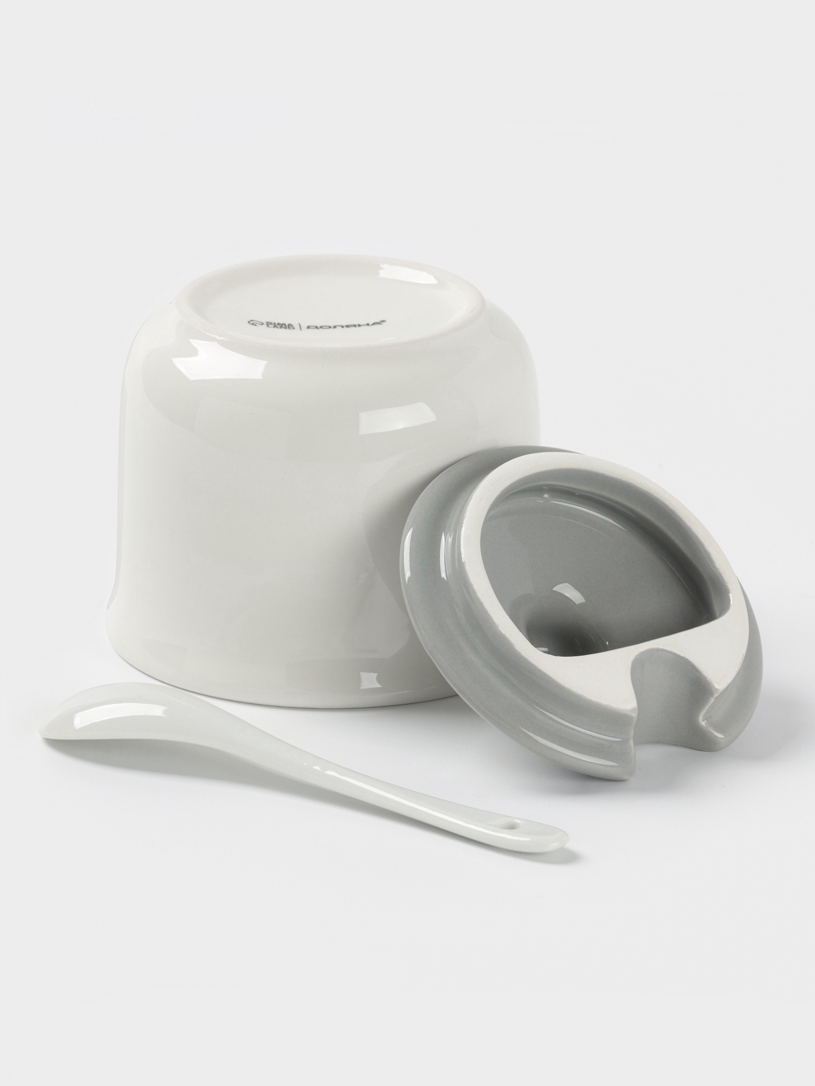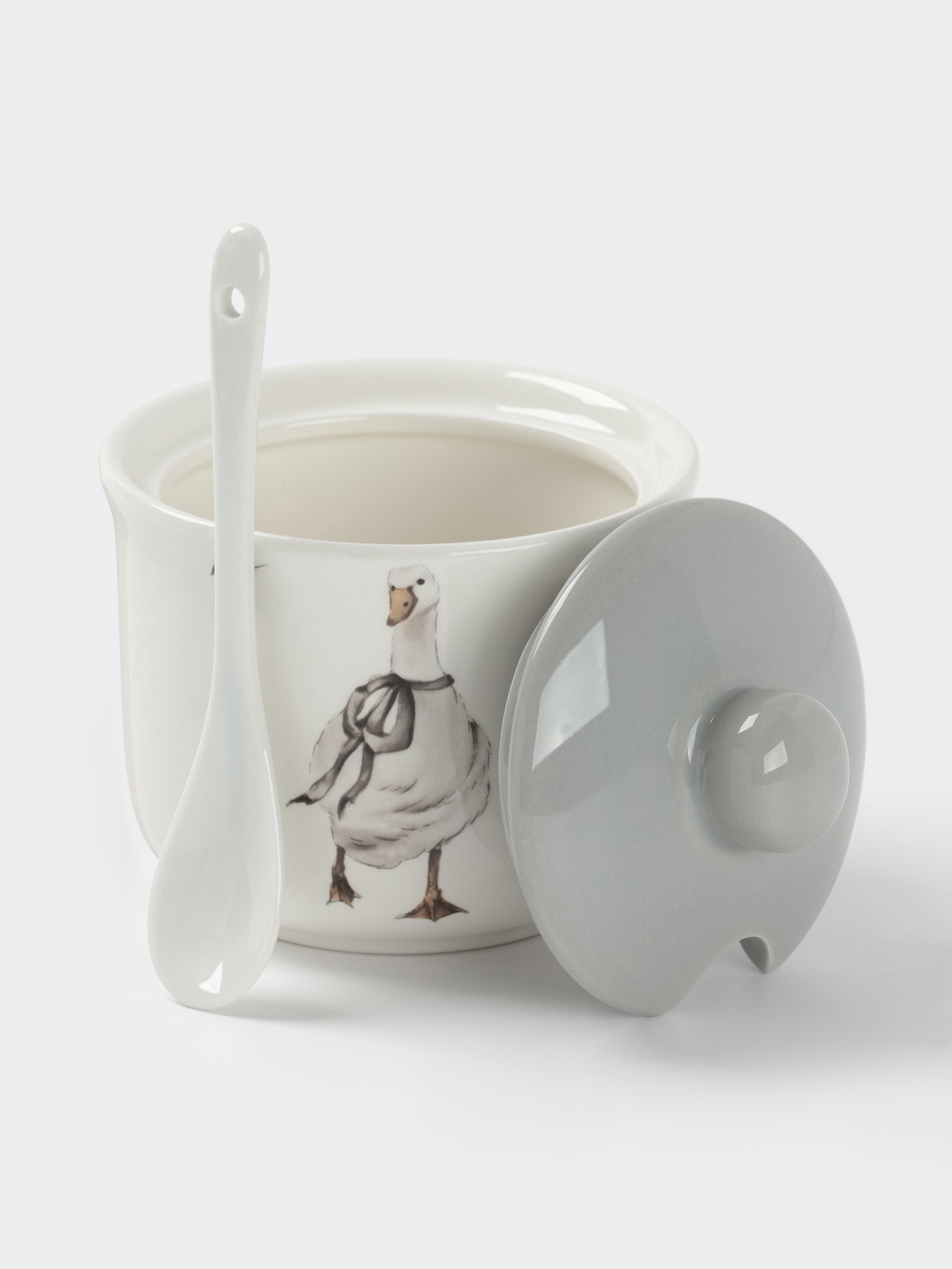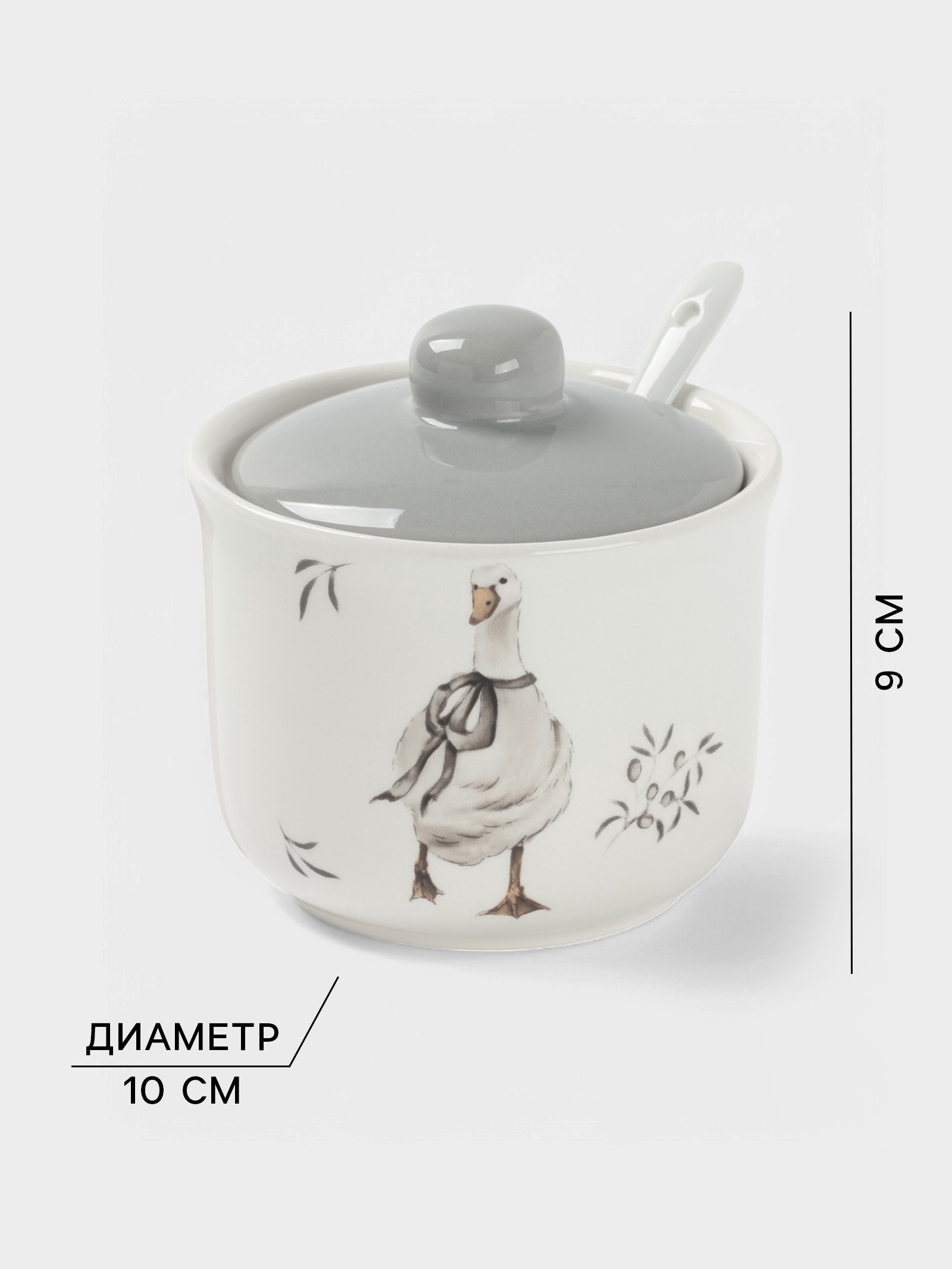 Сахарница с ложкой доляна гуси , доломит, 10 9 см, 300 мл, белая