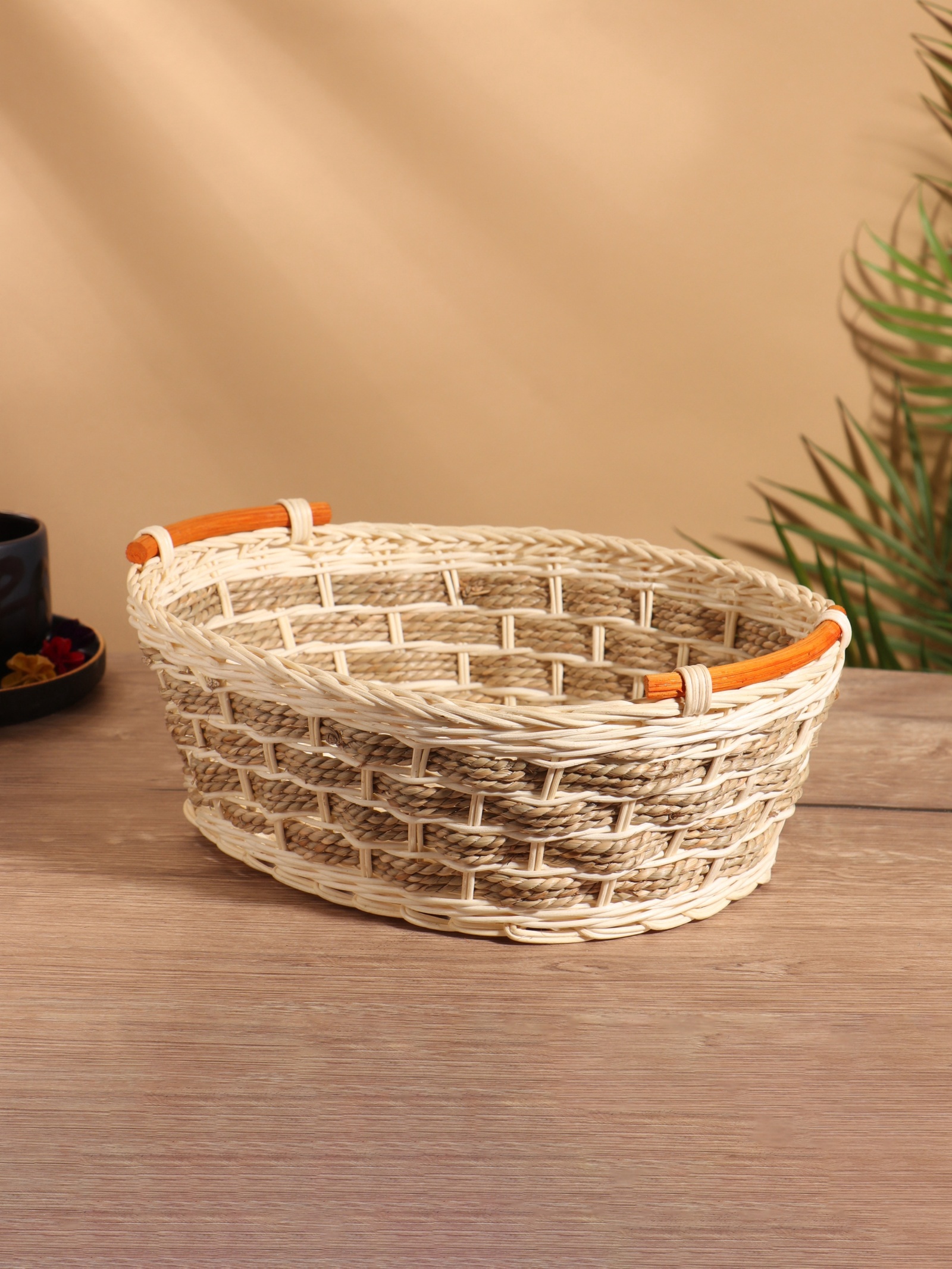 Корзина плетёная, 32x25x11 см, ротанг. Цвет: Бежевый Цвет: Коричневый Форма: Овальная Длина, см: 32 Ширина, см: 25 Высота, см: 11 parts count: 0 Высота с ручкой, см: 11 Крышка: Нет Материал: Ротанг натуральный Материал: Водоросли Основной материал: Ротанг Форма: Овал  развернуть описание ▼