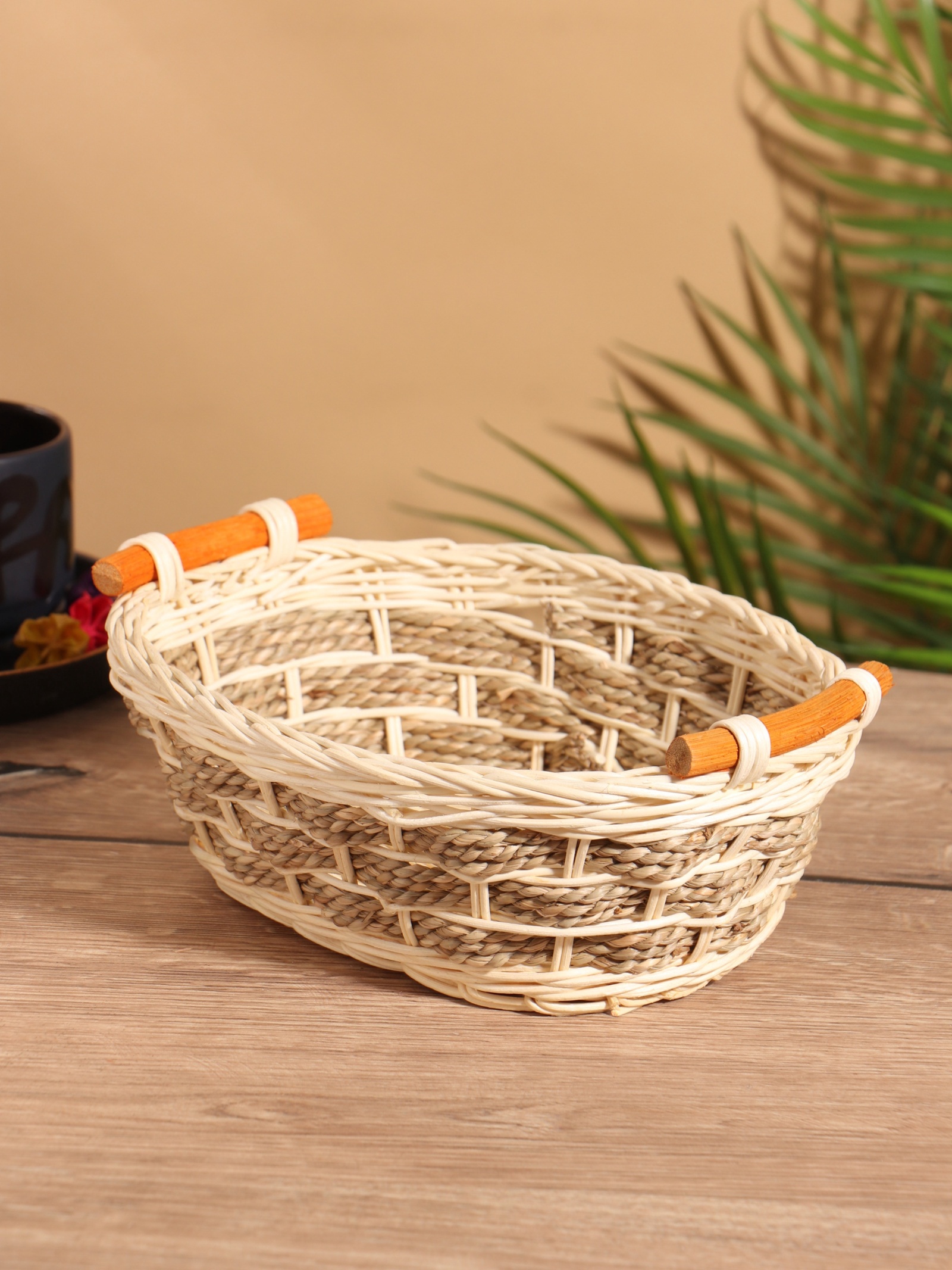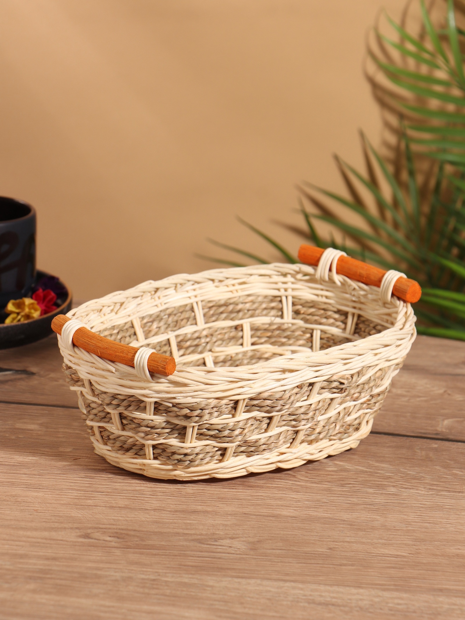 Корзина плетёная, 25x19x9 см, ротанг. Цвет: Бежевый Цвет: Коричневый Форма: Овальная Длина, см: 25 Ширина, см: 19 Высота, см: 9 parts count: 0 Высота с ручкой, см: 9 Крышка: Нет Материал: Ротанг натуральный Материал: Водоросли Основной материал: Ротанг Форма: Овал  развернуть описание ▼