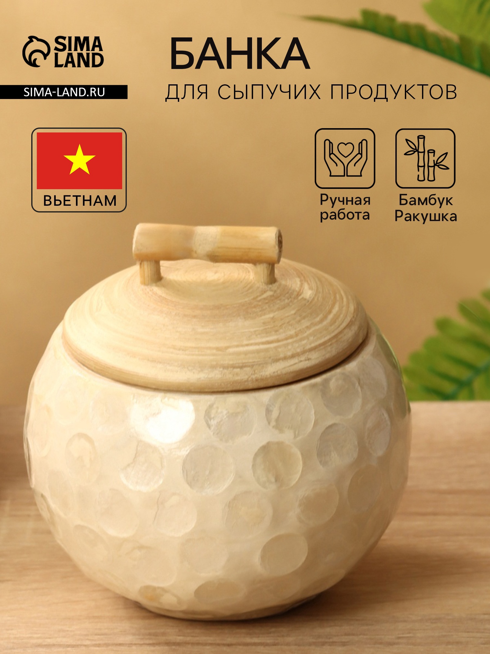 Банка для сыпучих продуктов, 11x11x9.5 см, бамбук