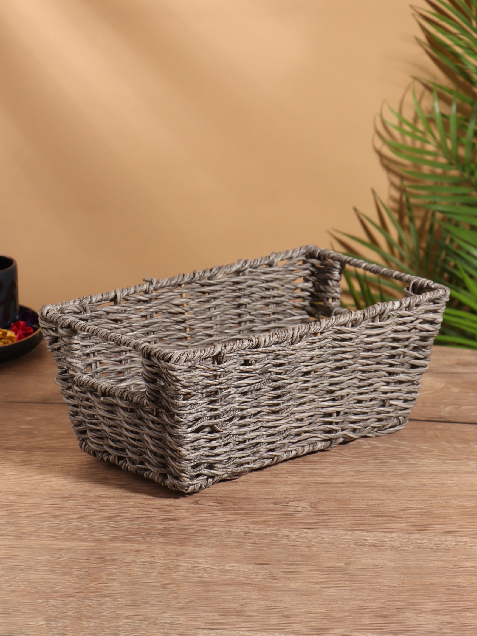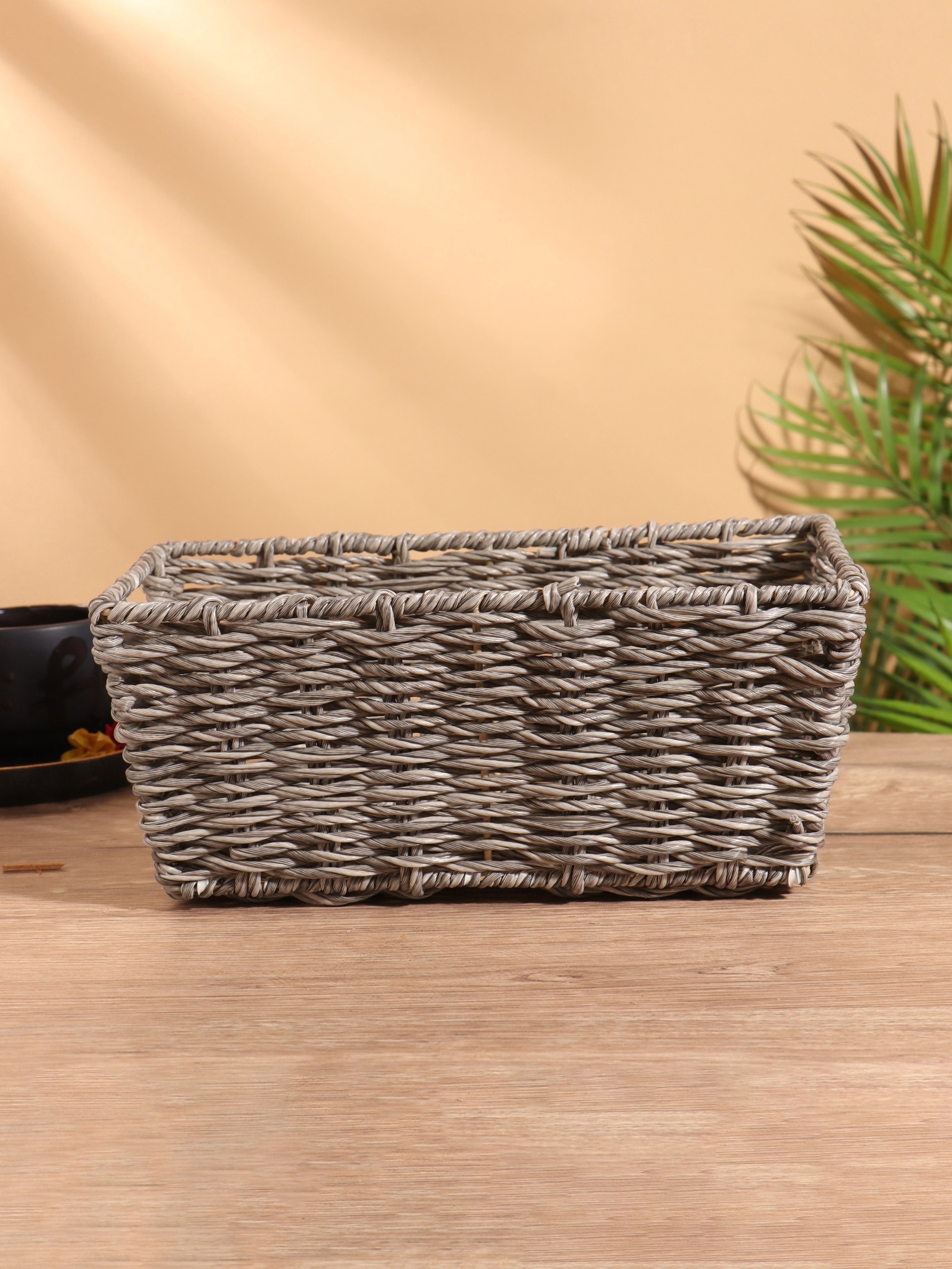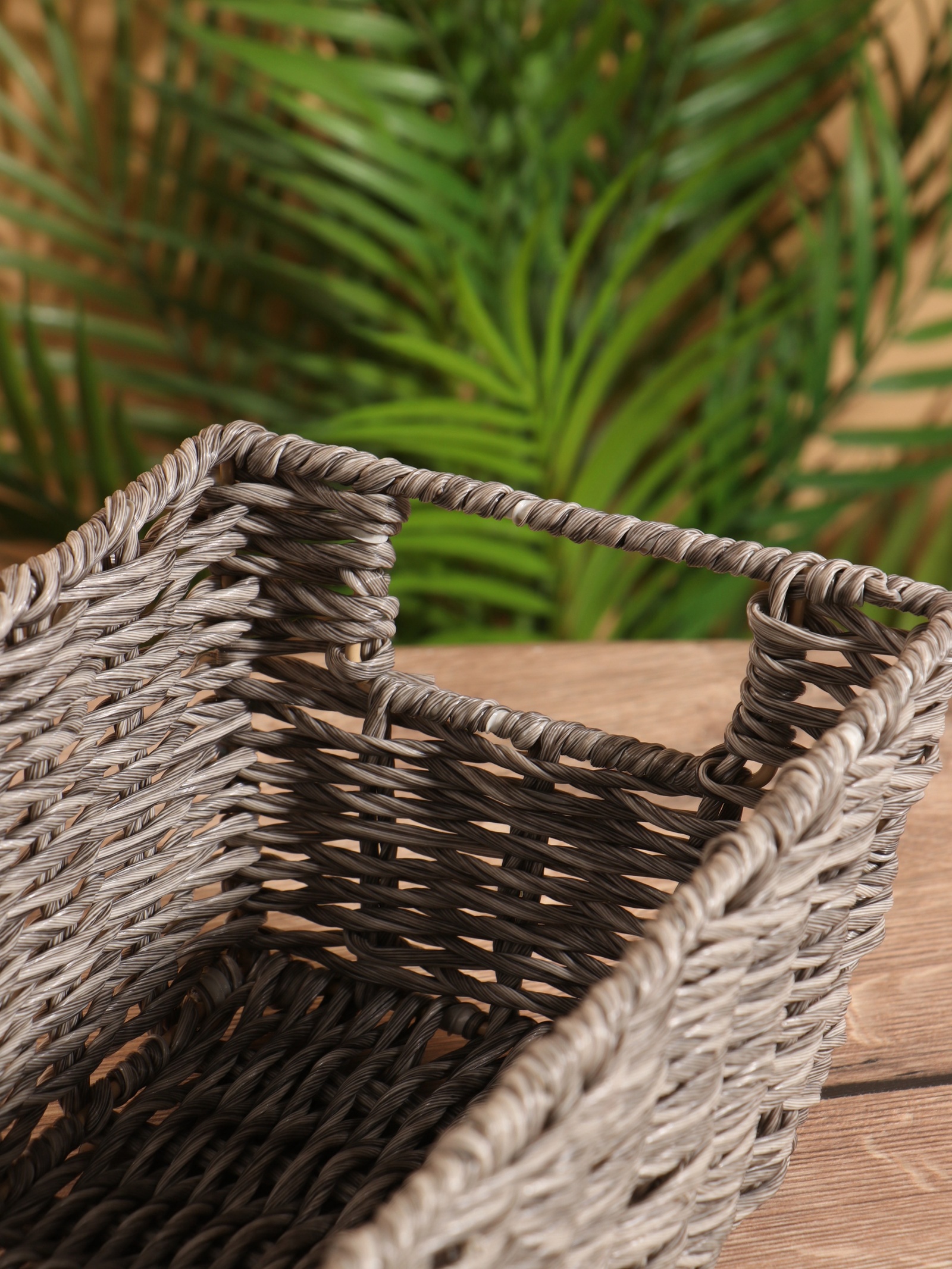 Корзина плетёная, 29x17x12 см, пластик. Цвет: Серый Форма: Прямоугольная Форма: Трапеция Длина, см: 29 Ширина, см: 17 Высота, см: 12 parts count: 0 Высота без ручки, см: 12 Высота с ручкой, см: 12 Крышка: Нет Материал: Пластик Основной материал: Пластик Форма: Трапеция Форма: Прямоугольник  развернуть описание ▼