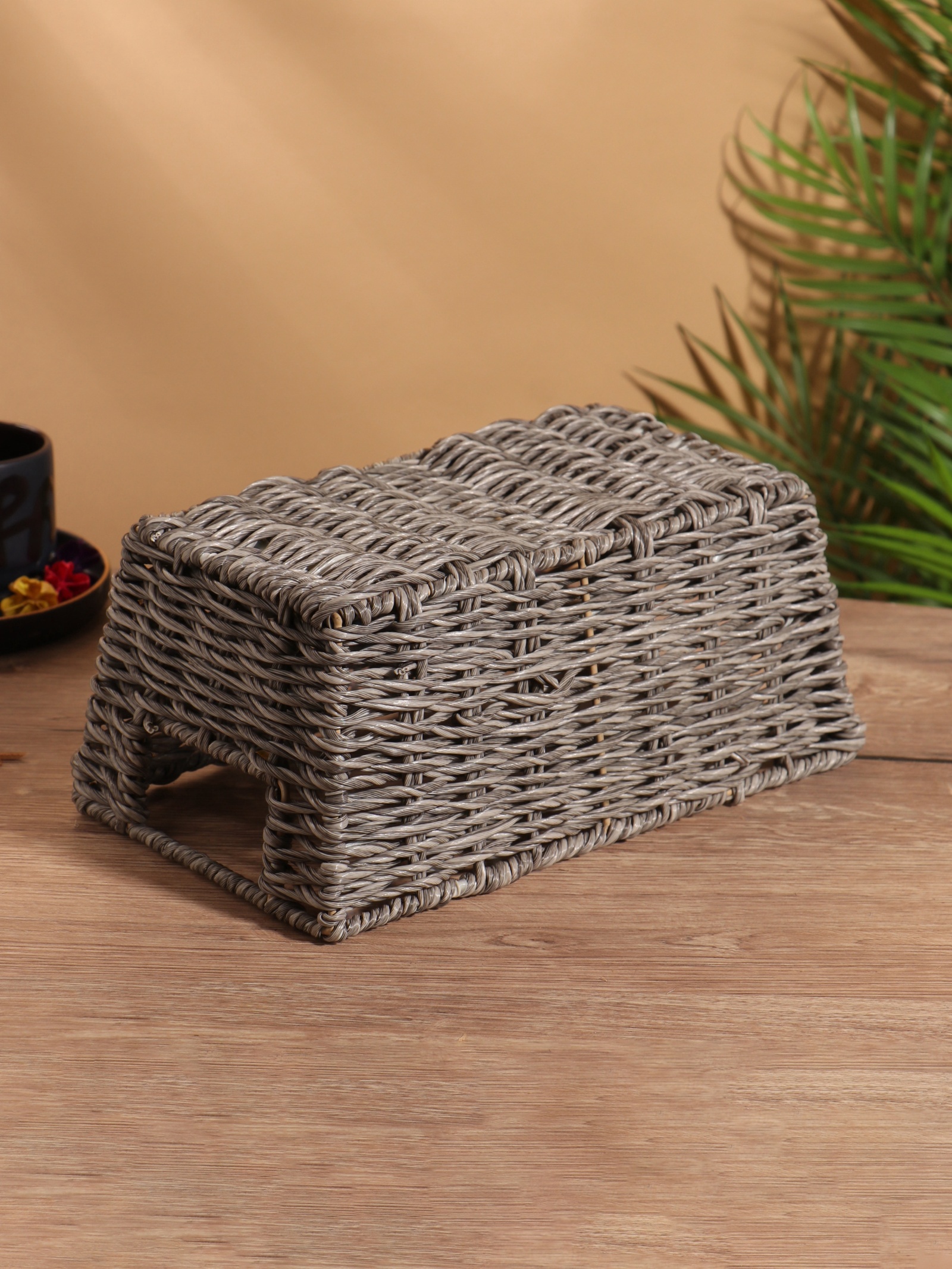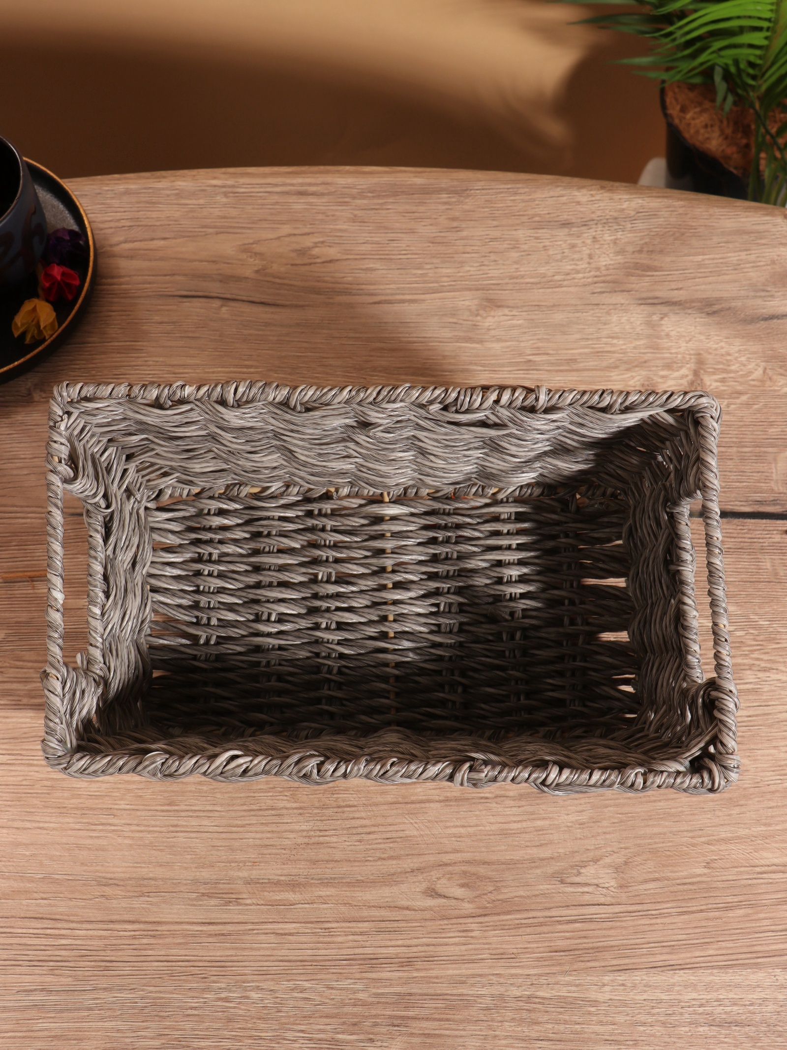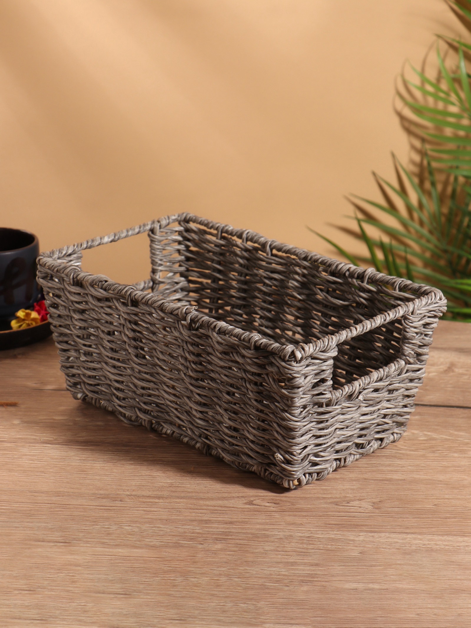 Корзина плетёная, 29x17x12 см, пластик. Цвет: Серый Форма: Прямоугольная Форма: Трапеция Длина, см: 29 Ширина, см: 17 Высота, см: 12 parts count: 0 Высота без ручки, см: 12 Высота с ручкой, см: 12 Крышка: Нет Материал: Пластик Основной материал: Пластик Форма: Трапеция Форма: Прямоугольник  развернуть описание ▼