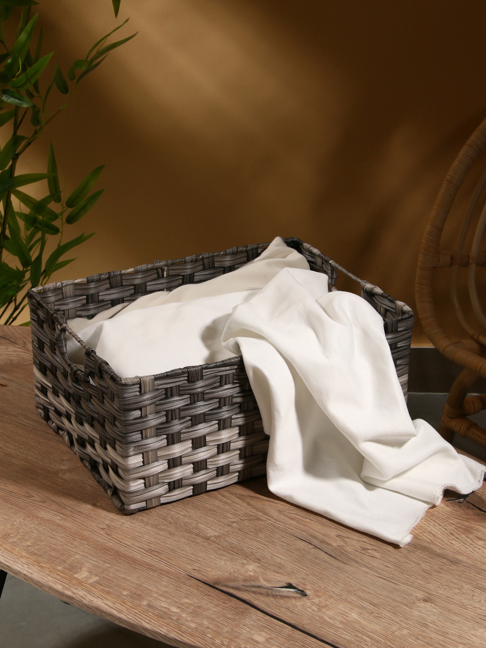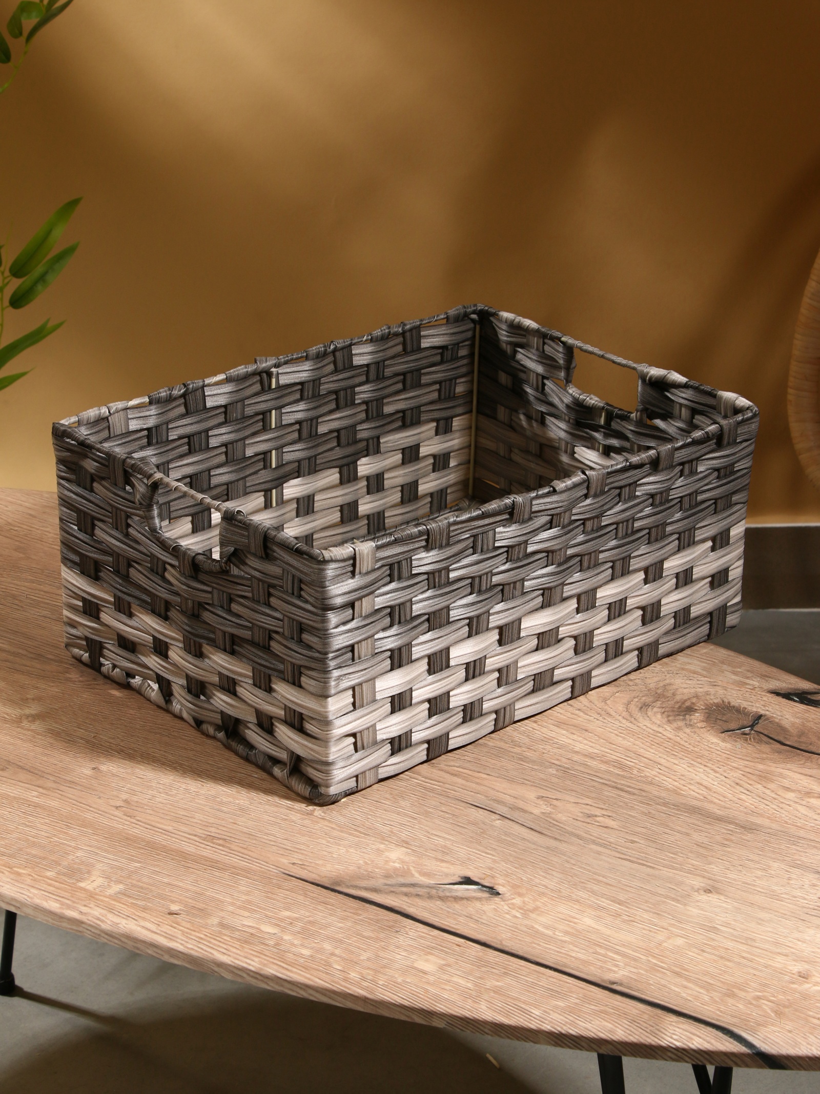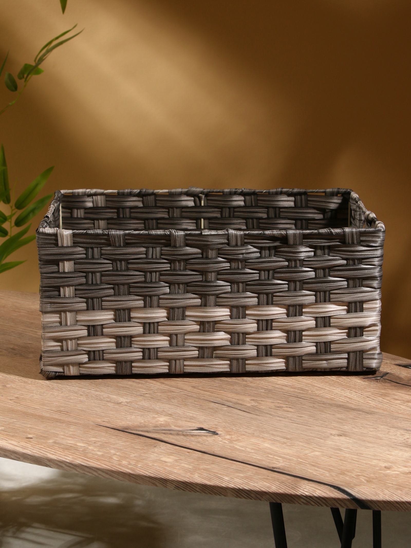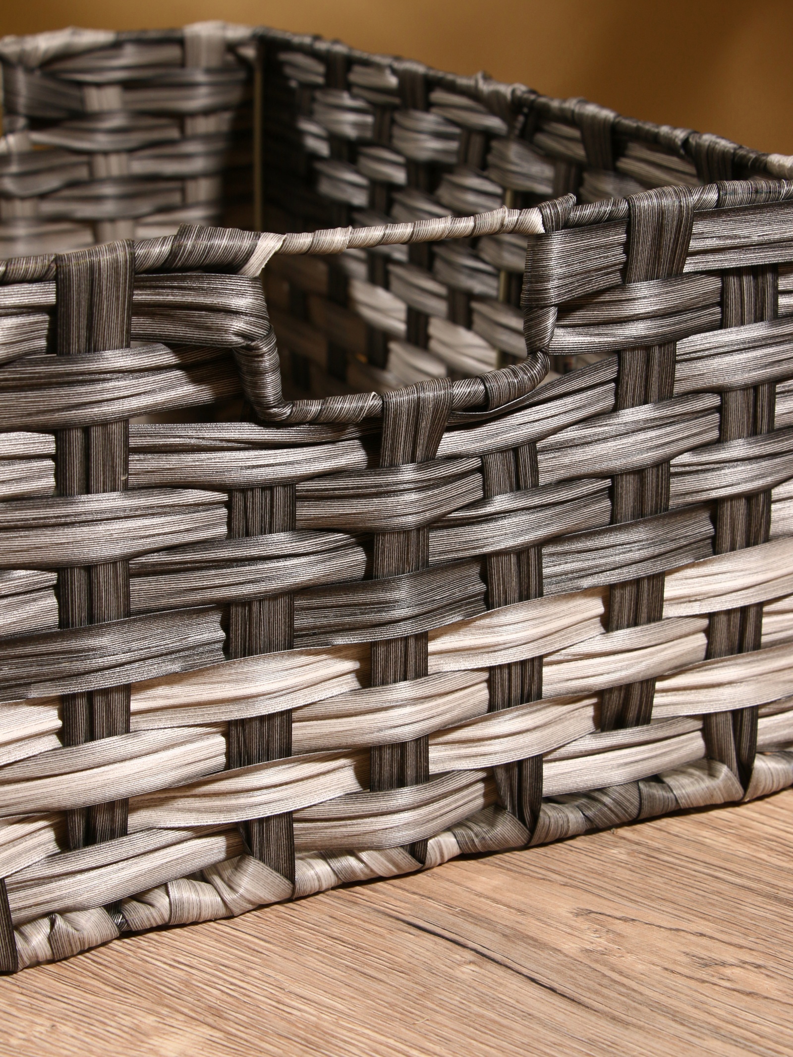 Корзина плетёная, 40x29x17 см, пластик. Цвет: Серый Форма: Прямоугольная Длина, см: 40 Ширина, см: 29 Высота, см: 17 parts count: 0 Высота без ручки, см: 17 Крышка: Нет Материал: Пластик Основной материал: Пластик Форма: Прямоугольник  развернуть описание ▼