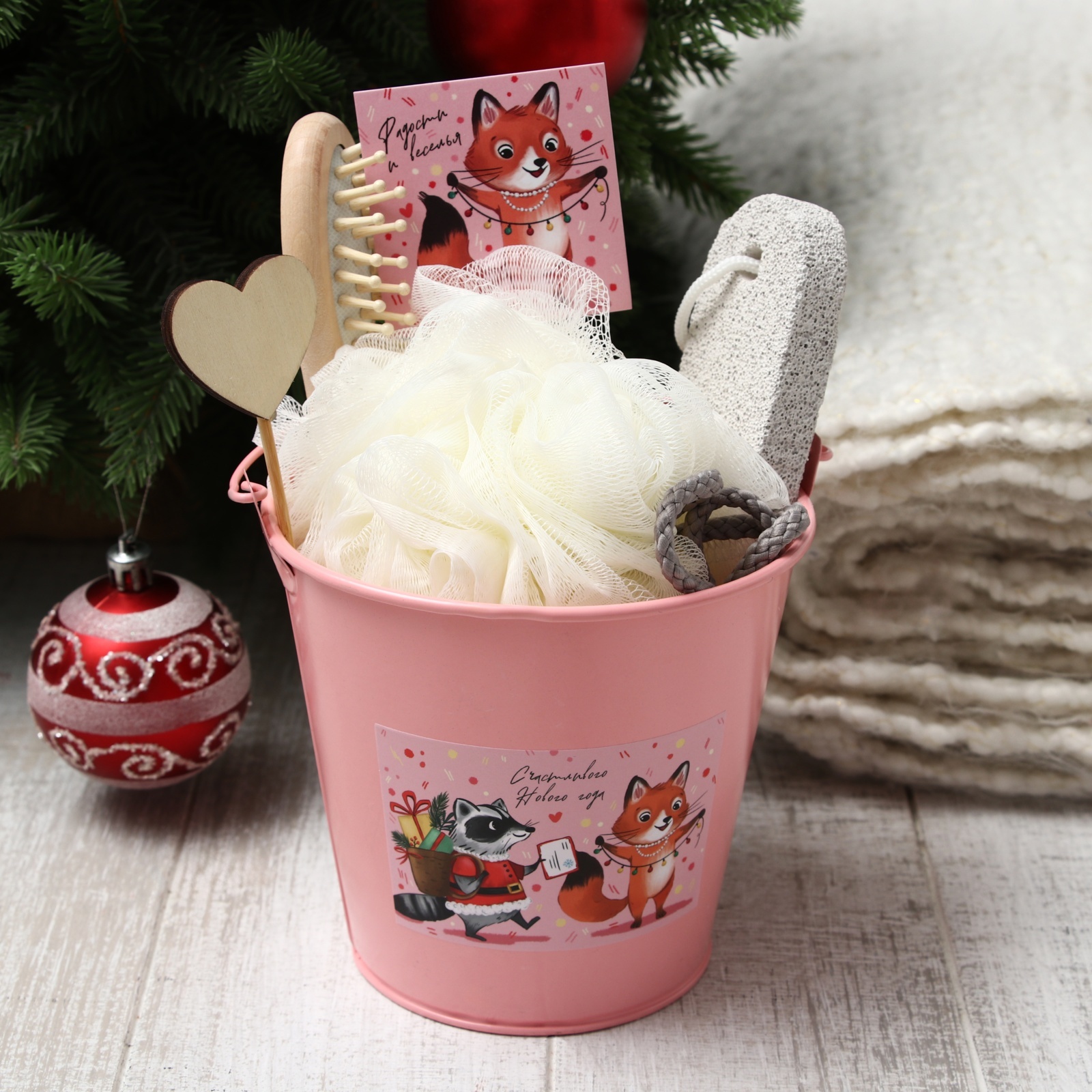 Набор подарочный этель «радости и веселья»: полотенце 30 60 см и аксессуары (4 предмета). Набор:Да|Цвет:Розовый|Цвет:Бежевый|Ткань:Махра|Плотность, г/м :340|Размер, см:30 х 60|В упаковке, шт.:1|В наборе, шт.:6|Количество элементов:6|Тематика:Животный мир|Тематика:Новогодняя|Вид упаковки:Пакет|Вид упаковки:Ведерко|Рисунок:Да|Тематика праздника:Новый год|Возраст:Взрослый|Материал:Хлопок|Декоративные элементы:Без элементов|Рекомендации по уходу:Барабанная сушка при низкой температуре|Рекомендации по уходу:Не отбеливать|Рекомендации по уходу:Глажка при 150 °С|Рекомендации по уходу:Стирка при 40 °С|Назначение полотенец:Для рук|Назначение полотенец:Для лица|Состав ткани:Хлопок|Составляющие набора:Расчёска для волос|Составляющие набора:Ведро|Составляющие набора:Декор|Составляющие набора:Пемза|Составляющие набора:Мочалка|Составляющие набора:Полотенце|Возраст:Для взрослых|В подарочной упаковке:Да|Особенности:Без особенностей|Страна:Россия