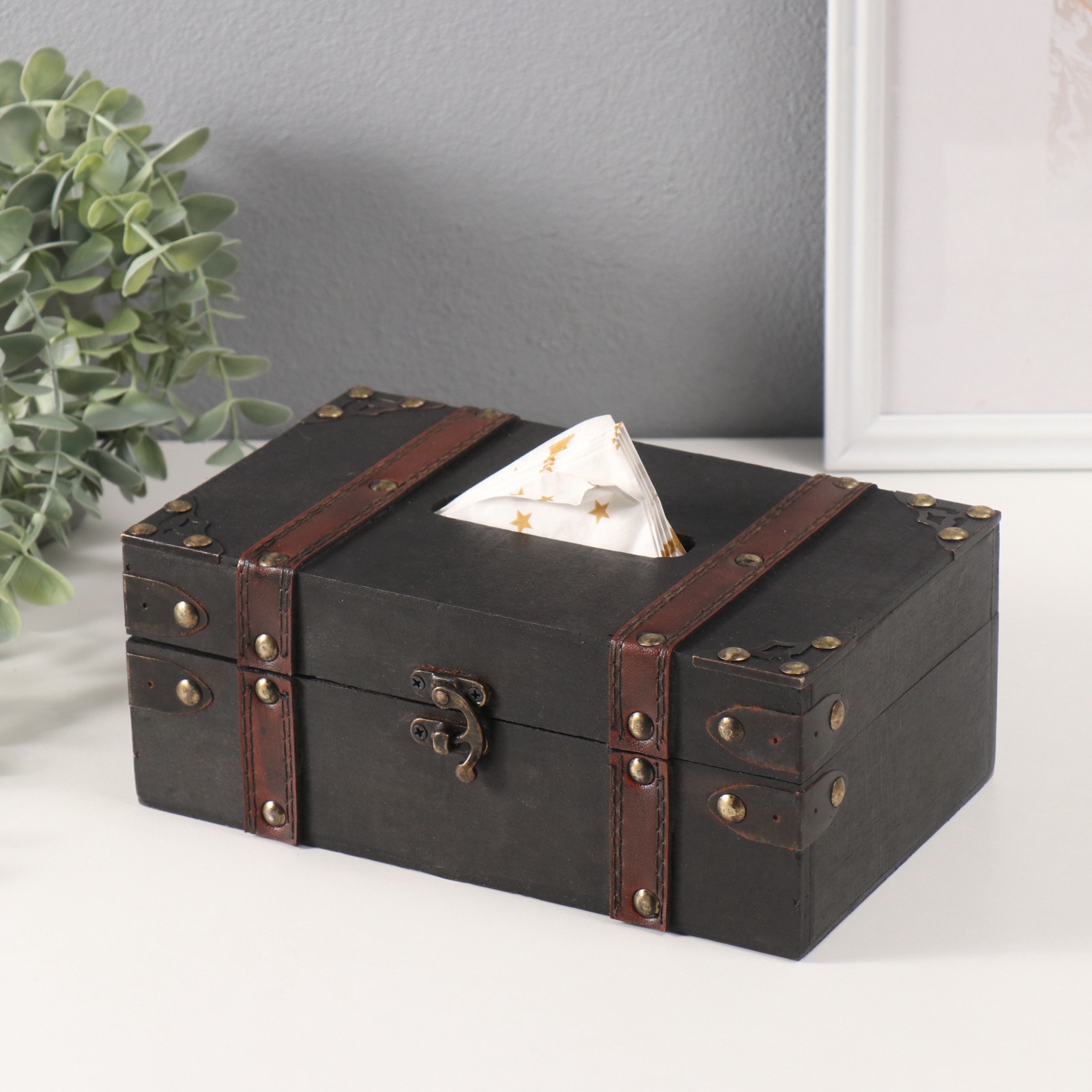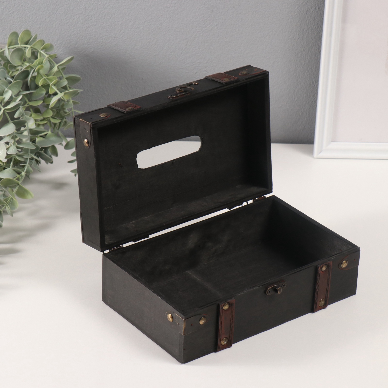 Шкатулка-салфетница «чёрный чемодан», дерево, 14x23x9 см