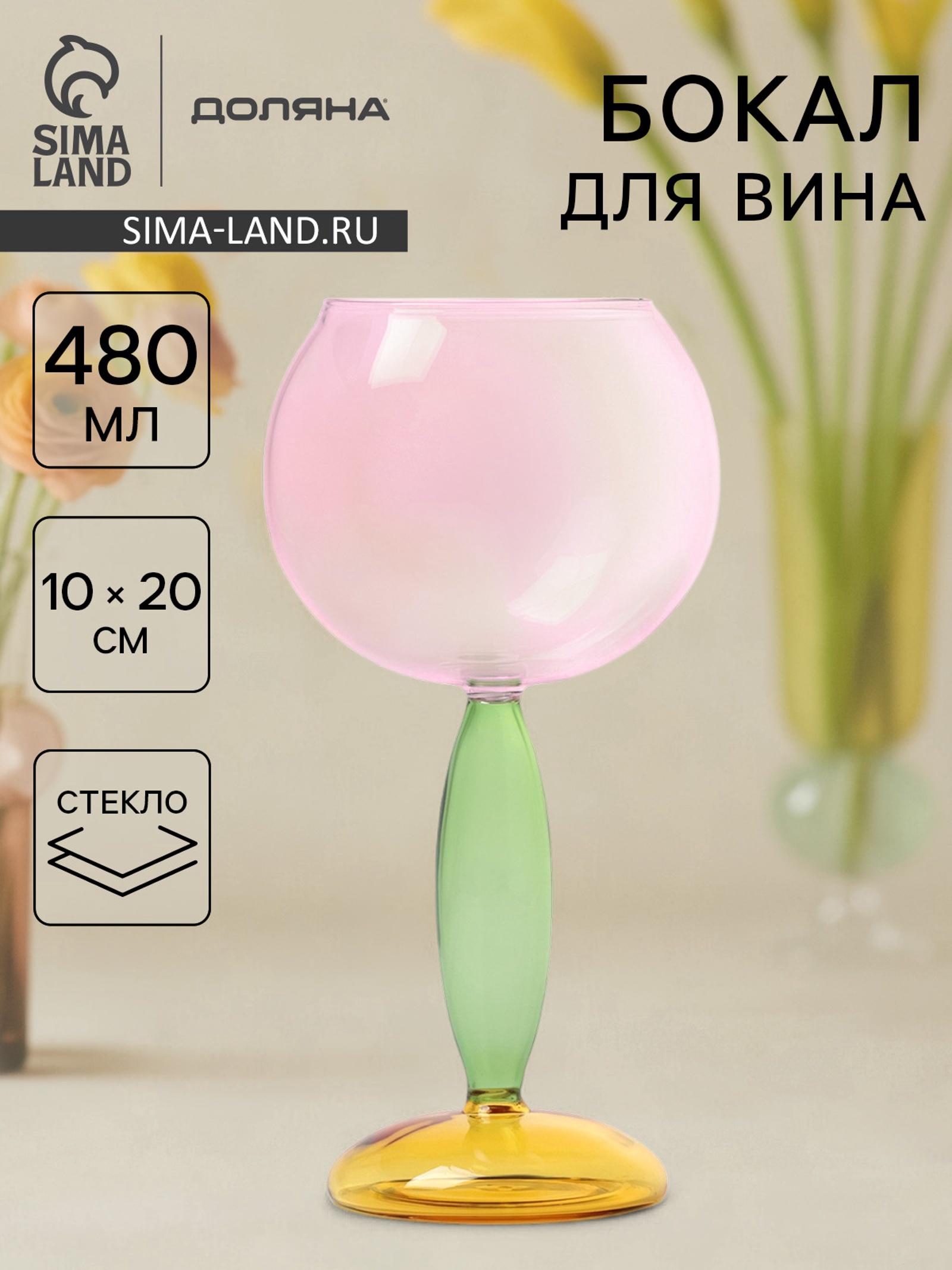 Бокал для вина доляна «балун», 480 мл, 10 20 см, стекло, разноцветный. Цветной бокал для вина — это не просто посуда, а акцент на настроении за столом. Его насыщенный оттенок добавляет празднику визуальной энергии, а крупный объём подходит для тех, кто любит щедрые налития без лишних переливаний. Особенности: Объём: 480 мл удобен для подачи вина на дружеских встречах, когда важно не прерывать разговор ради добавки. Подходит и для белых, и для красных сортов средней насыщенности.Яркий дизайн: разноцветное стекло заменяет дополнительный декор — один бокал становится акцентом на скатерти. Он работает как самостоятельный элемент стиля, особенно на лёгких столах, пикниках или летних ужинах.Оригинальная форма: расширенная чаша даёт вину больше контакта с воздухом, что способствует раскрытию аромата.Уход: бокал не рекомендуется мыть в посудомоечной машине — ручная мойка сохраняет насыщенность цвета и целостность стекла.Такой бокал выбирают не только для вина, но и для атмосферы. Он подходит для дачи, вечеринок, подарочных наборов или как элемент тематической сервировки. Набор:Нет|Цвет:Разноцветный|Объём, мл:480|Рисунок:Нет|Назначение:Для вина|Материал:Стекло|Можно мыть в посудомоечной машине:Нет|Текстура:Гладкая|Особенности:Без особенностей|Страна:Китай  развернуть описание ▼
