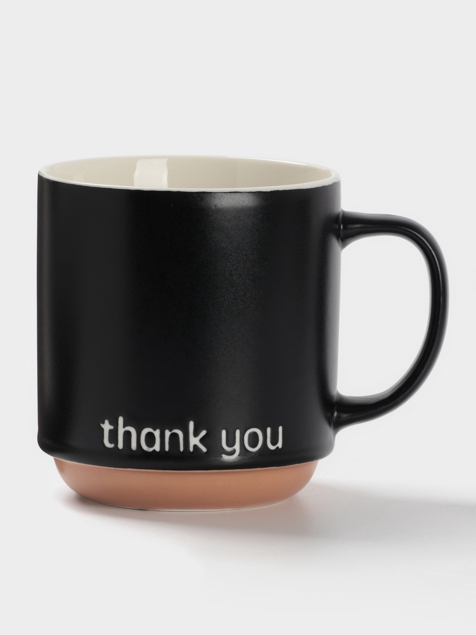 Кружка доляна Thank You, фарфор, 420 мл, 12 9 10 см, фарфор, чёрная