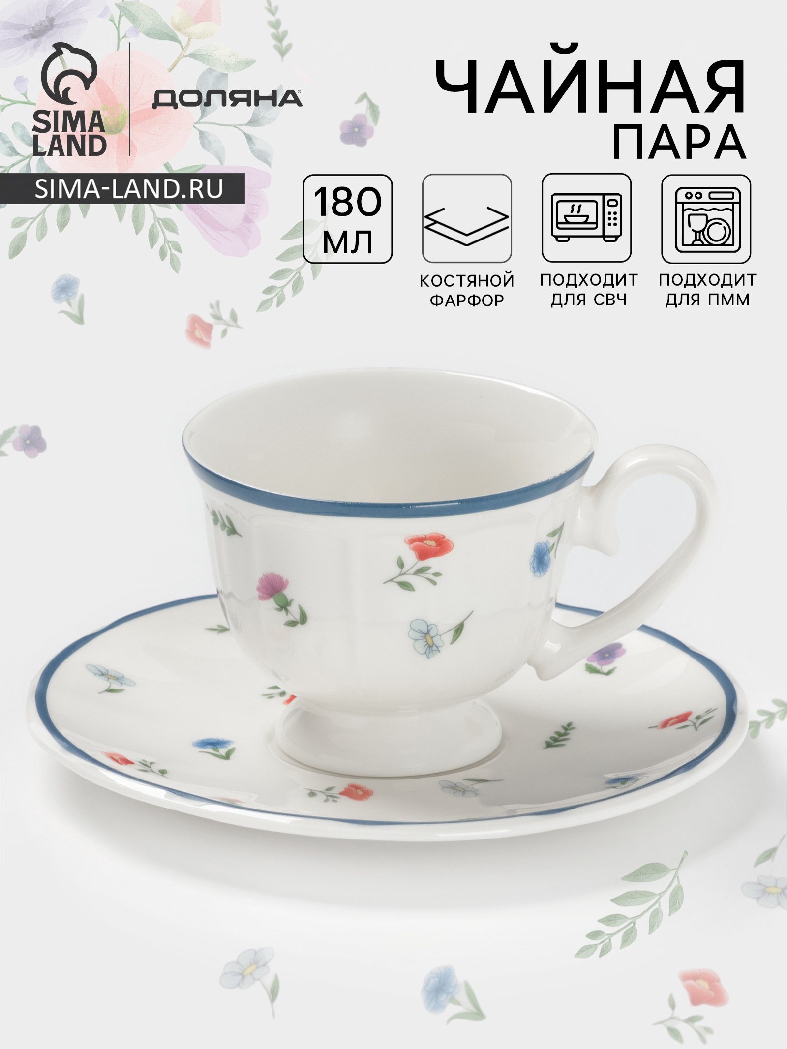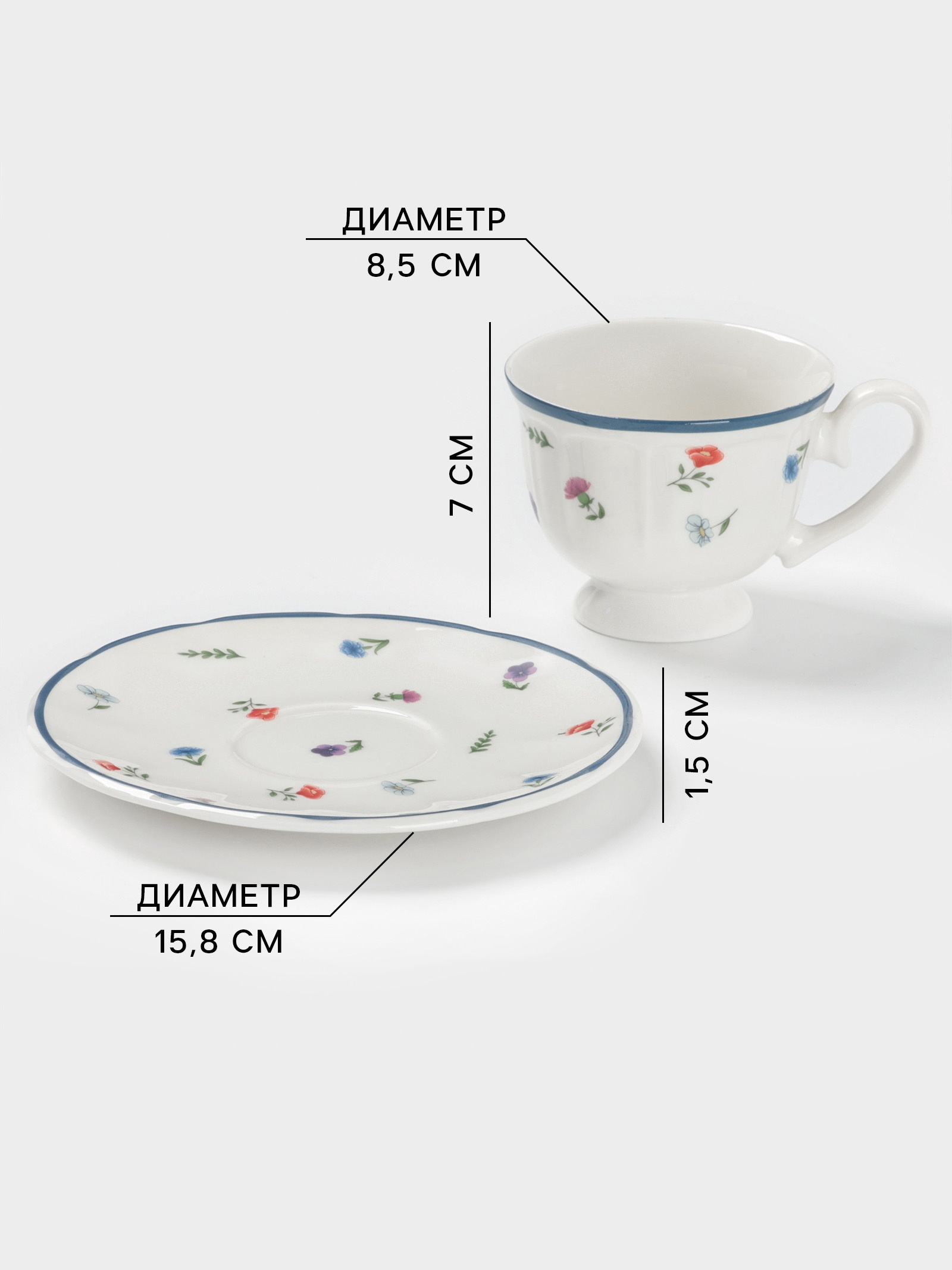 Чайная пара доляна «романс», 2 предмета: чашка 180 мл, блюдце 15.8 1.5 см, фарфор, белая
