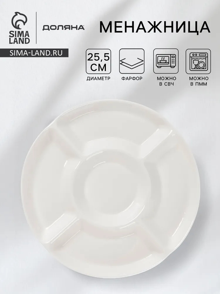 Менажница доляна White Label, 5 секций, D=25.5 см, фарфор, белая