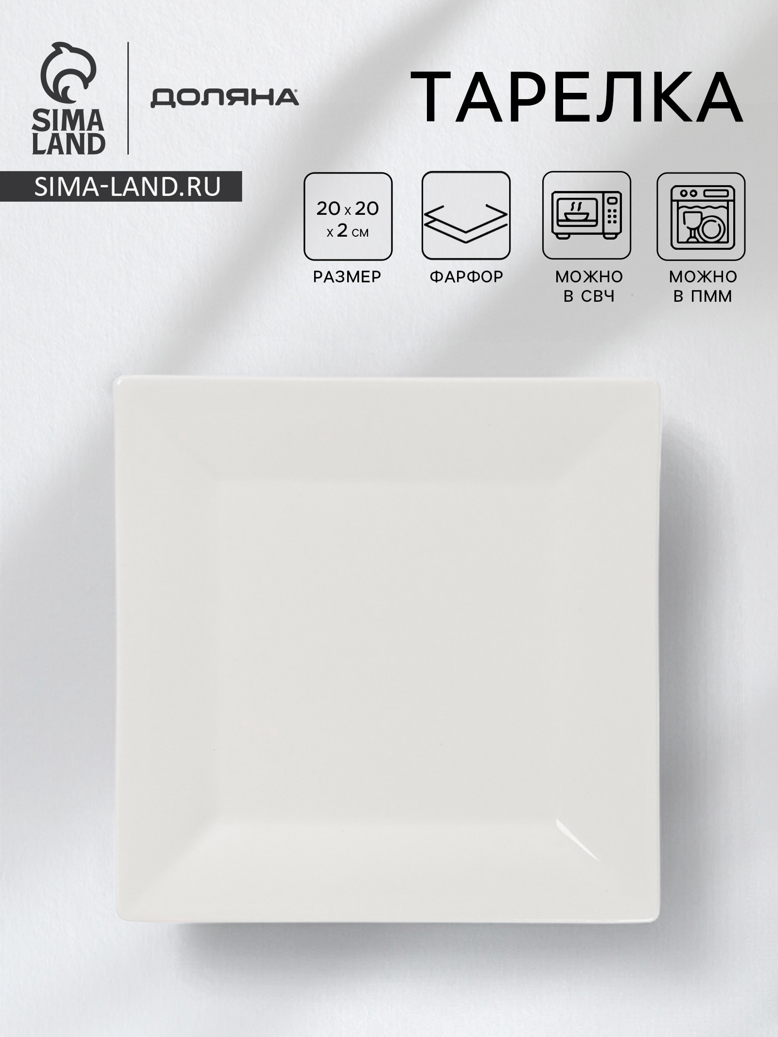Тарелка квадратная доляна White Labe, 20 2 см, фарфор, белая