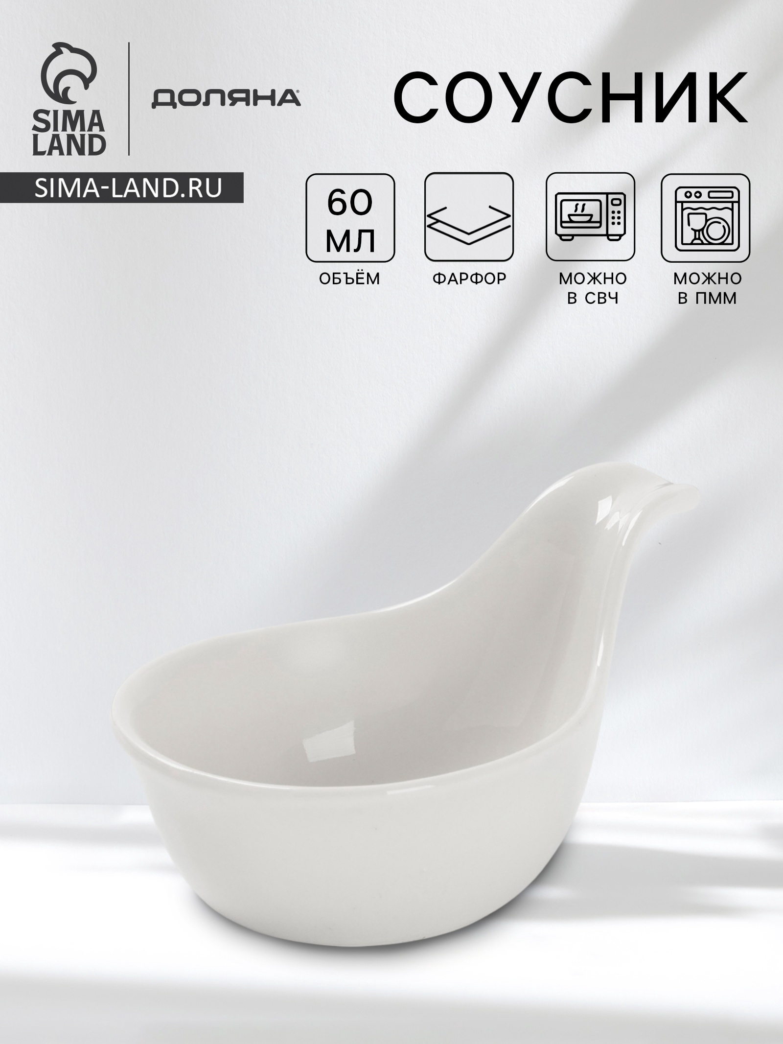 Соусник доляна White Label, 60 мл, 12 8 6 см, фарфор, белый