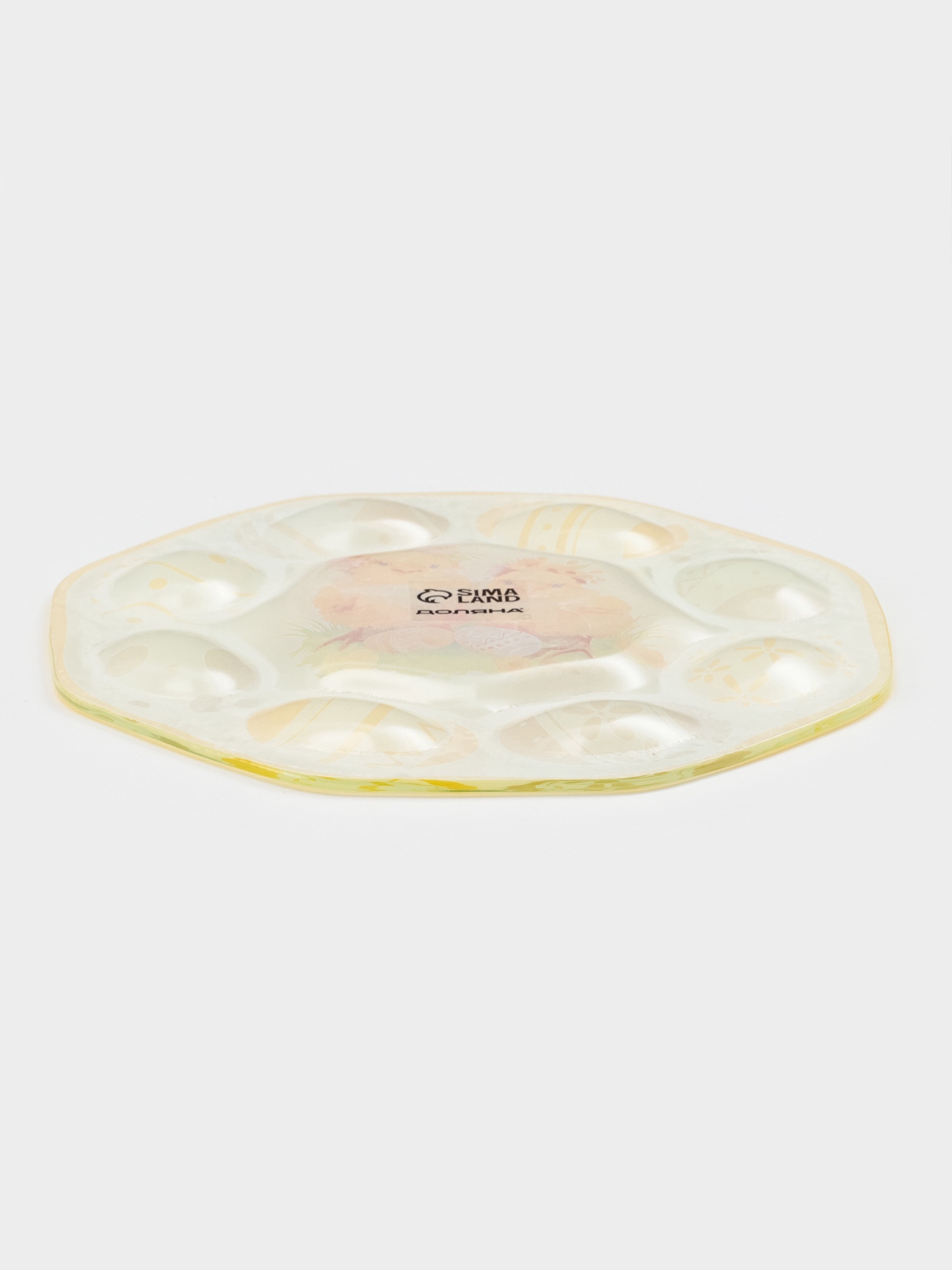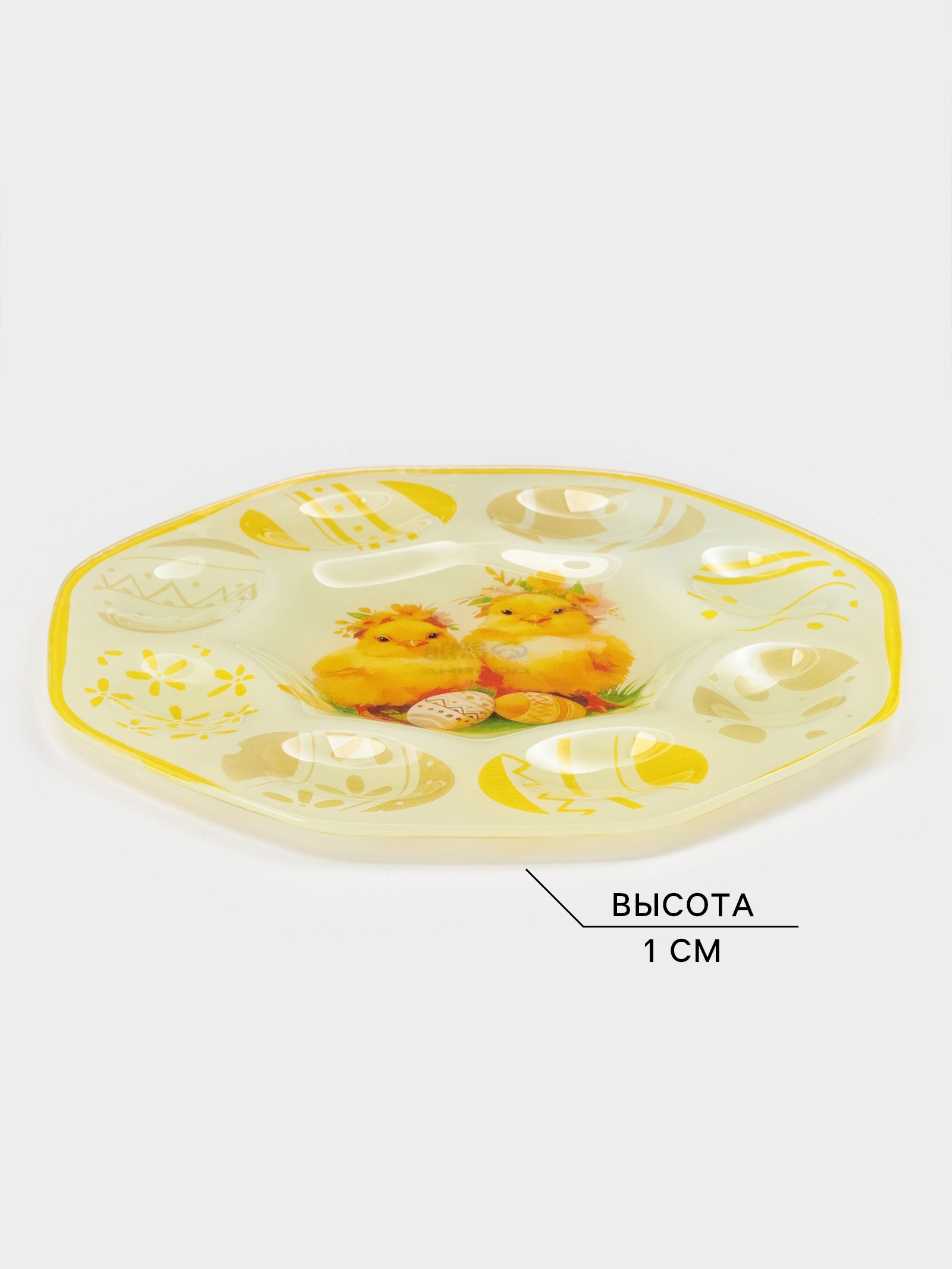Подставка для яиц доляна «пасха. милые цыплята», 22 22 1 см, 8 ячеек, стекло, жёлтая.   Эта подставка для яиц станет прекрасным дополнением вашего пасхального стола. Изготовленная из стекла, она имеет размеры 22 22 1 см и вмещает 8 яиц, что идеально подходит для праздничной сервировки. Желтый цвет и милые цыплята на рисунке создают радостное и праздничное настроение. Преимущества: Пасхальная тематика: милые цыплята создают праздничное настроение.Удобство в уходе: можно мыть в посудомоечной машине.Долговечность: стекло устойчиво к повреждениям и царапинам.Упорядоченность: вмещает 8 яиц, делая их доступными для гостей.Стильный дизайн: желтый цвет и тематический рисунок добавляют яркости вашему столу.Эта подставка для яиц — отличное решение для тех, кто хочет создать особую атмосферу на пасхальном столе. Она не только функциональна, но и эстетична, делая каждый праздник особенным. Цвет:Жёлтый|Цвет:Белый|Диаметр, см:22|Количество ячеек:8|Тематика:Пасхальная|Рисунок:Да|Материал:Стекло|Можно мыть в посудомоечной машине:Да|Страна:Китай  развернуть описание ▼