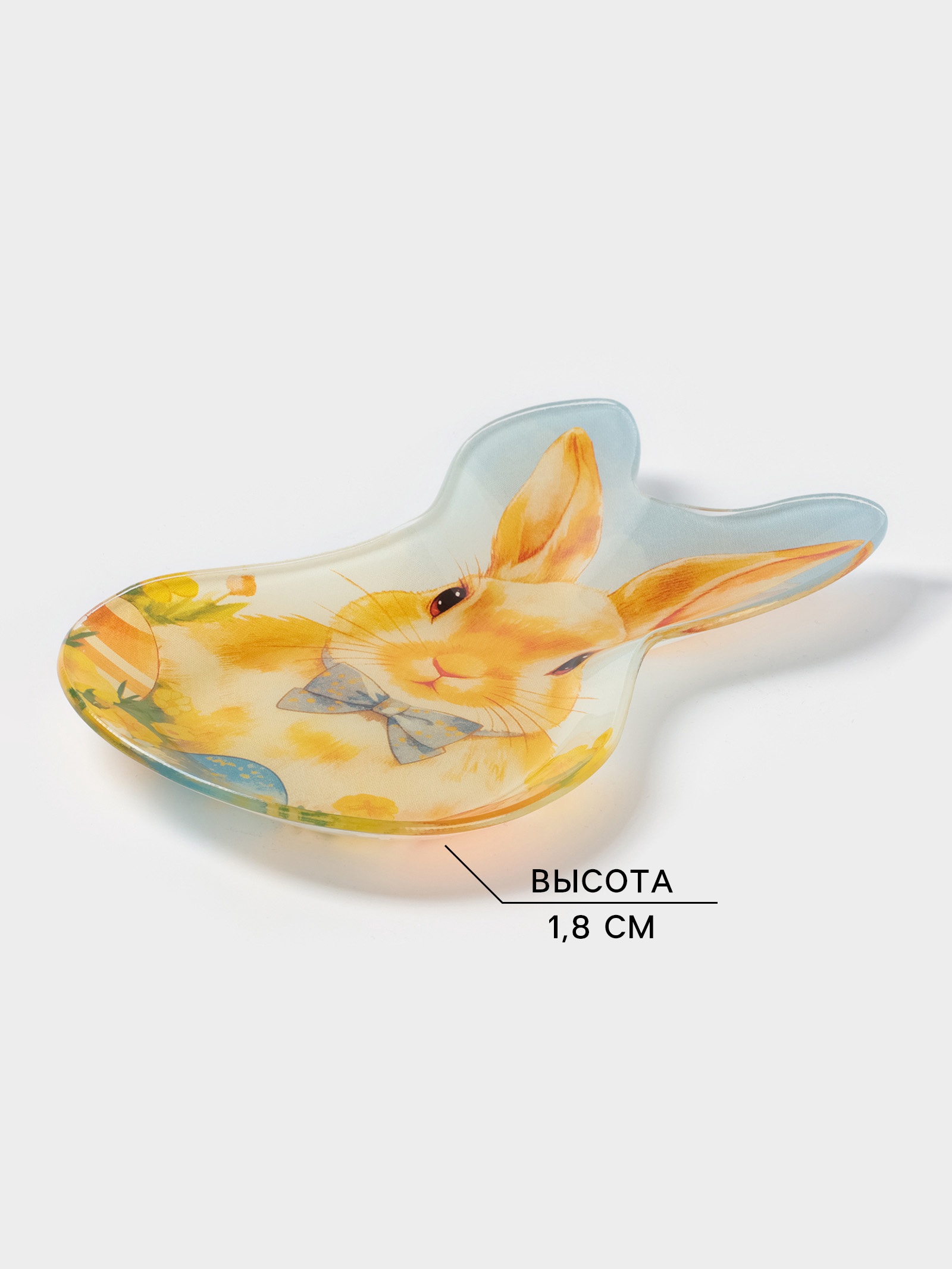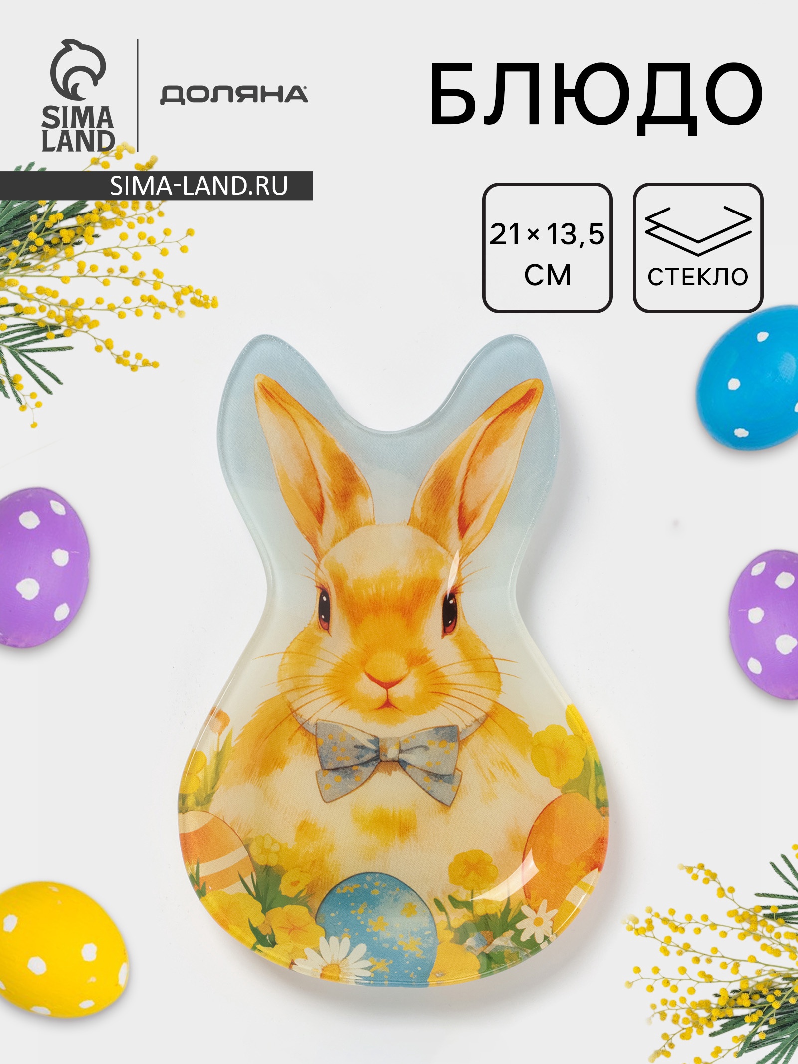Блюдо сервировочное доляна «пасха. кролик с бантиком», 21 13.5 1.8 см, стекло, разноцветное
