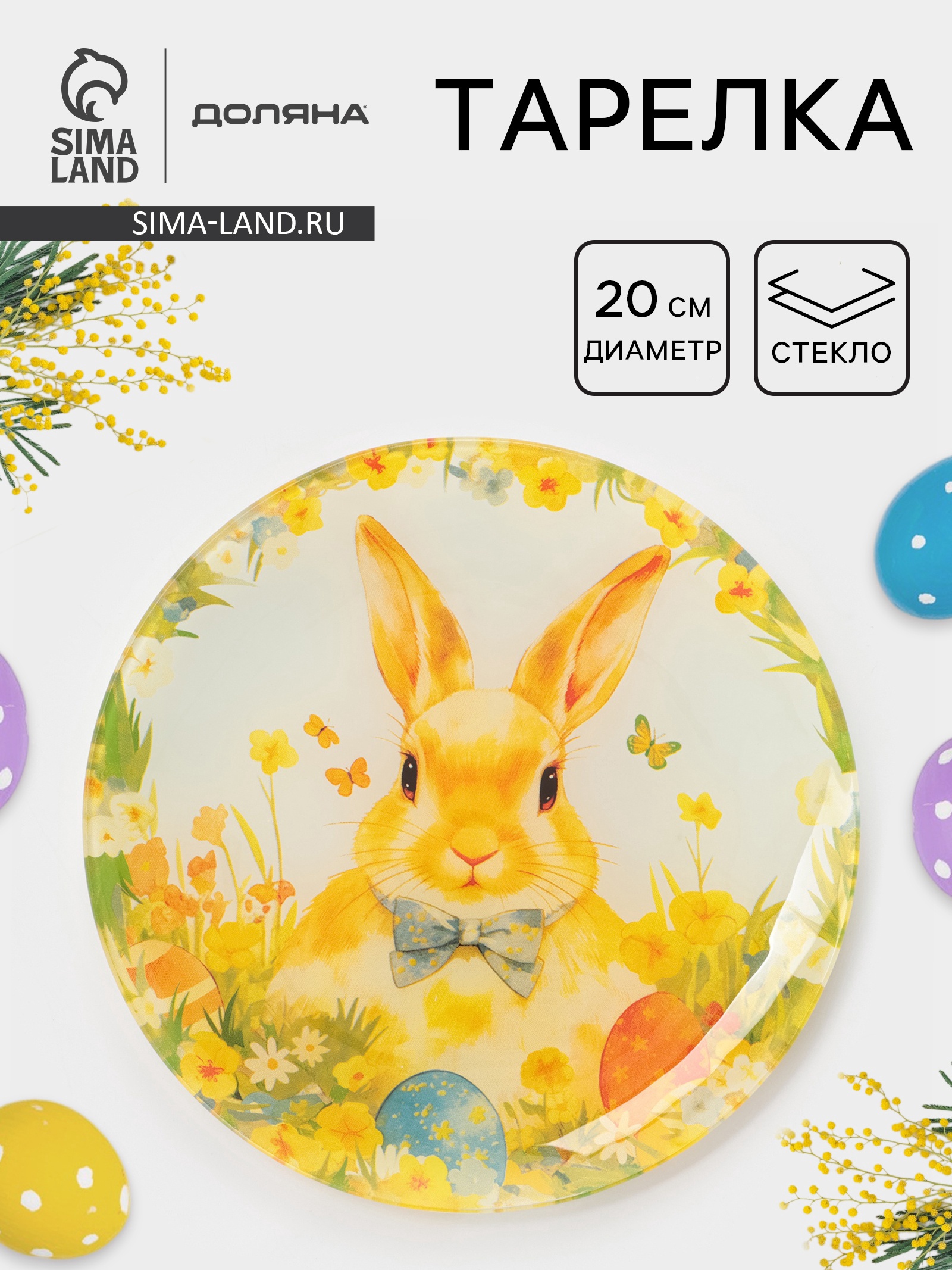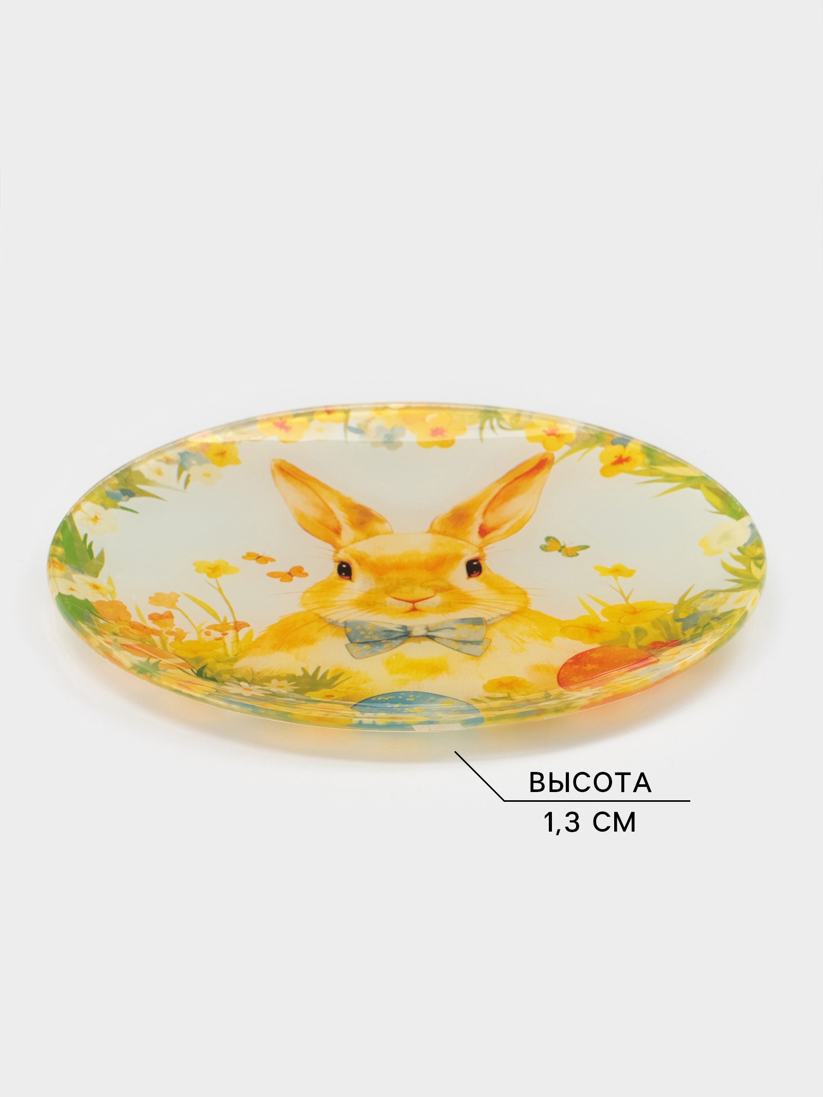 Тарелка доляна «пасха. кролик с бантиком», D=20 см, стекло, жёлтая
