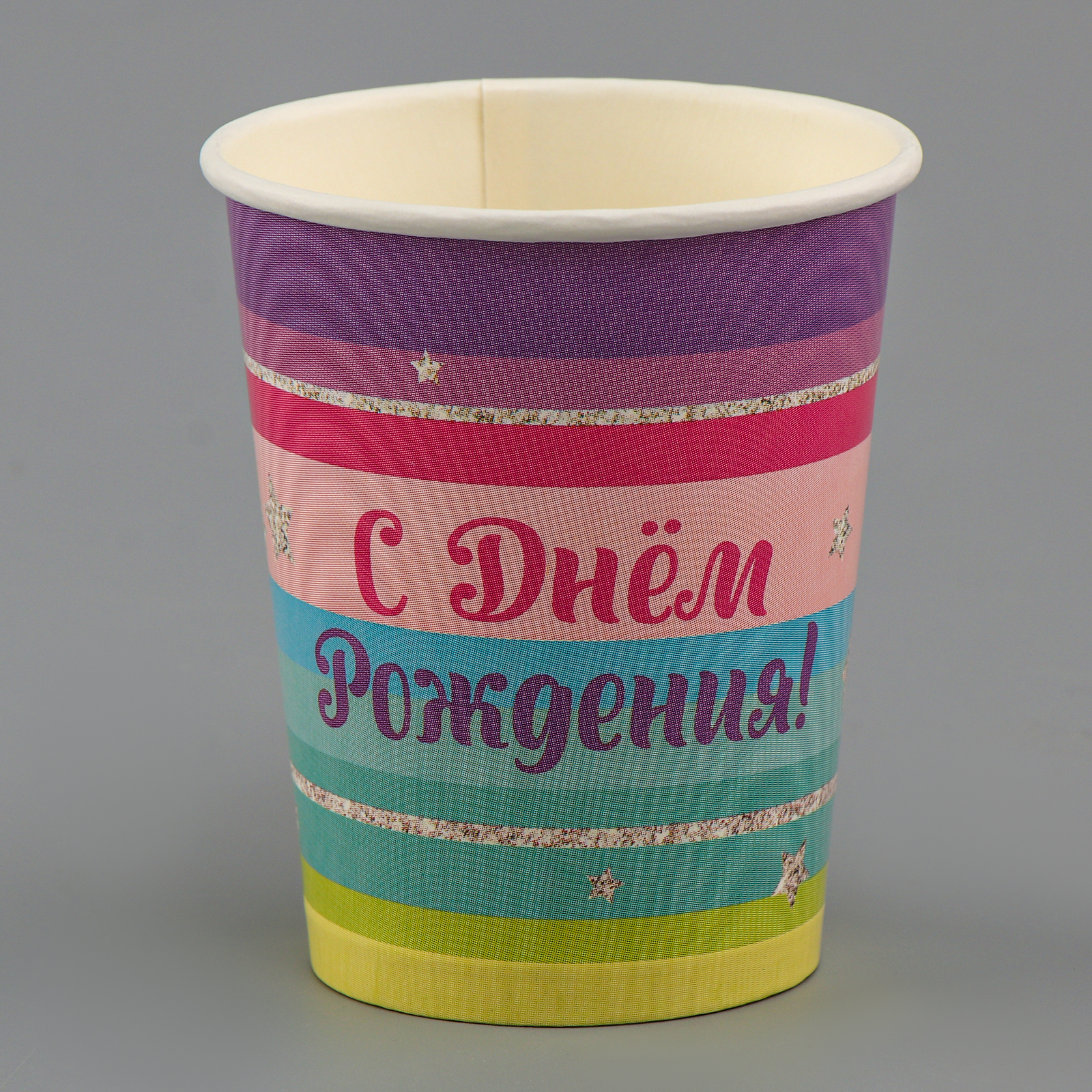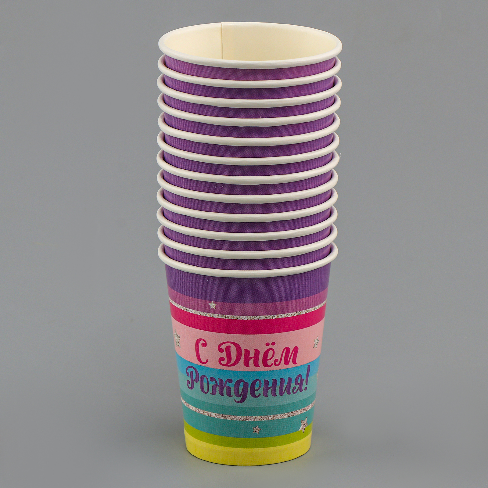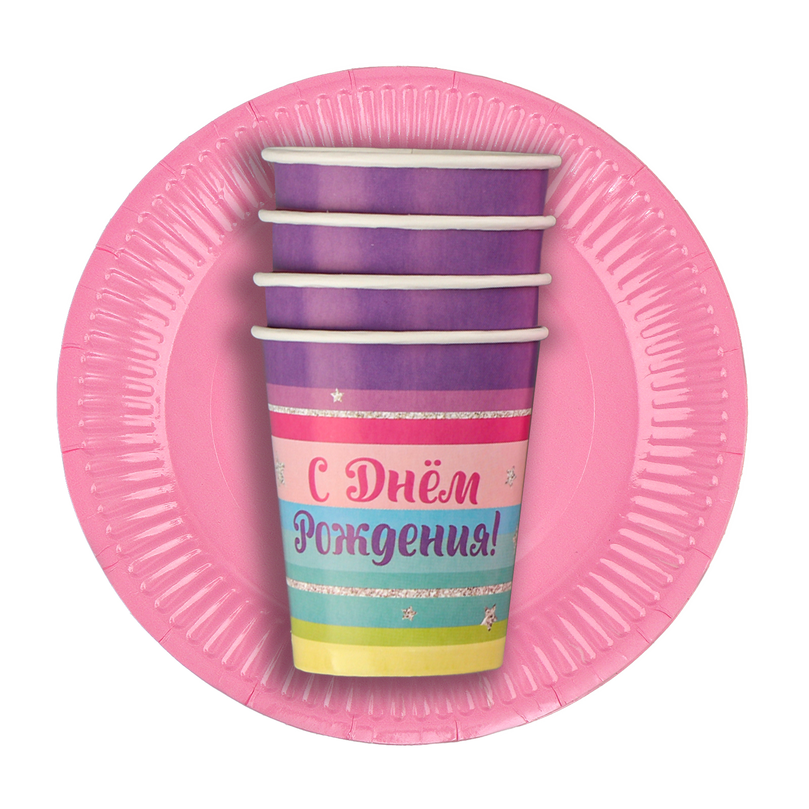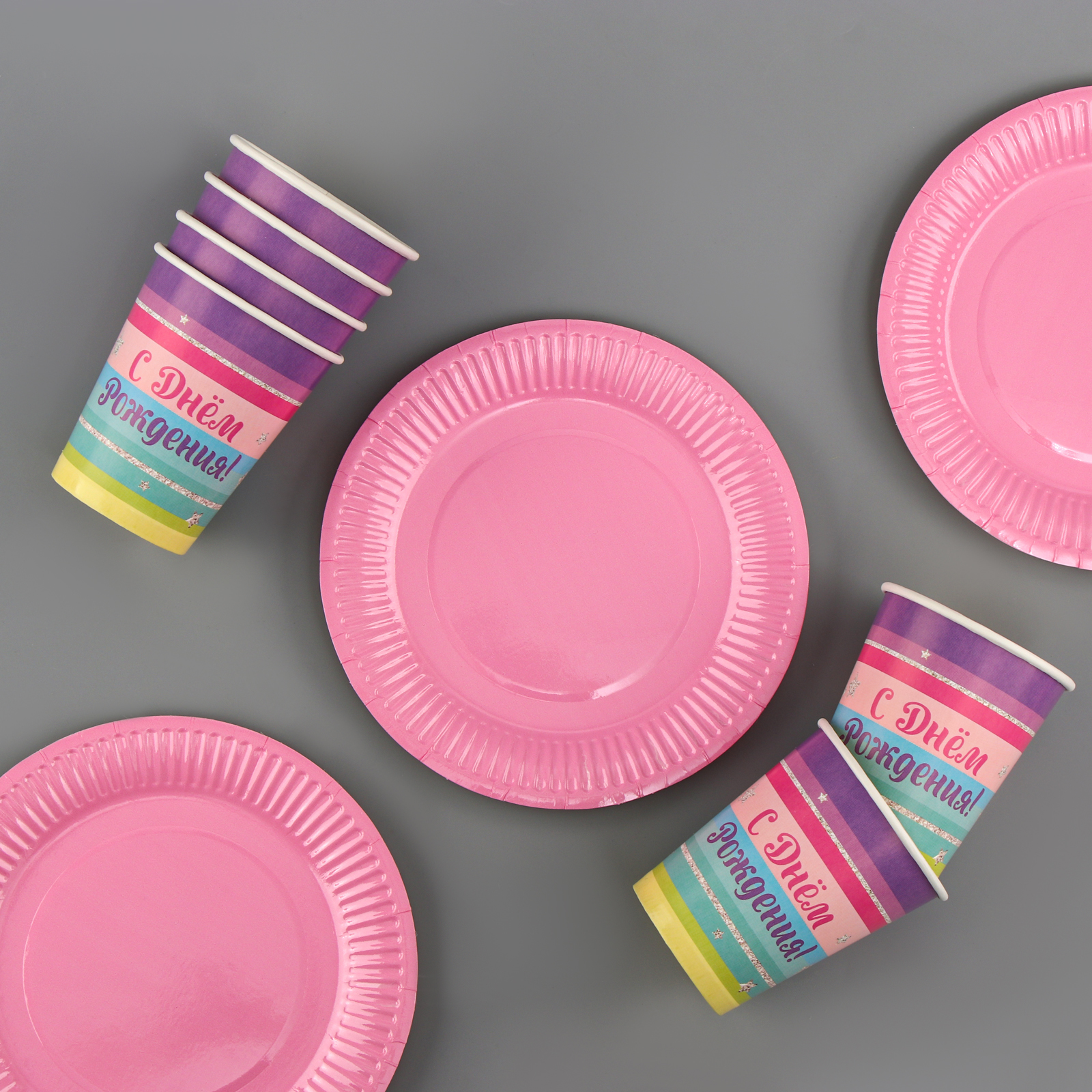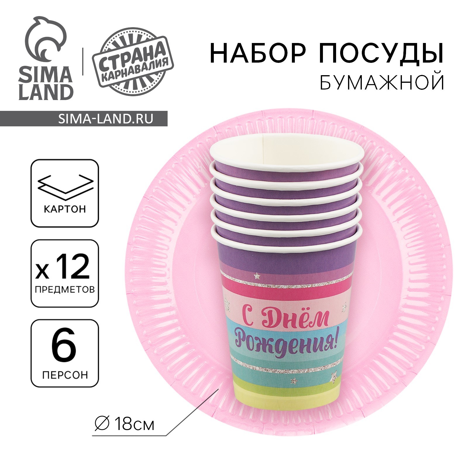 Набор бумажной посуды "с днём рождения" полосы 12 тарелок, 12 стаканов