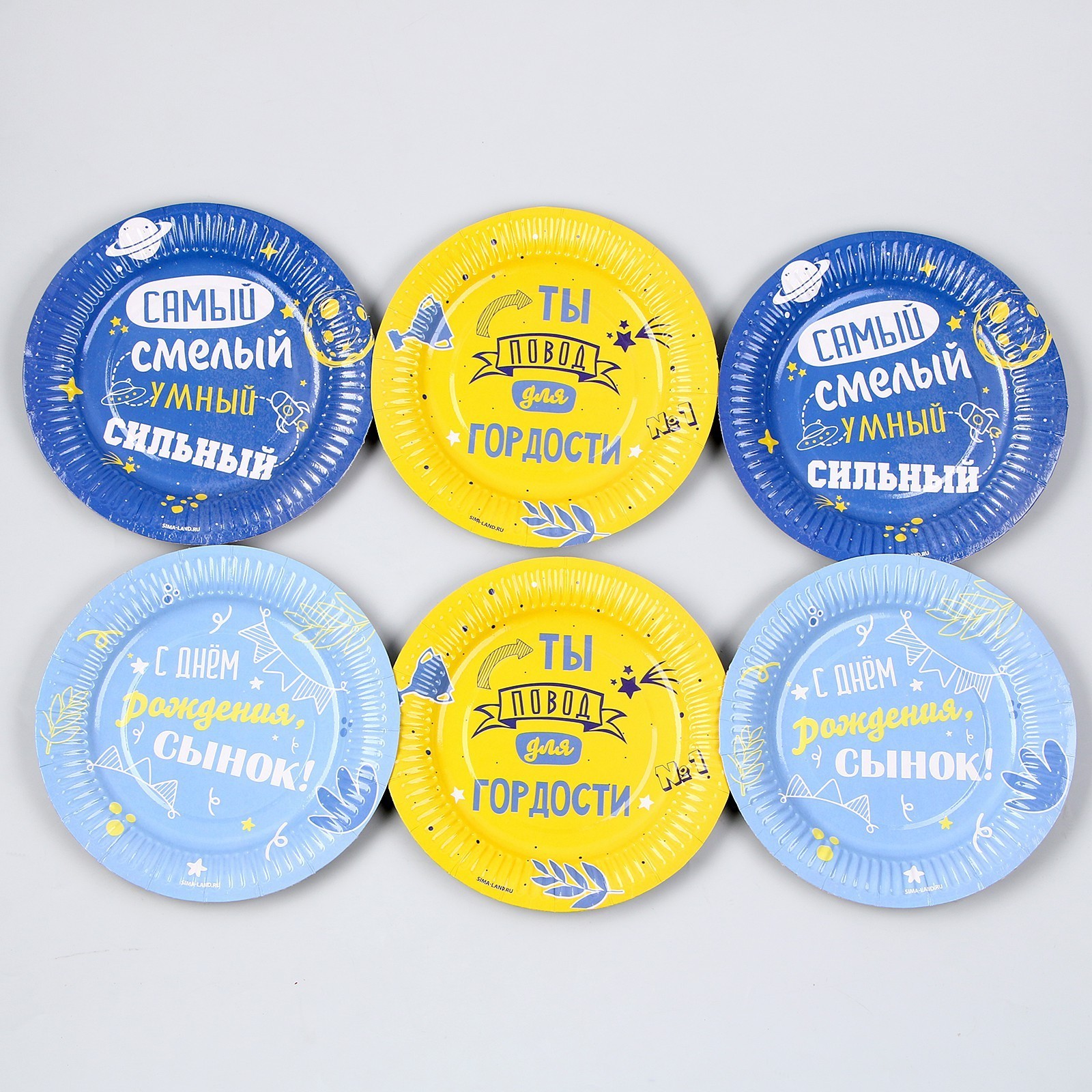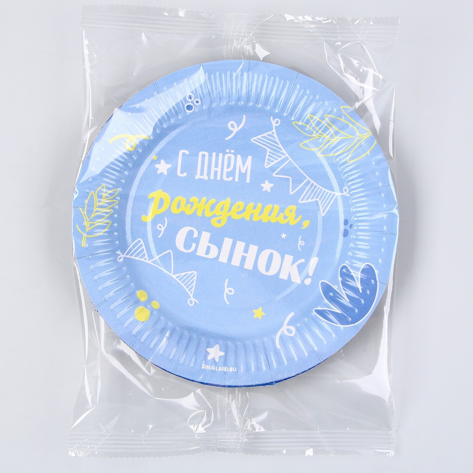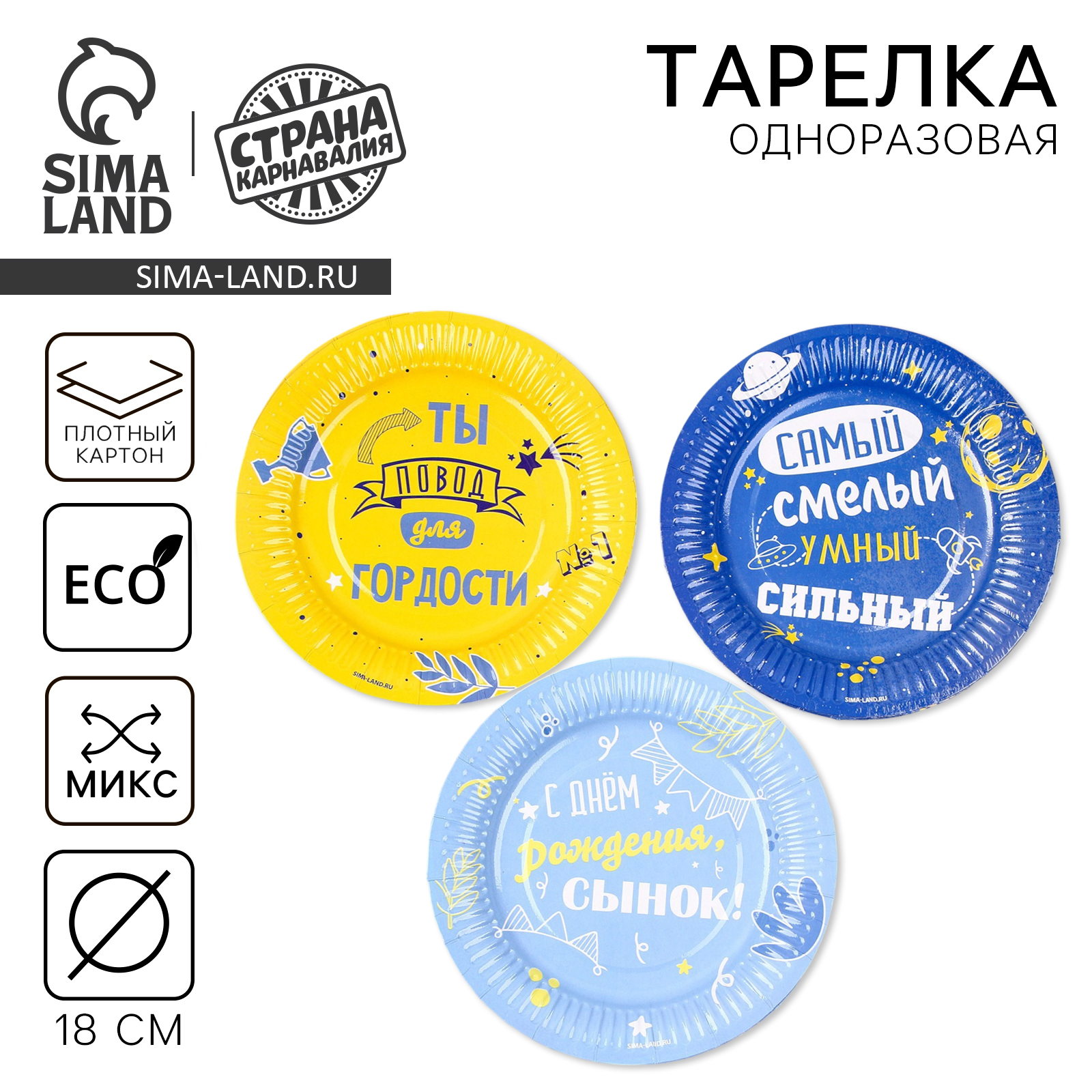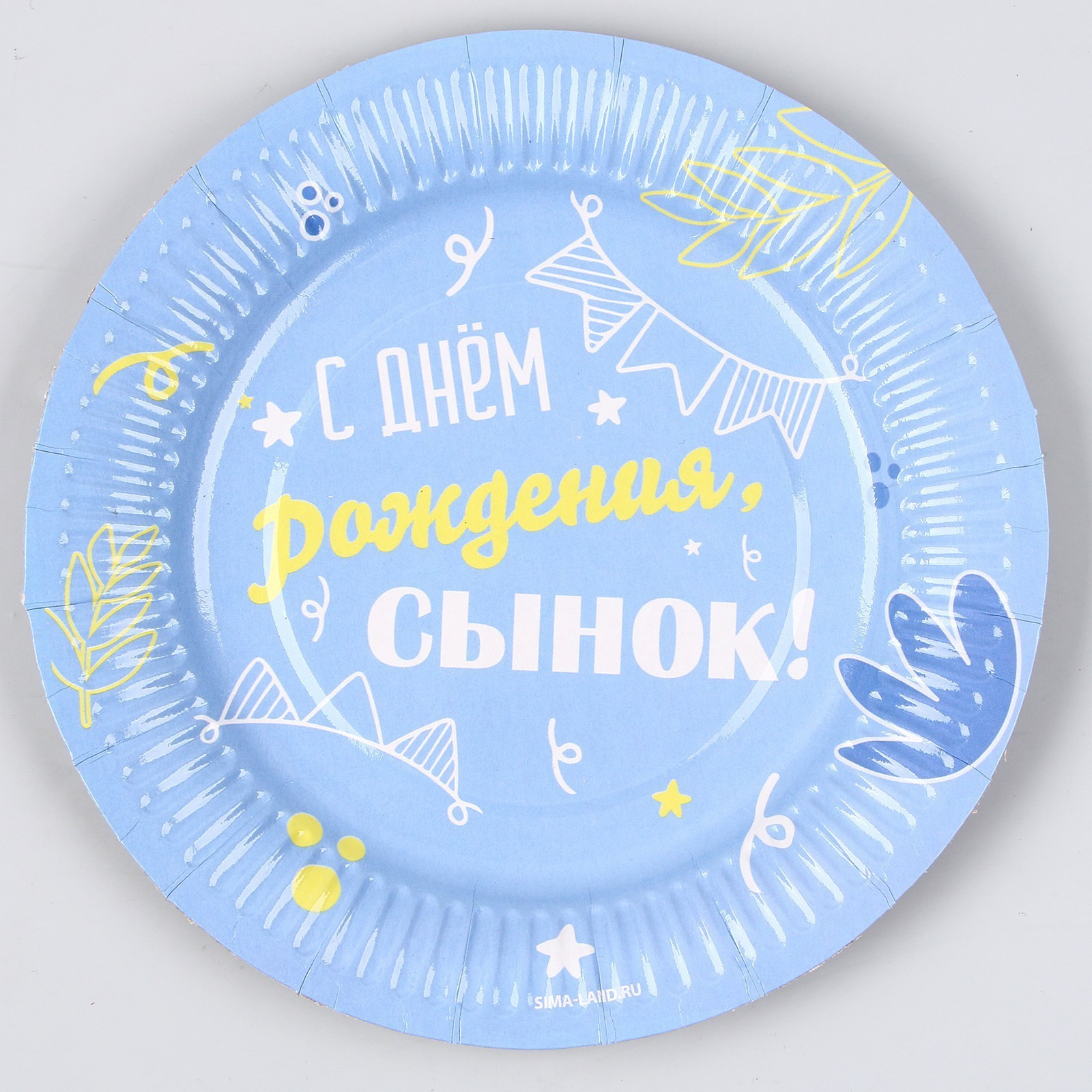 Тарелка одноразовая бумажная "с днём рождения, сынок", 18 см