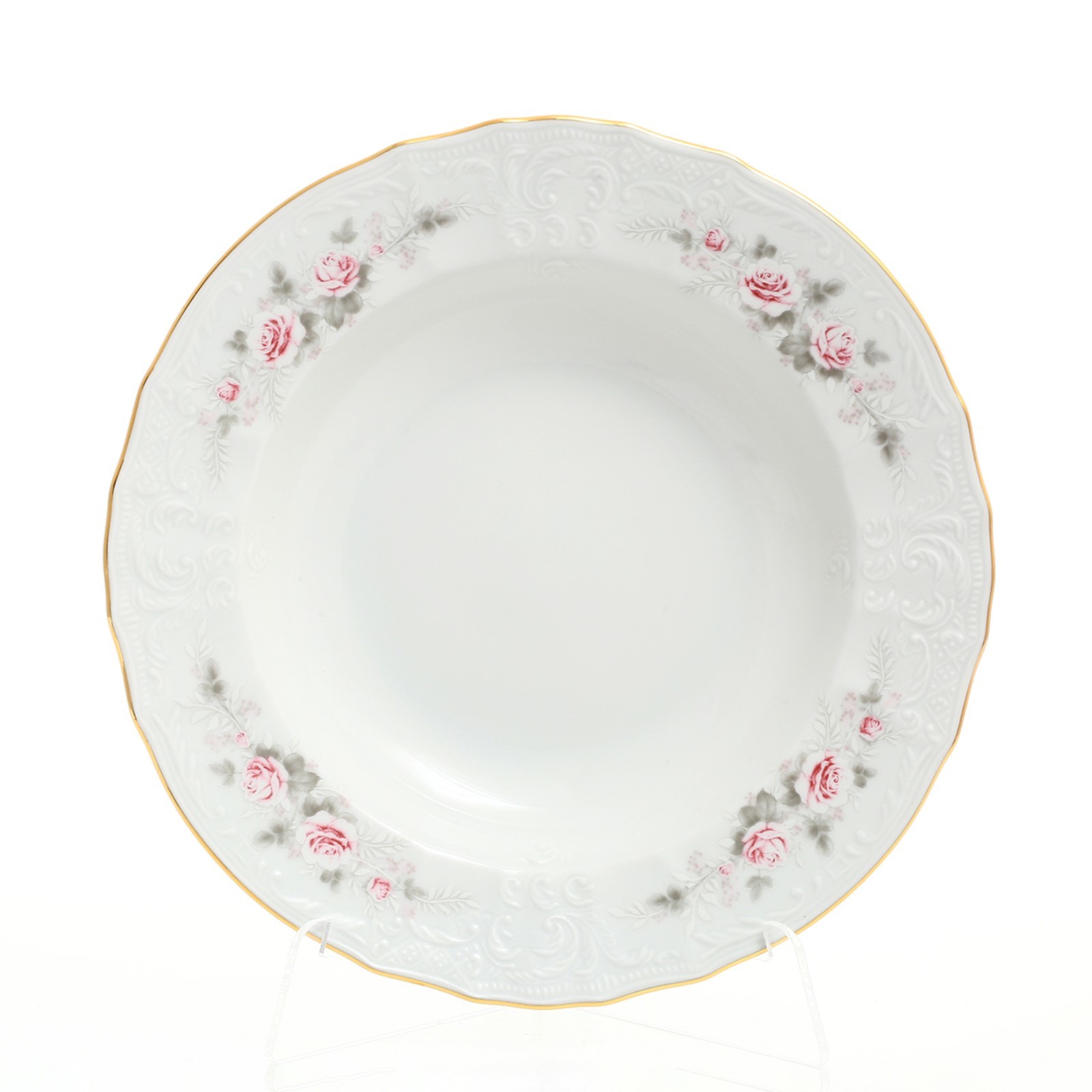 Набор тарелок глубоких Bernadotte «серая роза. отводка золото», фарфор, D=23 см, 6 шт