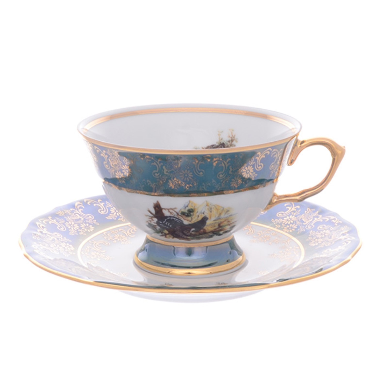 Набор чайный пар Repast Maria Teresa «охота зелёная», фарфор, 200 мл, 6 пар, цвет зелёный