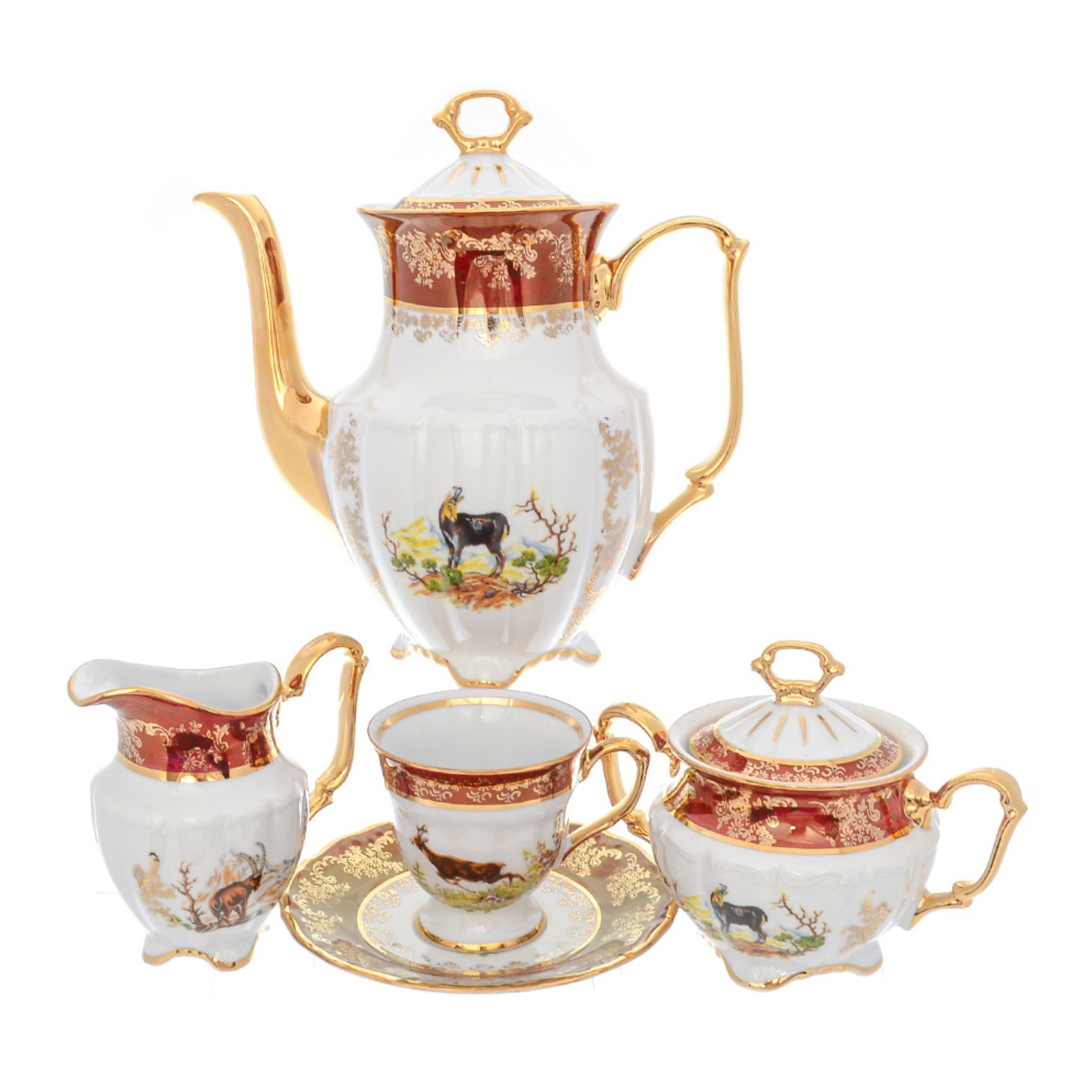 Кофейный сервиз Repast Maria Teresa «охота красная», фарфор, 15 предметов, цвет красный