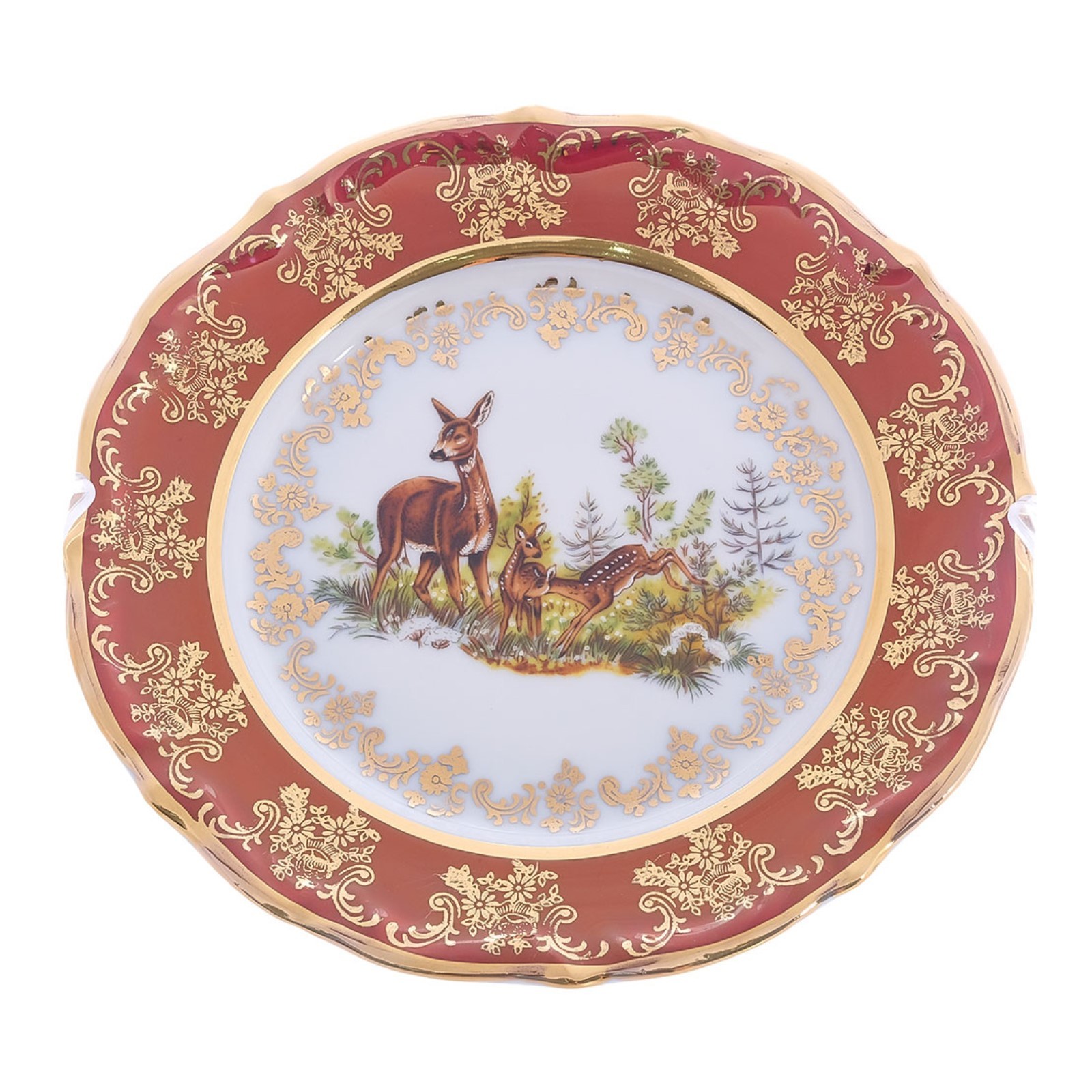 Набор тарелок Repast Maria Teresa «охота красная», фарфор, 17 см, 6 шт, цвет красный