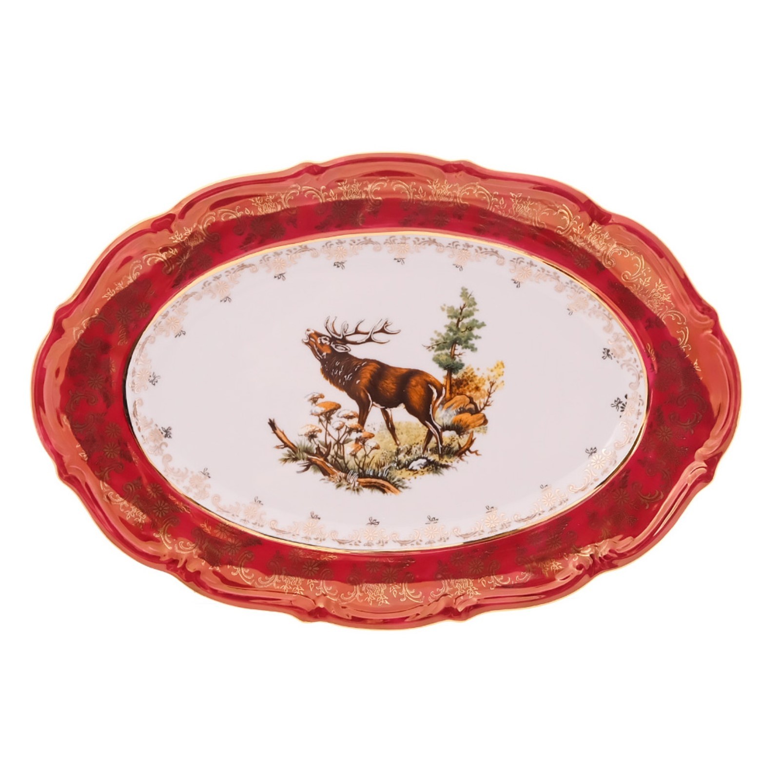 Блюдо овальное Repast Maria Teresa «охота красная», фарфор, длина 38 см, цвет красный