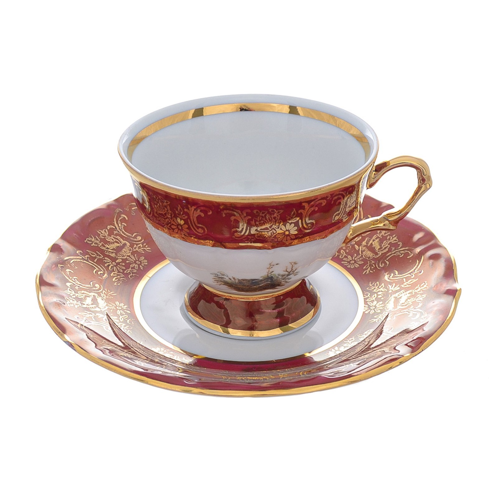 Набор кофейных пар Repast Maria Teresa «охота красная», фарфор, 100 мл, 6 пар, цвет красный