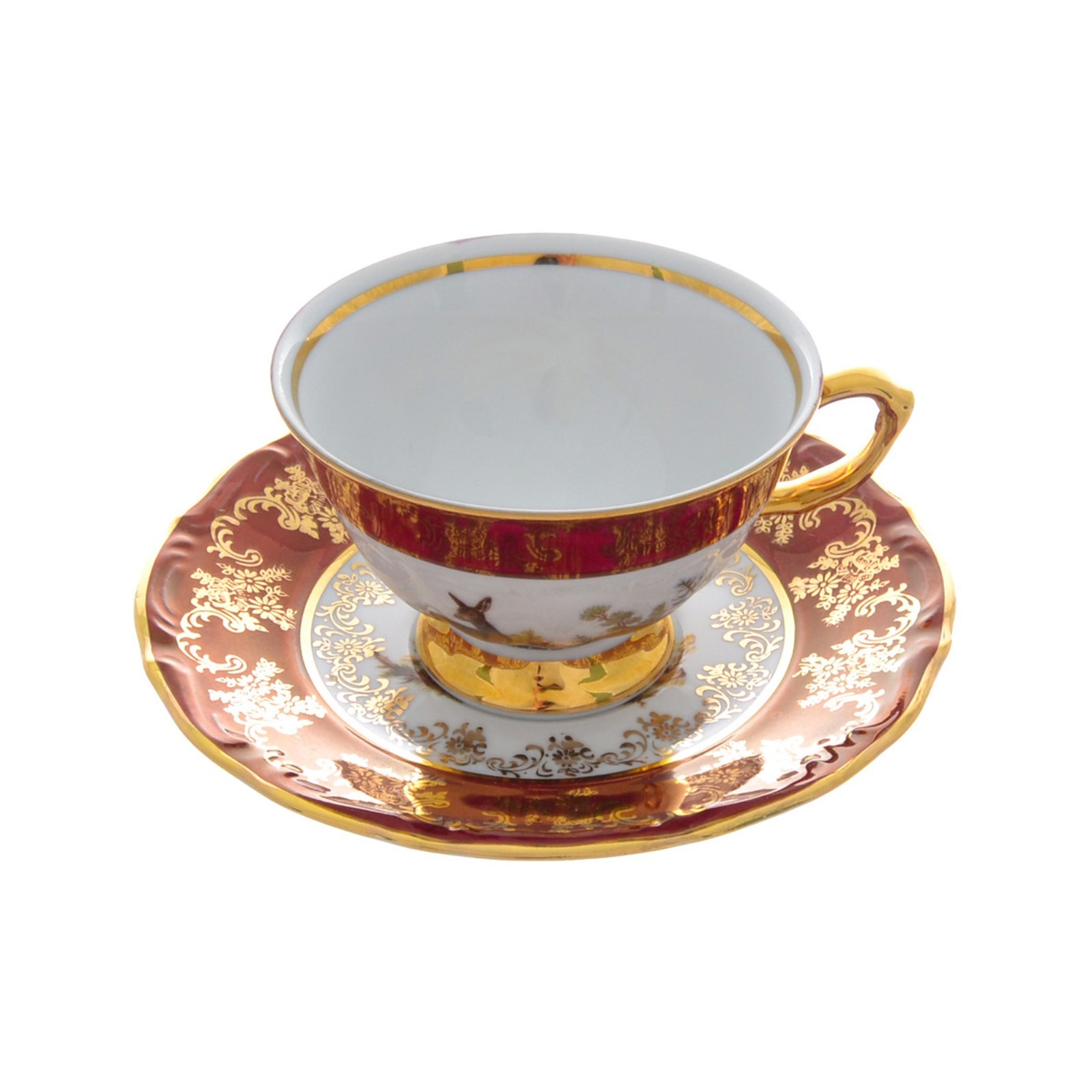 Набор чайный пар Repast Maria Teresa «охота красная», фарфор, 200 мл, 6 пар, цвет красный