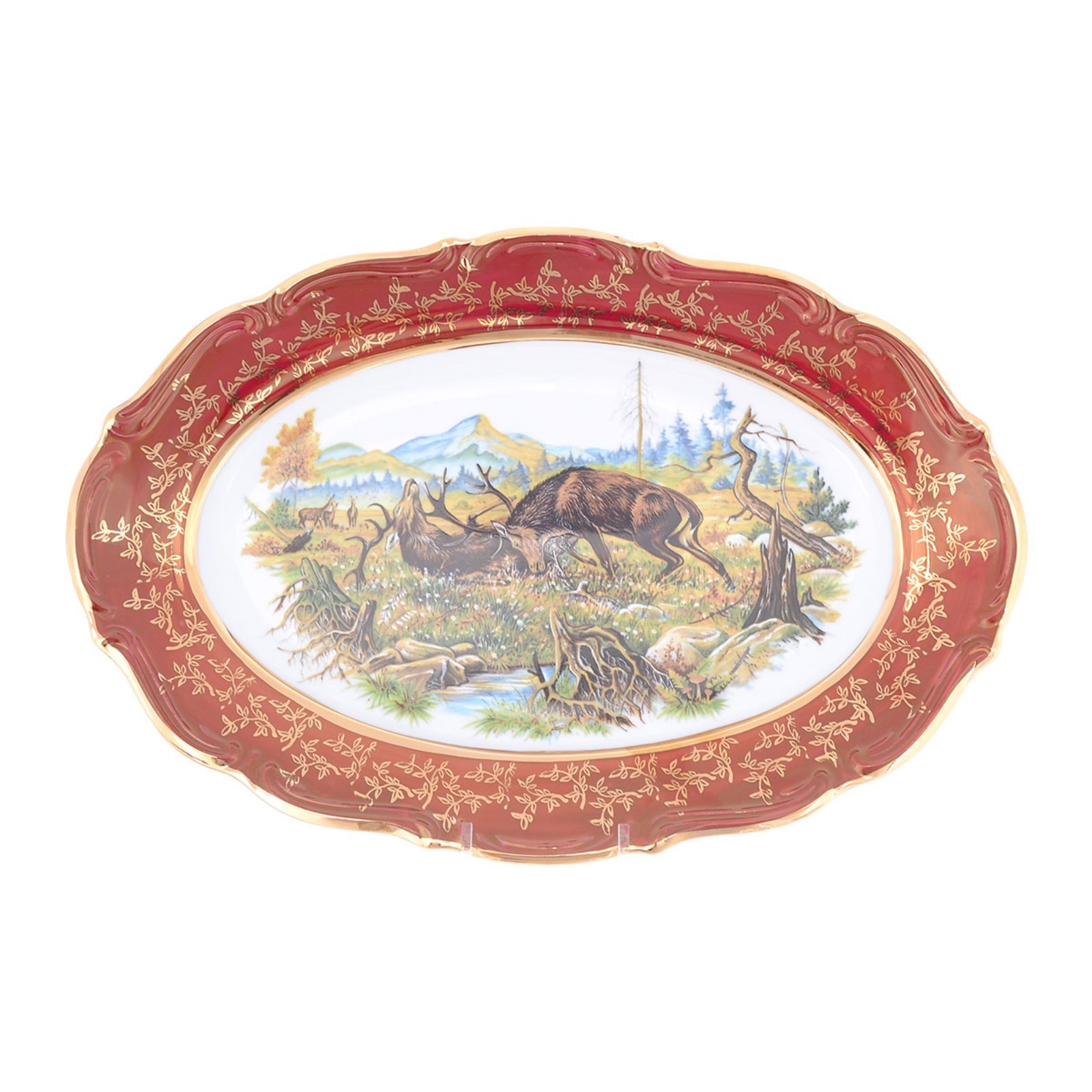 Блюдо овальное Repast Maria Teresa «охота красная», фарфор, длина 38 см, цвет красный