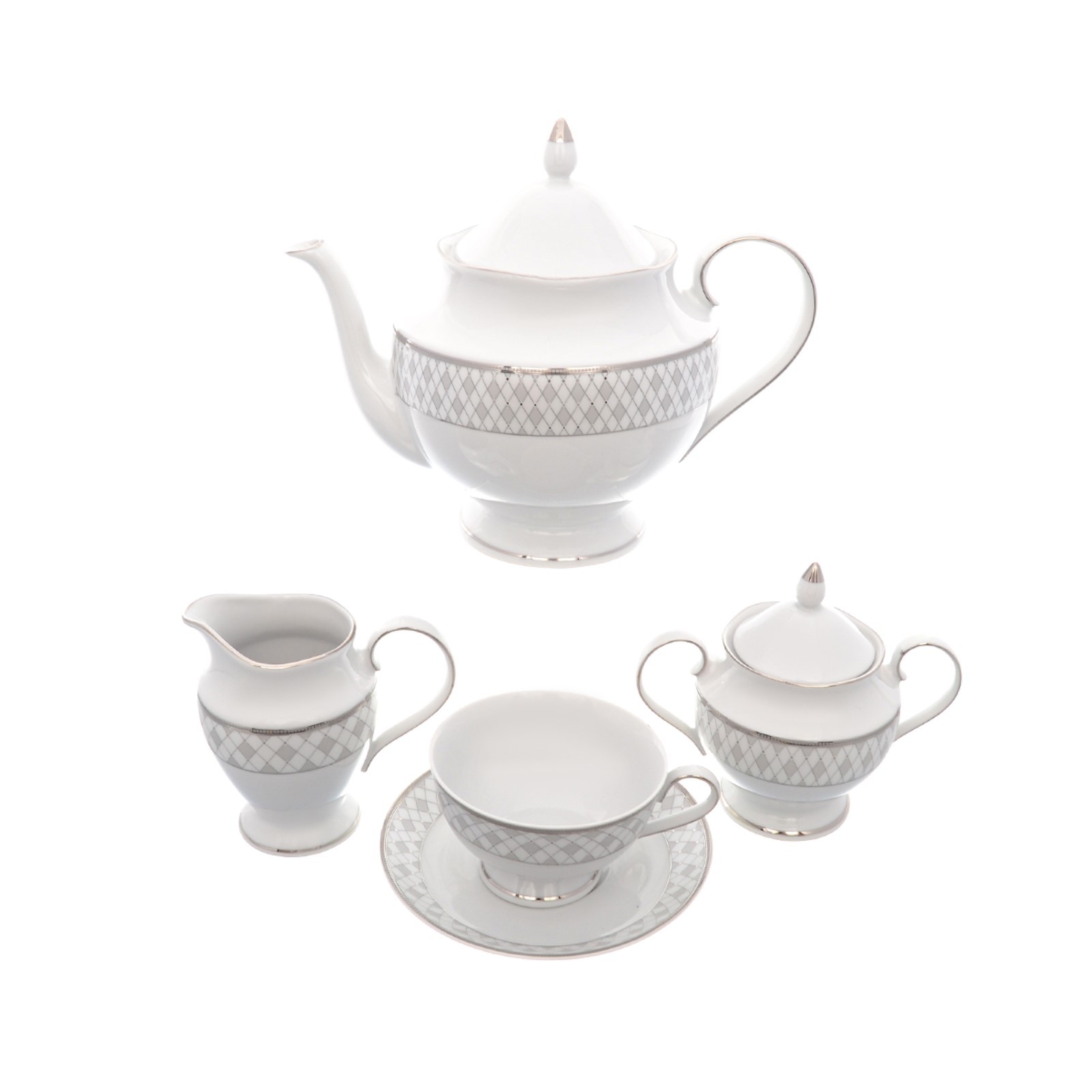 Чайный набор Repast «серебряная сетка», фарфор, 15 предметов