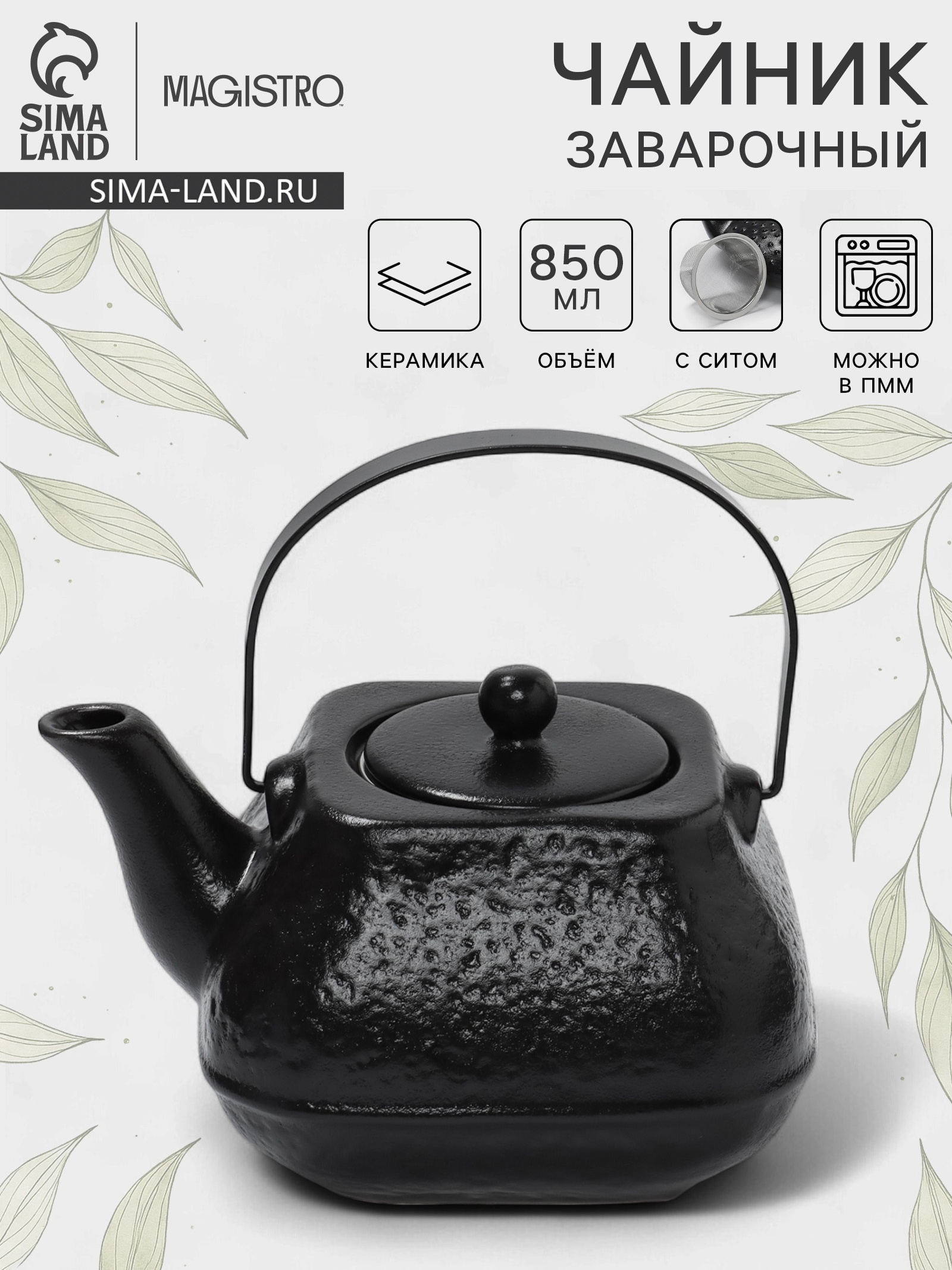 Чайник заварочный Magistro Black Swan, с ситом, 850 мл, керамика, чёрный