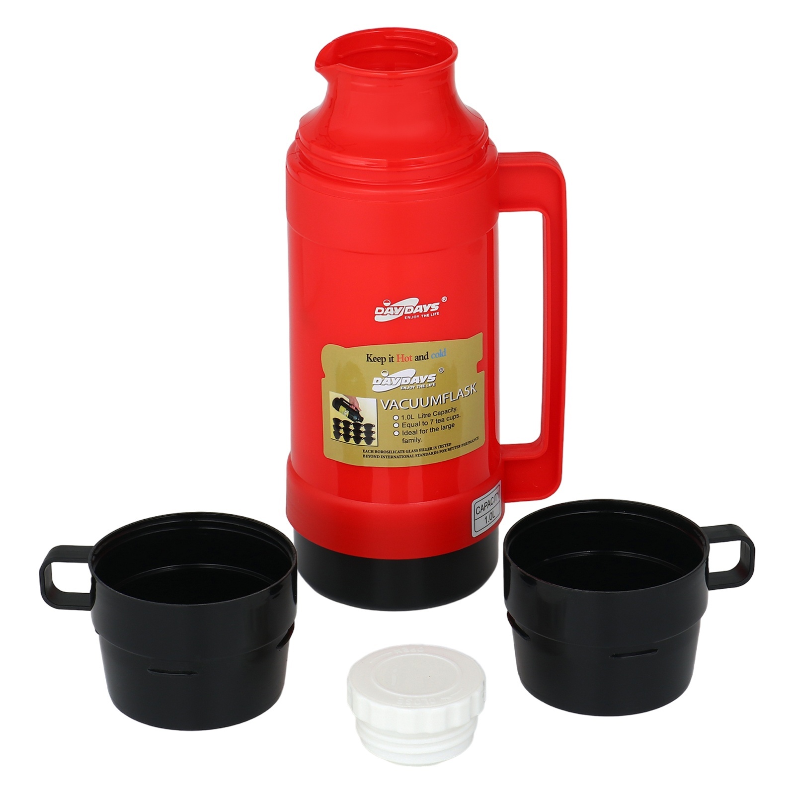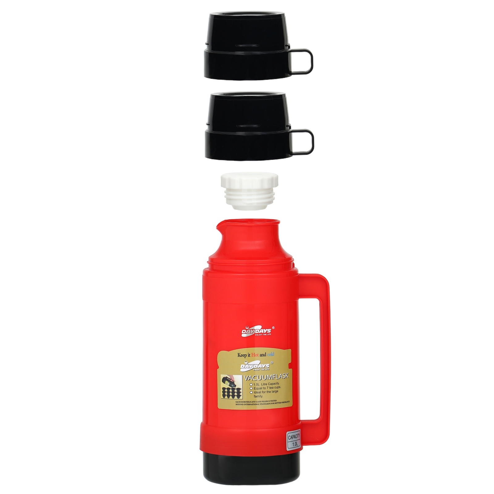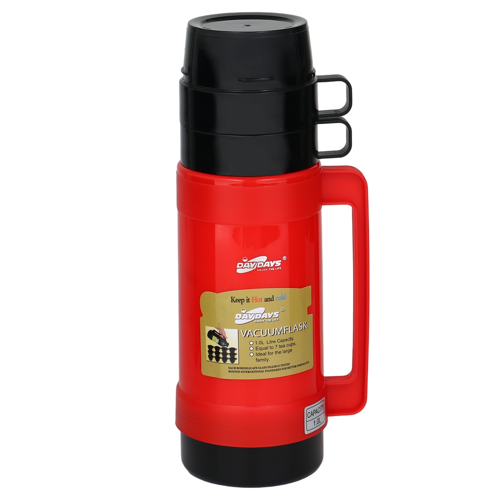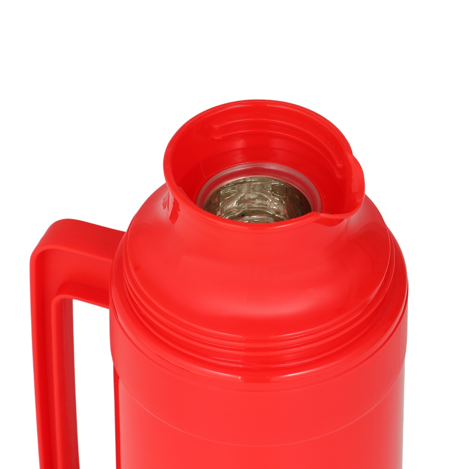 Термос 1 л, со стеклянной колбой, 2 кружки, 13.5 х 32 см, красный