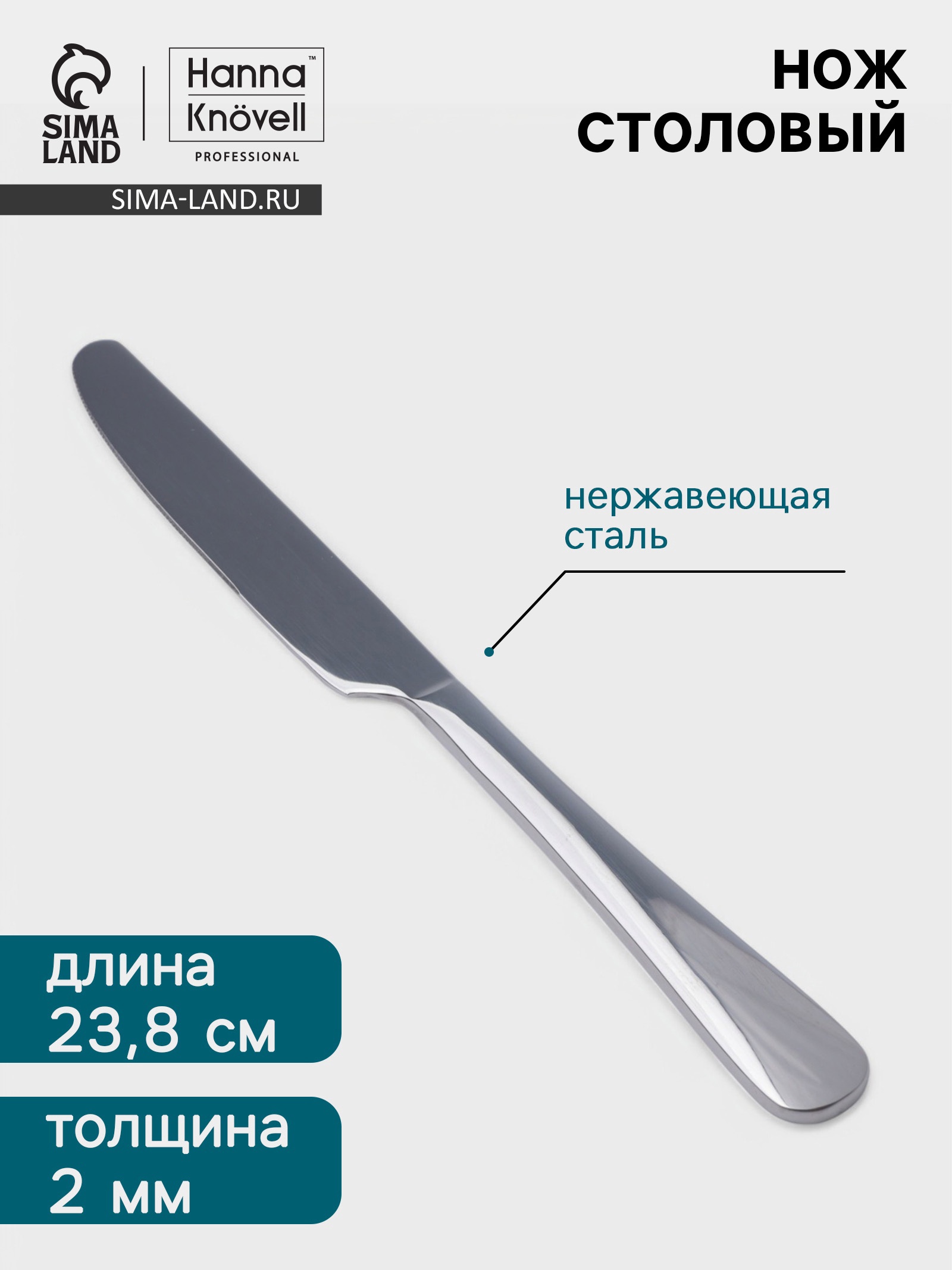 Нож столовый Hanna Kn Vell Rosen, 23.8 см, нержавеющая сталь, серебристый