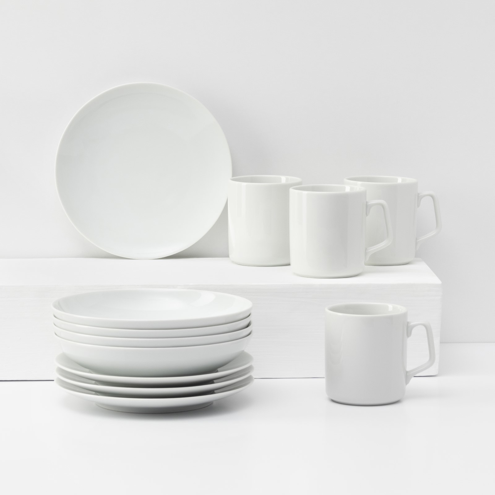 Набор фарфоровой посуды «универсальный», 12 предметов: тарелка D=20 см, глубокая 600 мл, D=20 см, кружка 350 мл