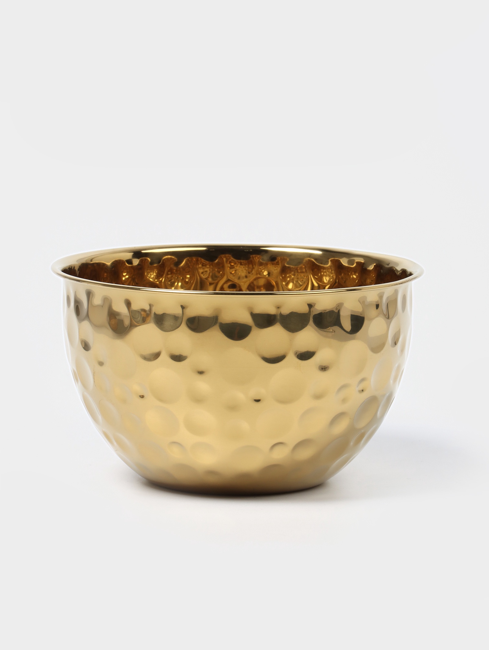Три диаметра: миски диаметром 17, 21, 5 и 25, 4 см подойдут для сервировки как закусок, так и основного блюда, создавая привлекательное оформление стола. Стильный дизайн: рельефная текстура и золотистый цвет делают эти миски не только практичными, но и визуально привлекательными, подходя для различных событий. Прочные материалы: нержавеющая сталь обеспечивает долговечность и устойчивость к повреждениям, что делает их идеальными для повседневного использования. Удобство в использовании: миски легко чистятся вручную, что делает их практичным выбором на каждый день и для праздничных ужинов. Этот набор мисок станет отличным дополнением вашей кухни, позволяя сервировать блюда с изяществом и комфортом. Позвольте себе насладиться вкусом пищи, поданной в стильной упаковке!