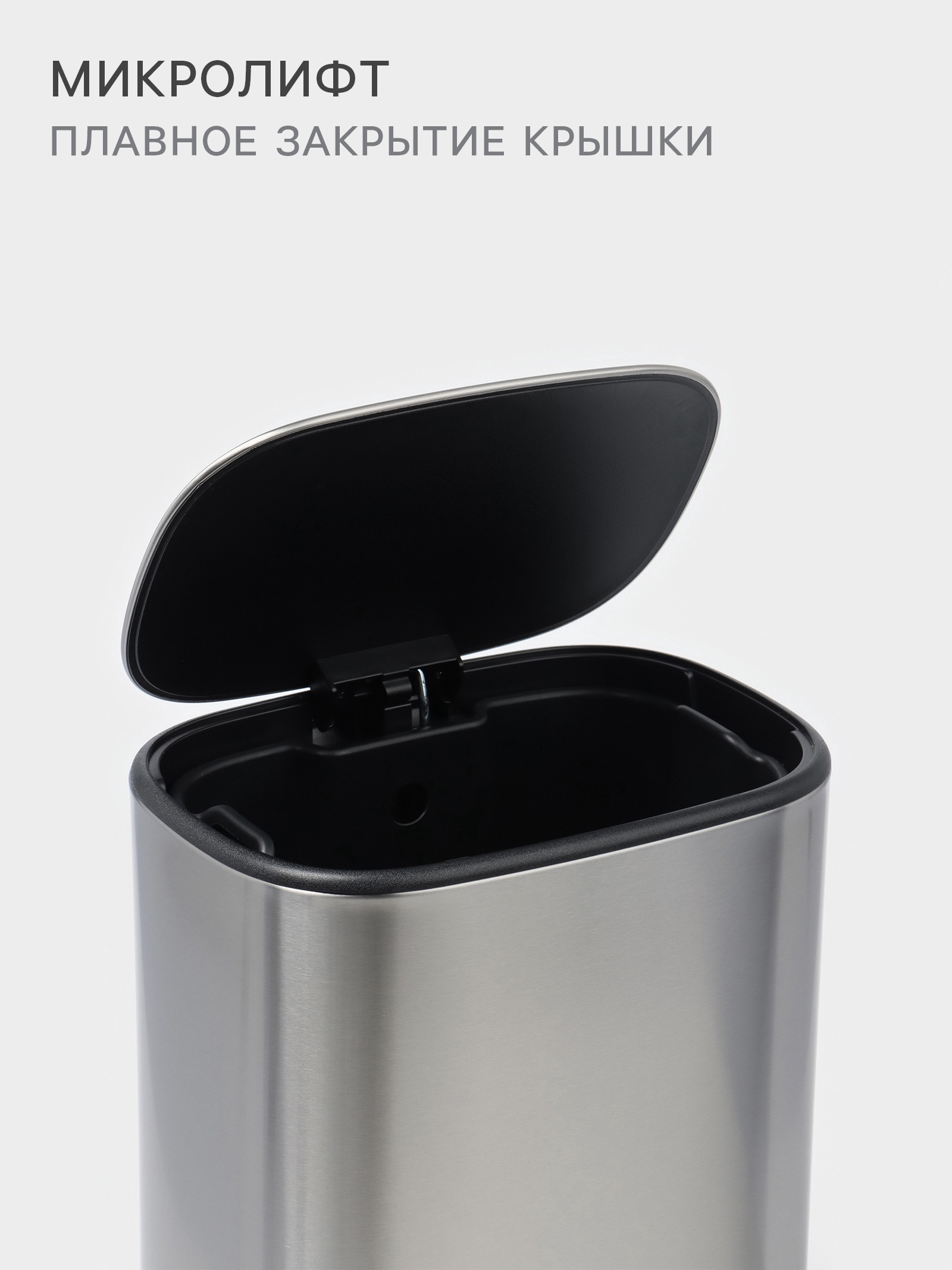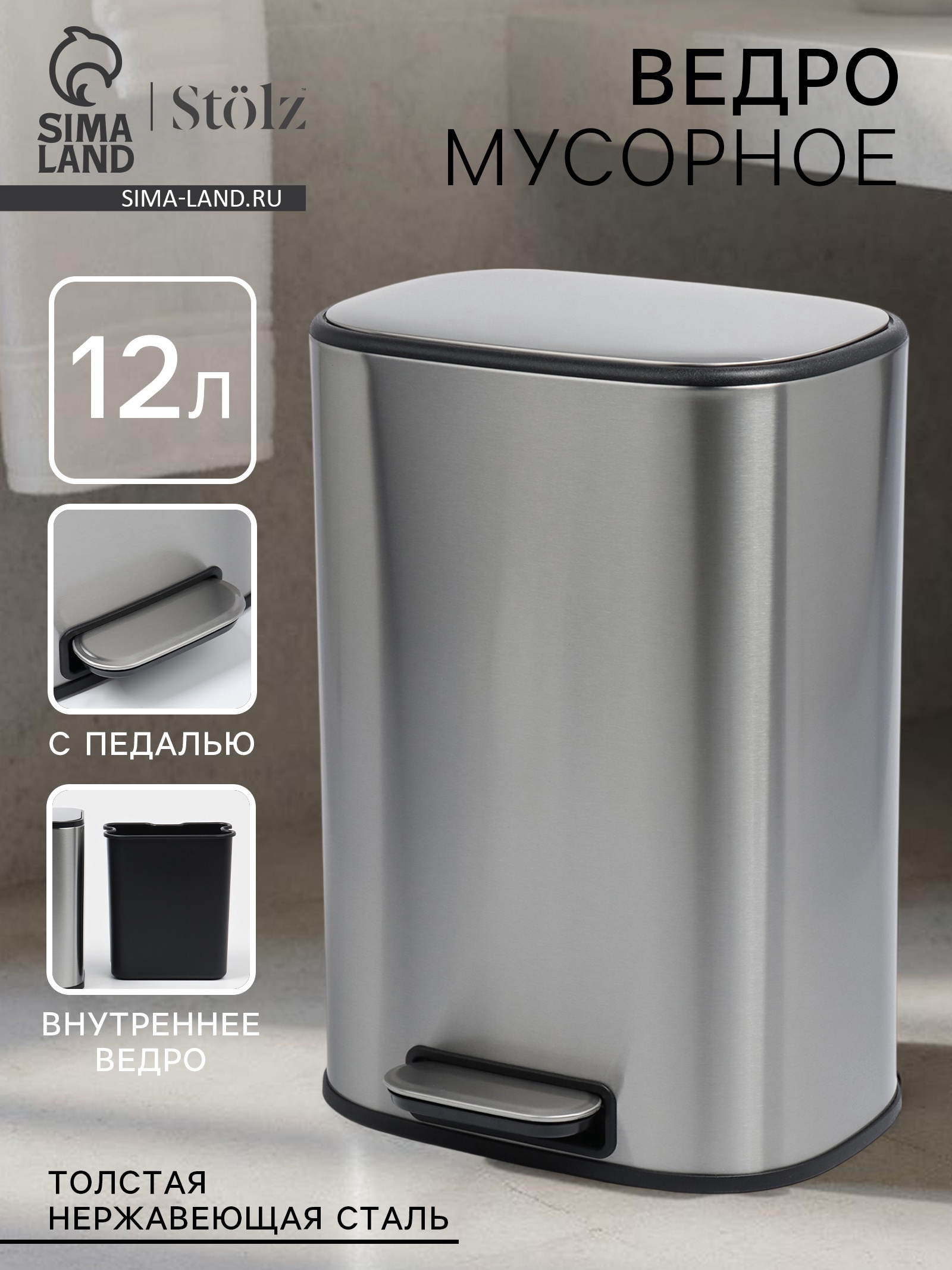 Ведро мусорное с педалью st lz, 12 л, нержавеющая сталь, хром матовый. Цвет:Хромированный|Объём, л:12|Рисунок:Нет|Материал:Нержавеющая сталь|Особенность:С педалью|Тип:Ведро|Страна:Китай