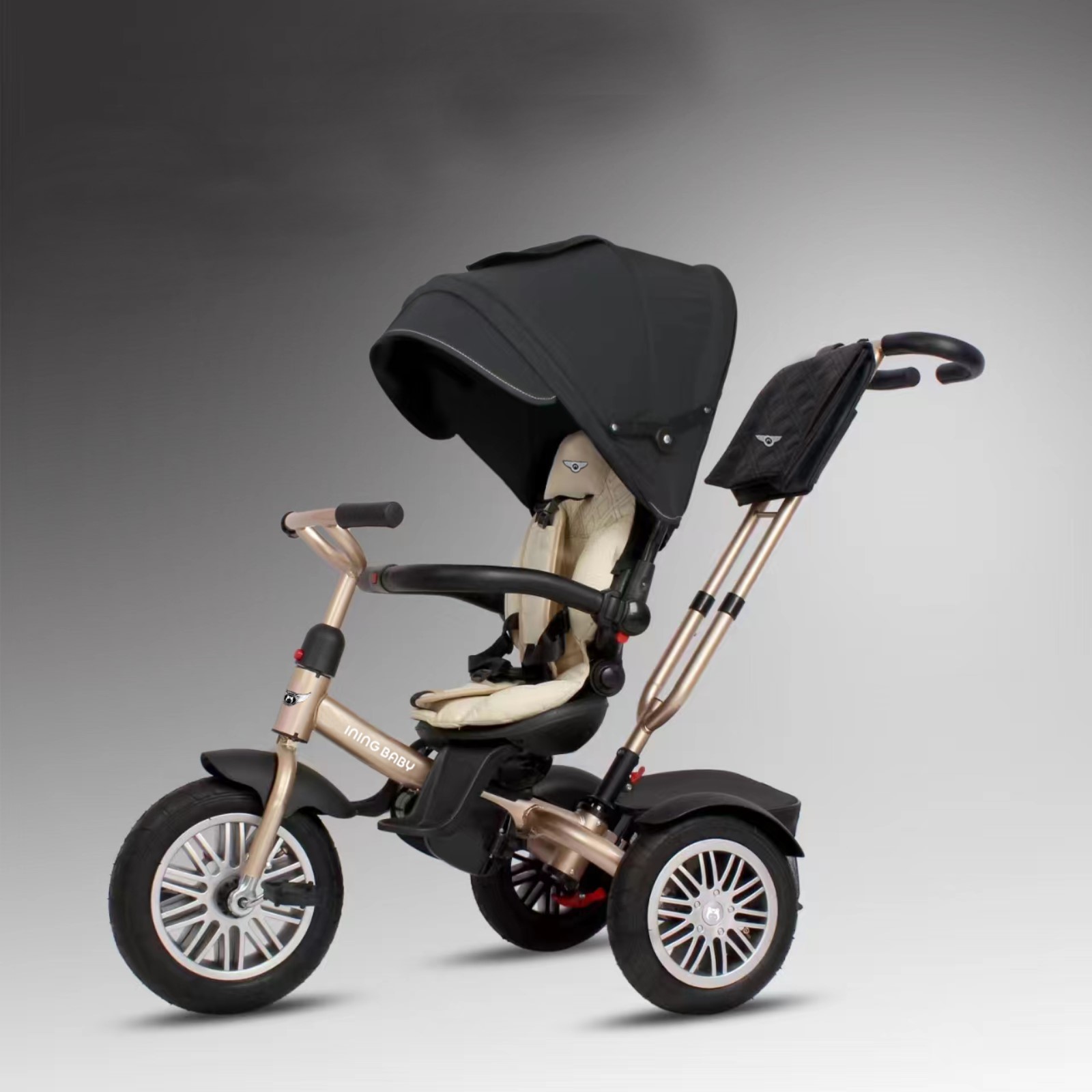 Велосипед детский трехколёсный ining baby s6019, цвет хаки.   Велосипед трёхколёсный Iningbaby S6019 - премиальный трёхколёсный велосипед с бампером и ручкой для родителей, изготовленными из экокожи. Стильный дизайн, высококачественные материалы и удобство использования делают этот велосипед идеальным выбором для вашего ребёнка.  Особенности Поворот сидения на 360°Откидная спинкаФункция свободного колесаСъёмная рулевая стойкаНадёжная рамаКолёса резиновые с камерамиПодставки под ножкиНесколько положений спинкиМягкий вкладыш на сидении, с подголовникомРаздвижная дуга безопасности с мягкими подлокотниками3х-точечные ремни безопасностиБагажная корзинаРодительская ручка регулируется по высоте Цвет: Чёрный Для кого: Для мальчика Для кого: Для девочки Максимально допустимый вес, кг: 25 Материал рамы: Металл Складная рама: Нет Материал колёс: Резиновые надувные Надувные колеса: Да Ручка для родителей: Да Регулируемая спинка: Да Тент: Да Страховочный обод: Да Доп. подставка для ног: Да Свободный ход педалей: Да Рекомендуемый возраст, лет: 1 - 4 Рекомендуемый рост, см: 70 - 110 Фара: Нет Разворот сиденья: Да Складная подножка: Да Светозвуковая панель: Нет  развернуть описание ▼